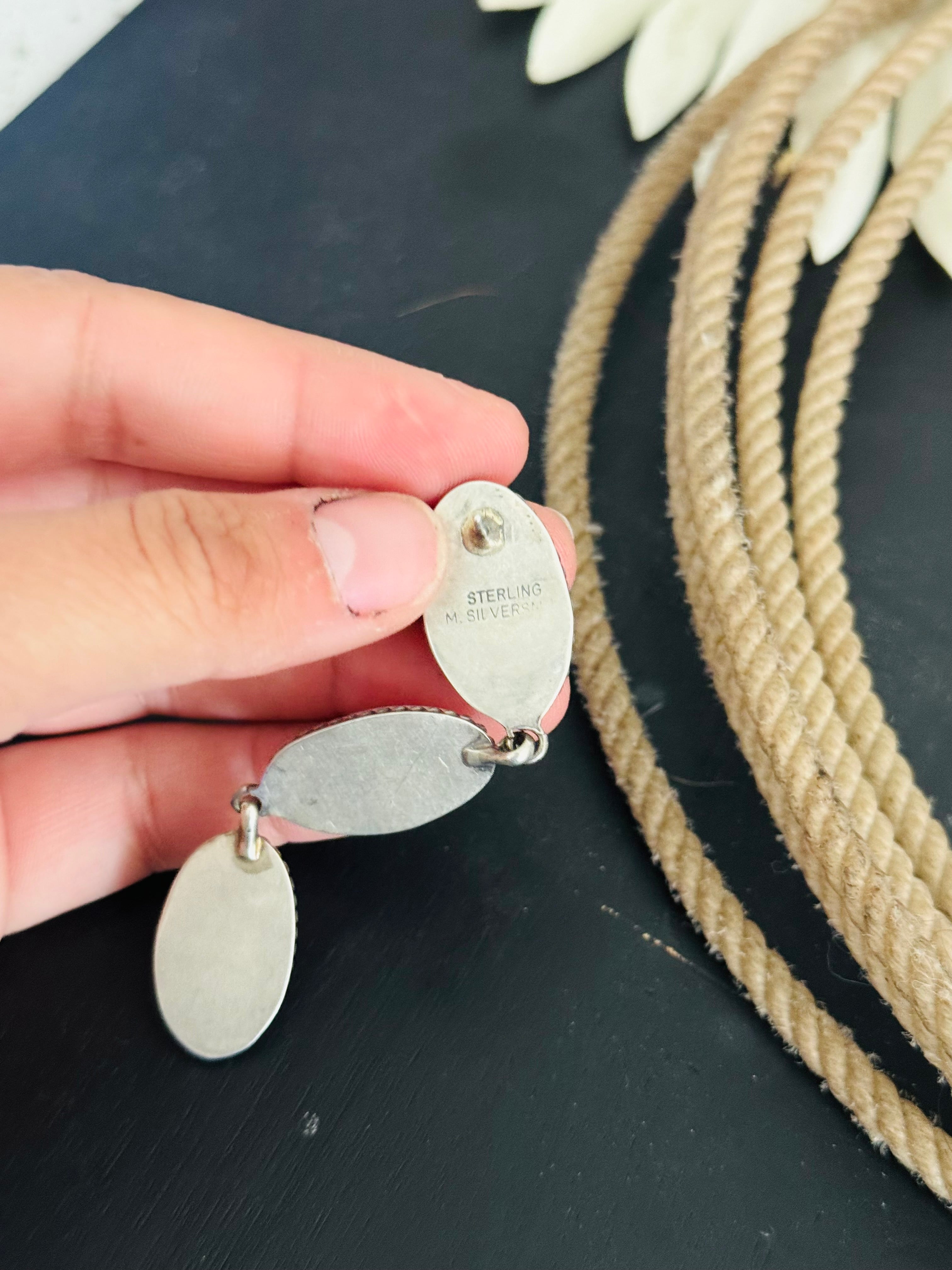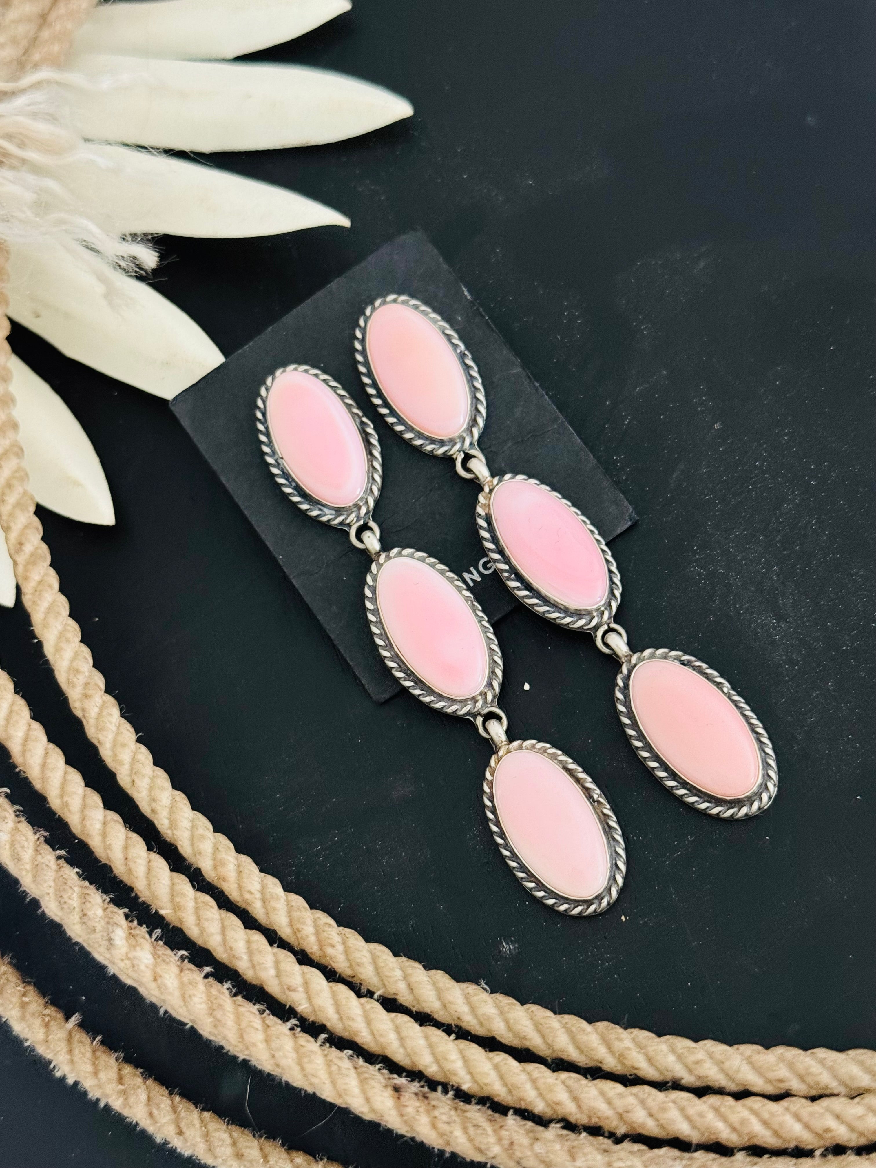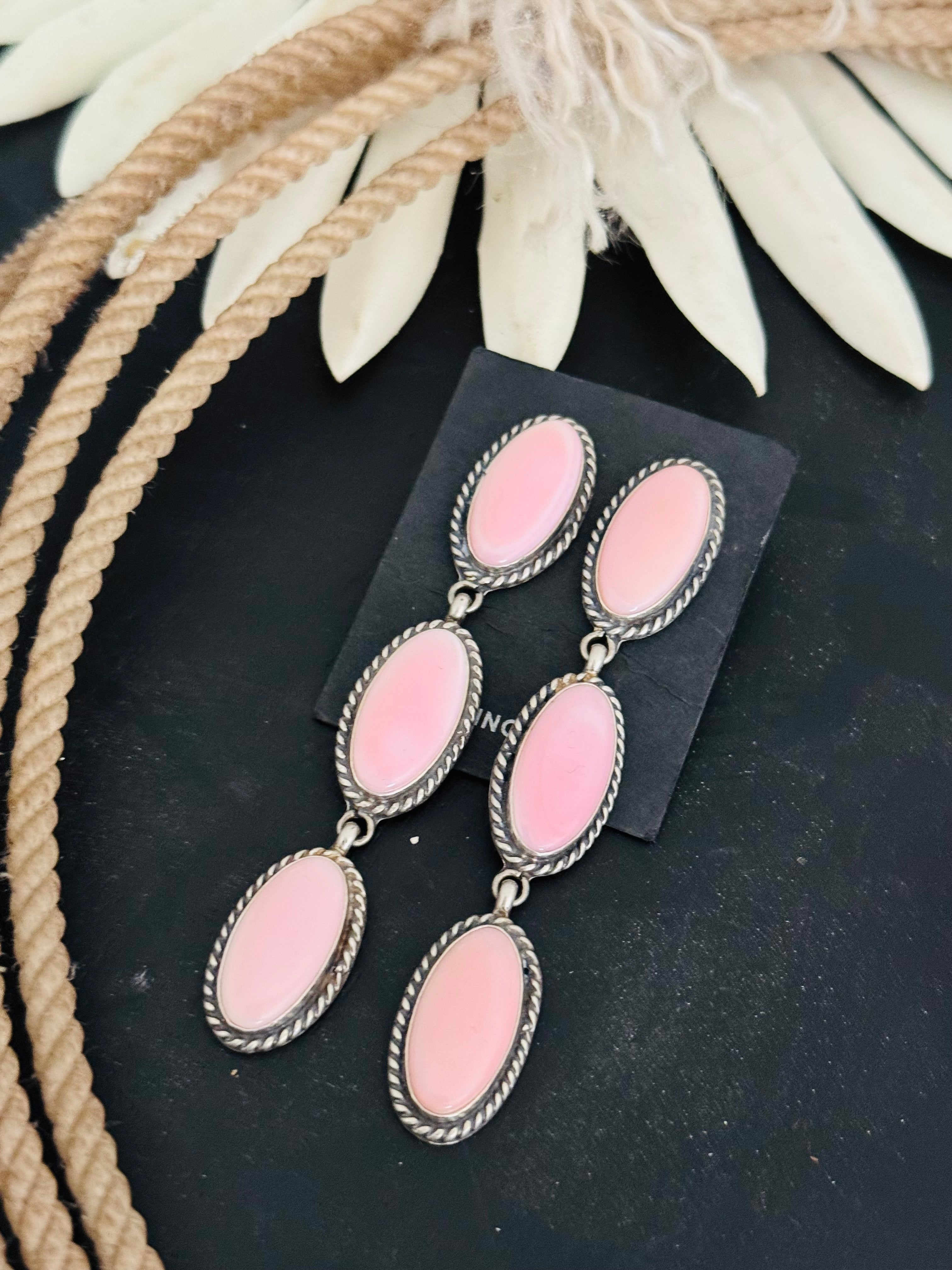 Navajo Made Pink Conch & Sterling Silver Post Dangle Earrings