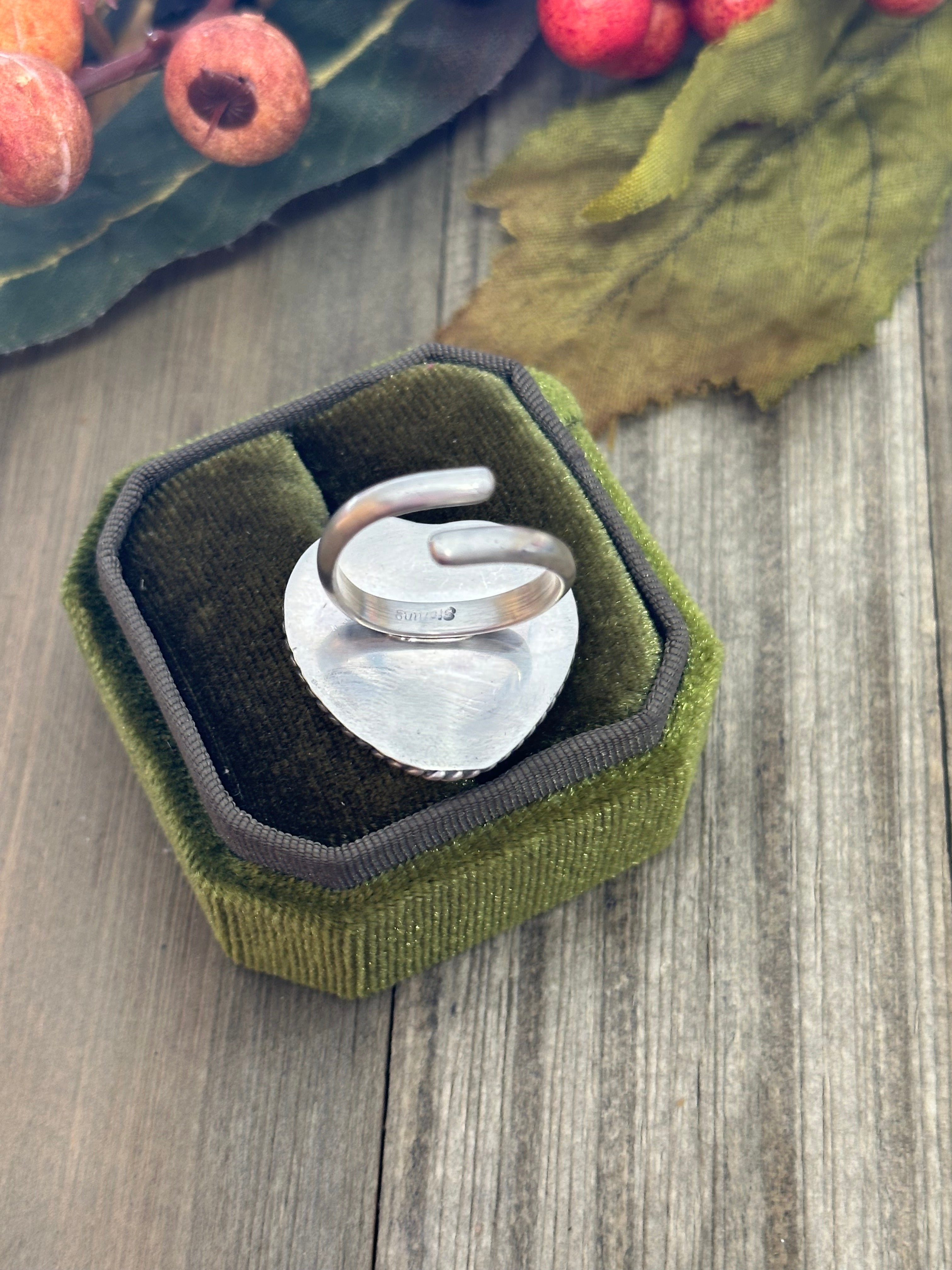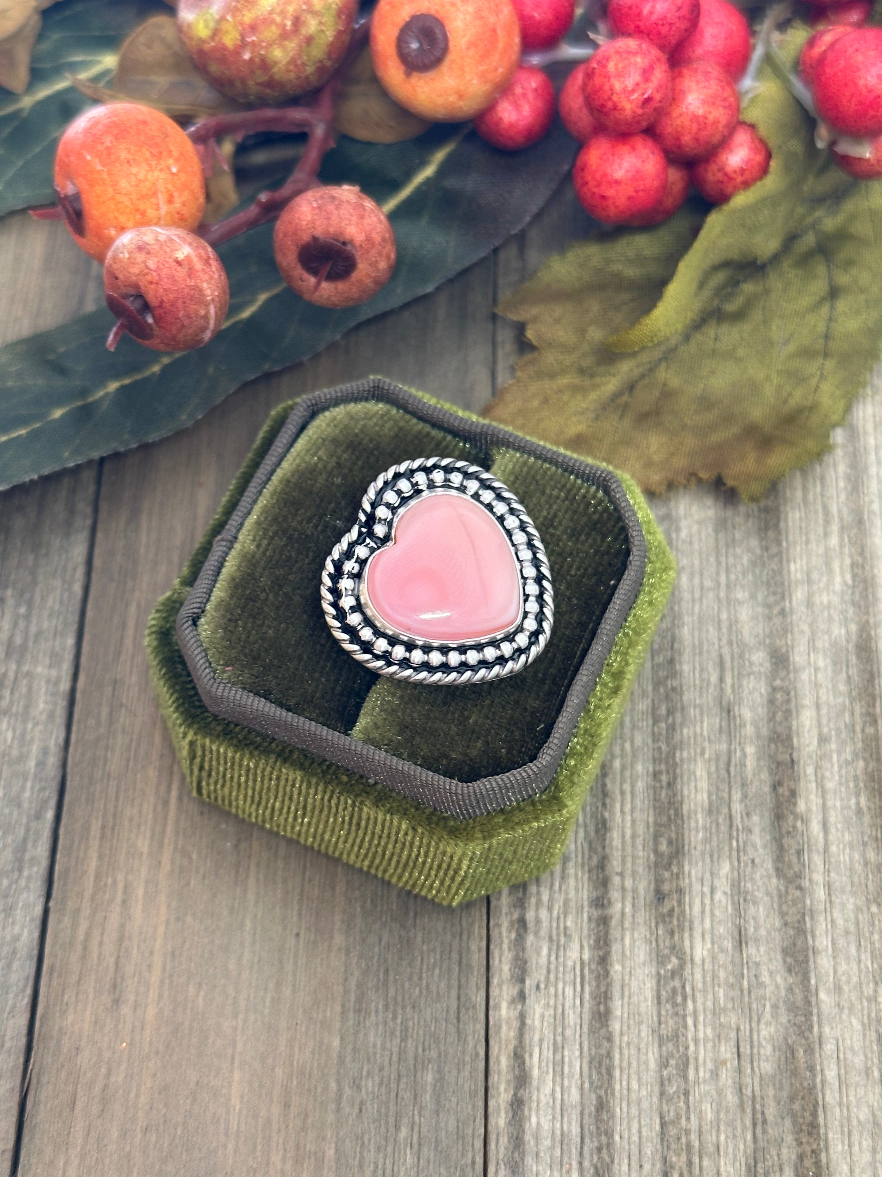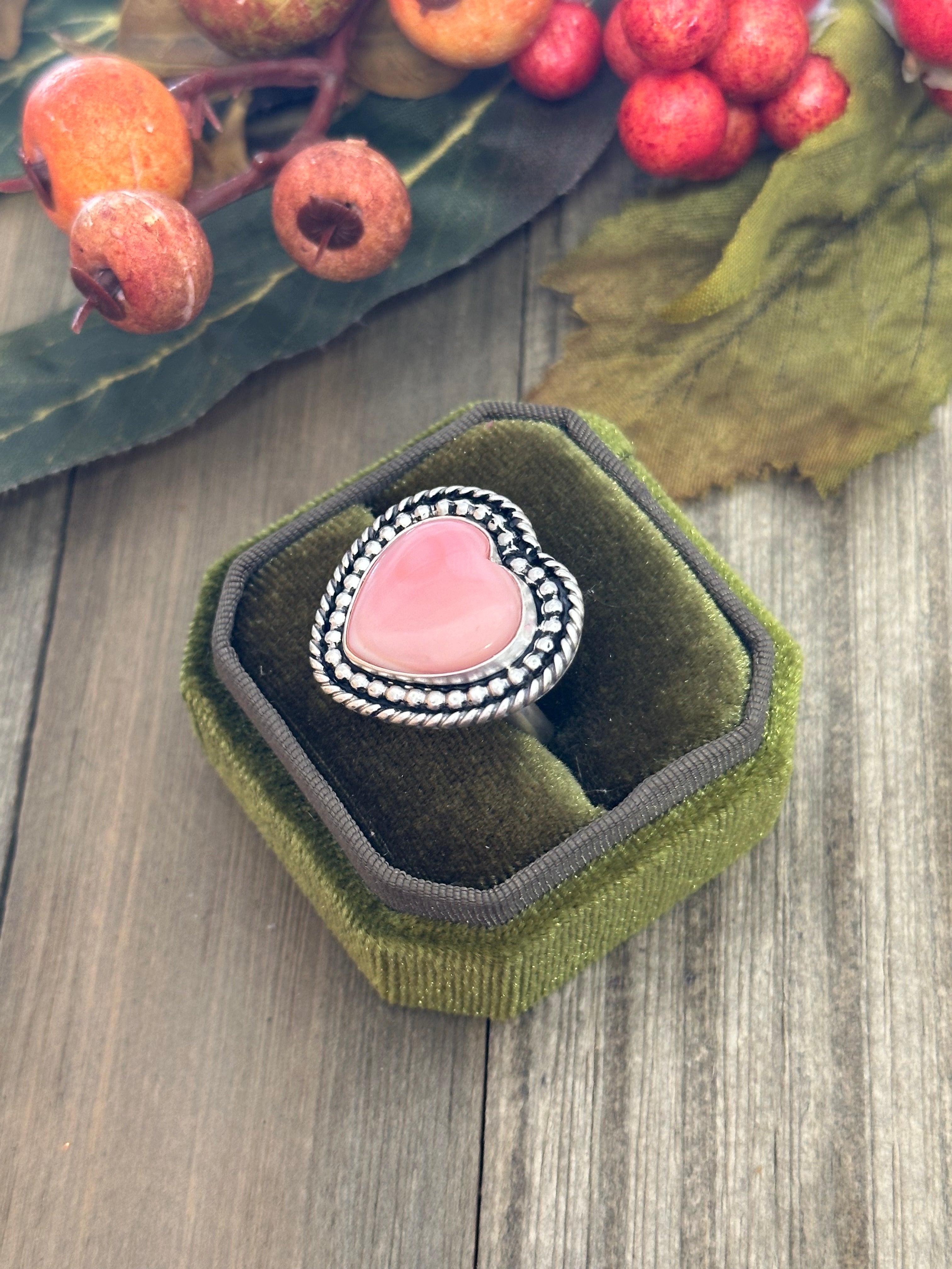 Navajo Made Pink Conch & Sterling Silver Heart Adjustable Ring