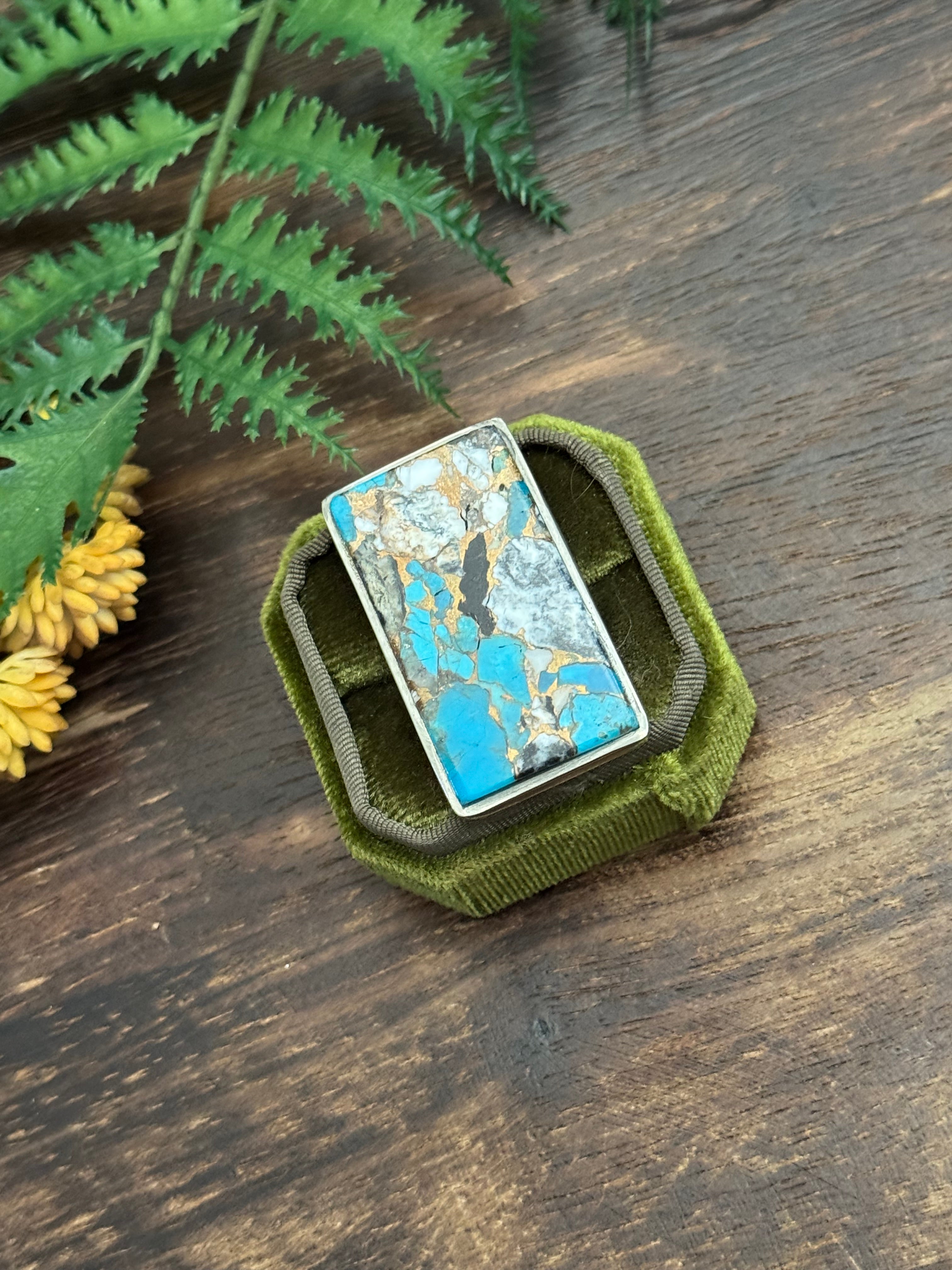 Navajo Made Mohave Turquoise & Sterling Silver Ring Size 5