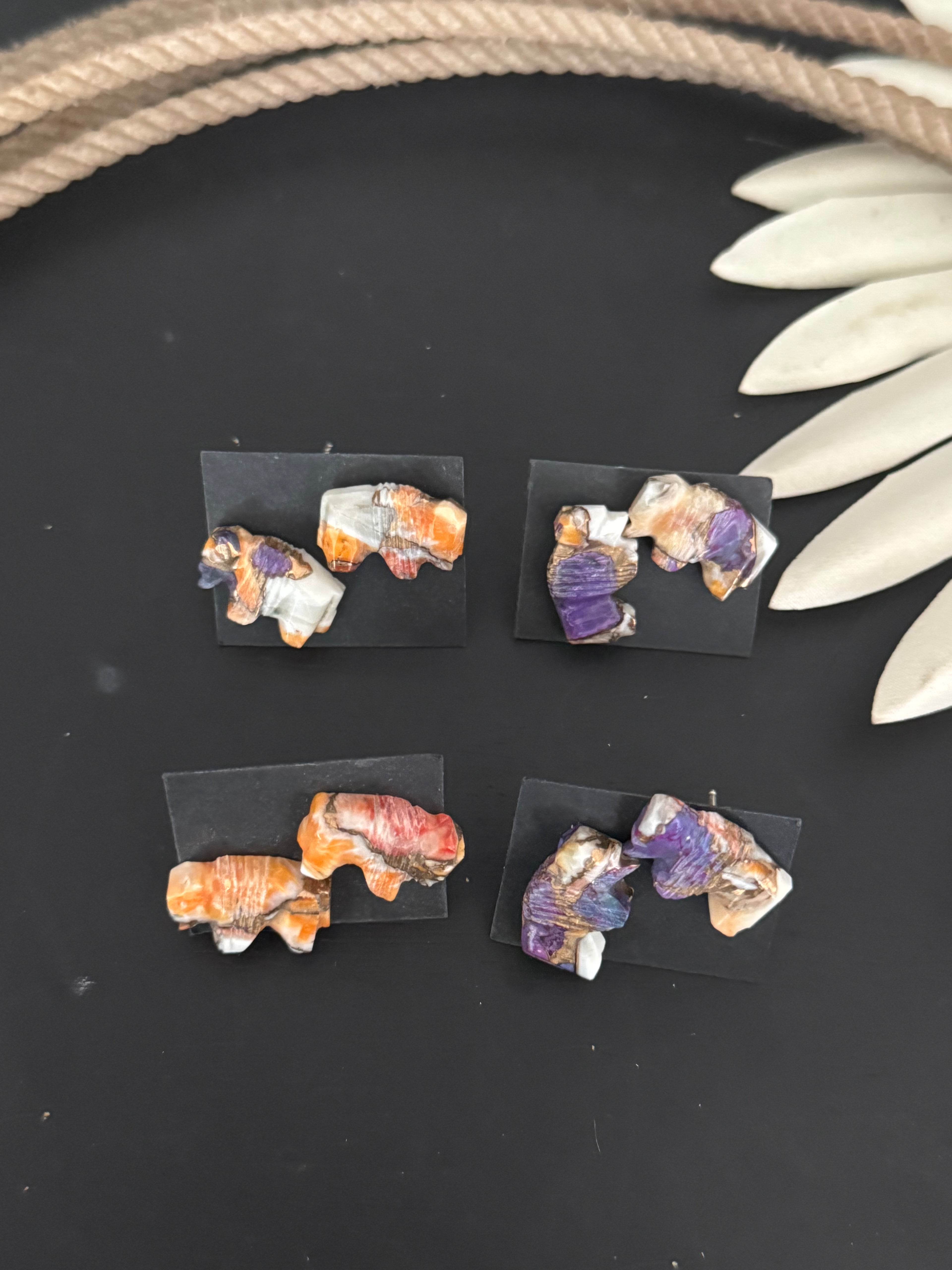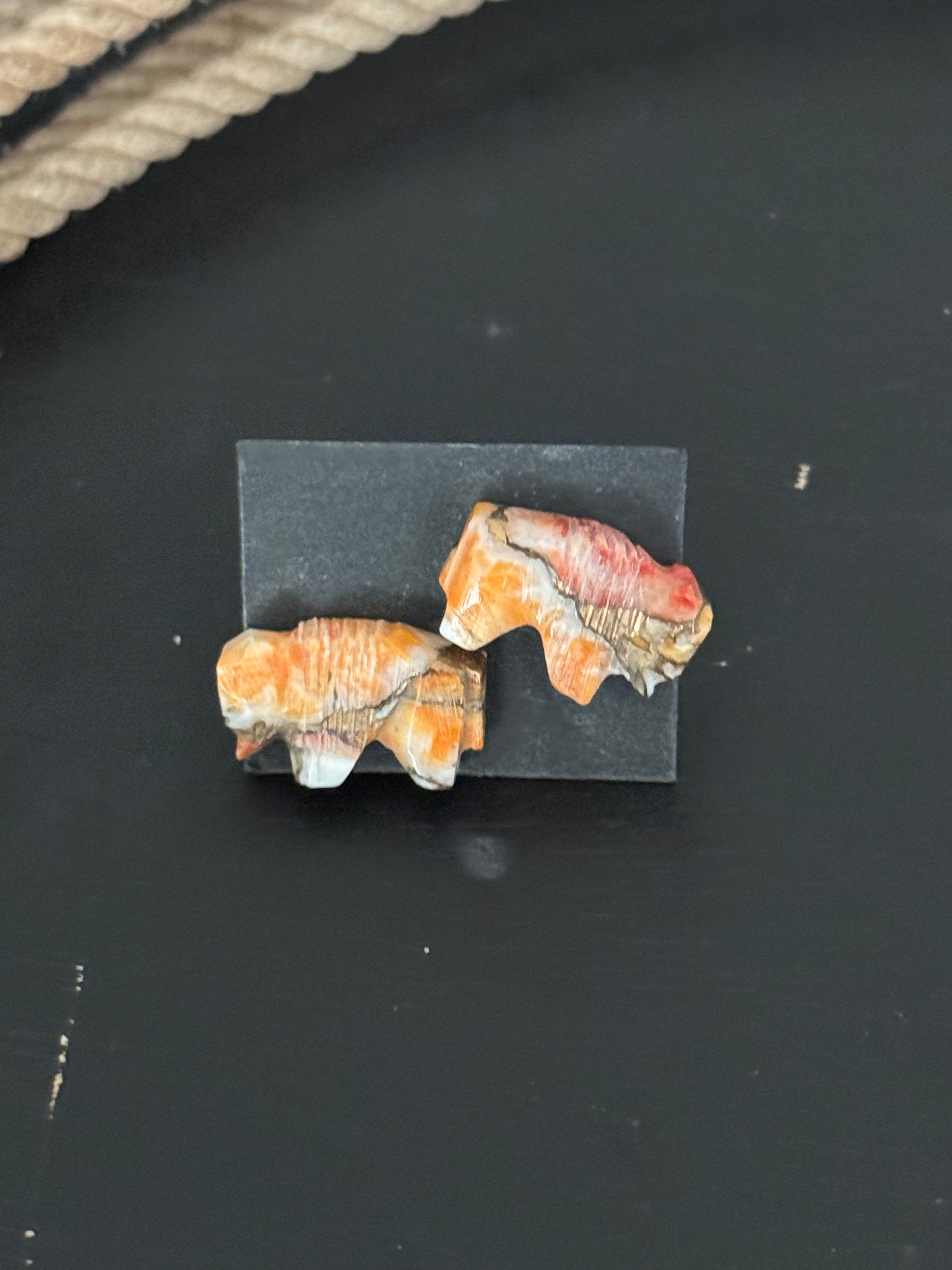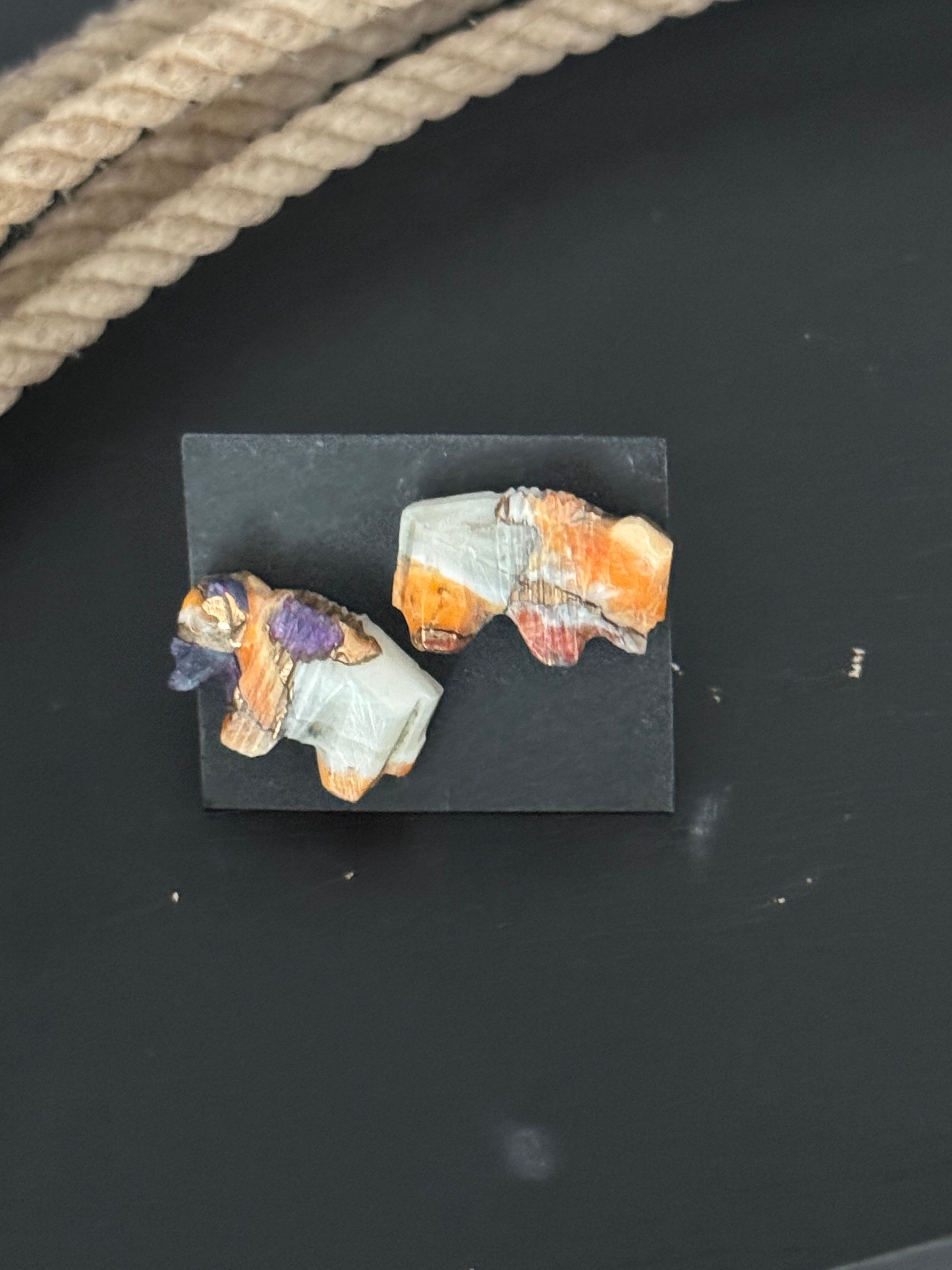 Navajo Made Mohave Turquoise & Sterling Silver Post Earrings. They measure 3/8 of an inch long and 3/4 of an inch wide. Signed by the artist and stamped sterling silver. Stones will differ due to natural stones.