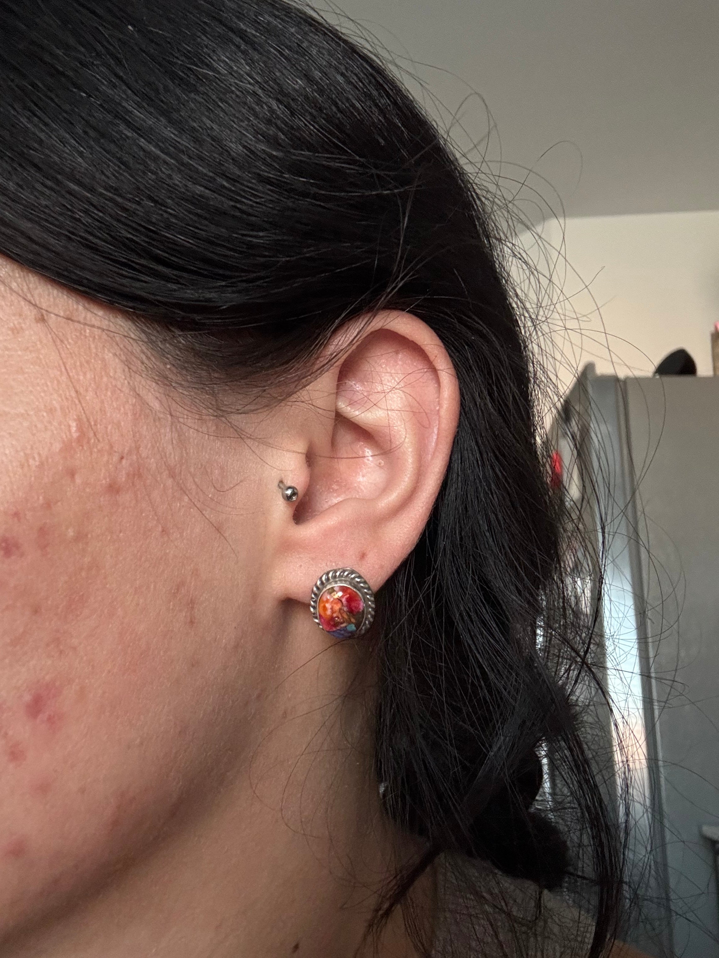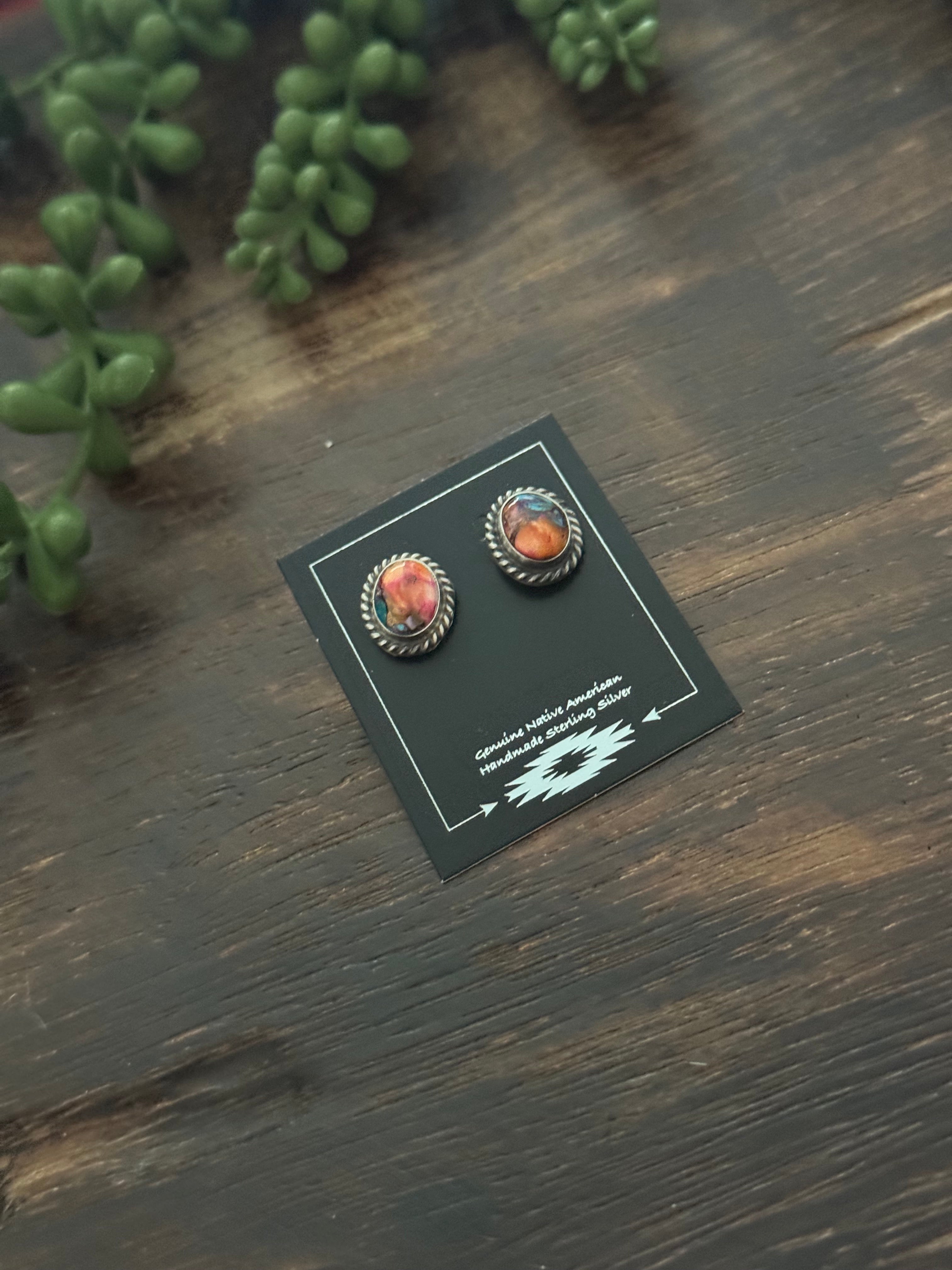 Navajo Made Pink Mohave Turquoise & Sterling Silver Post Earrings