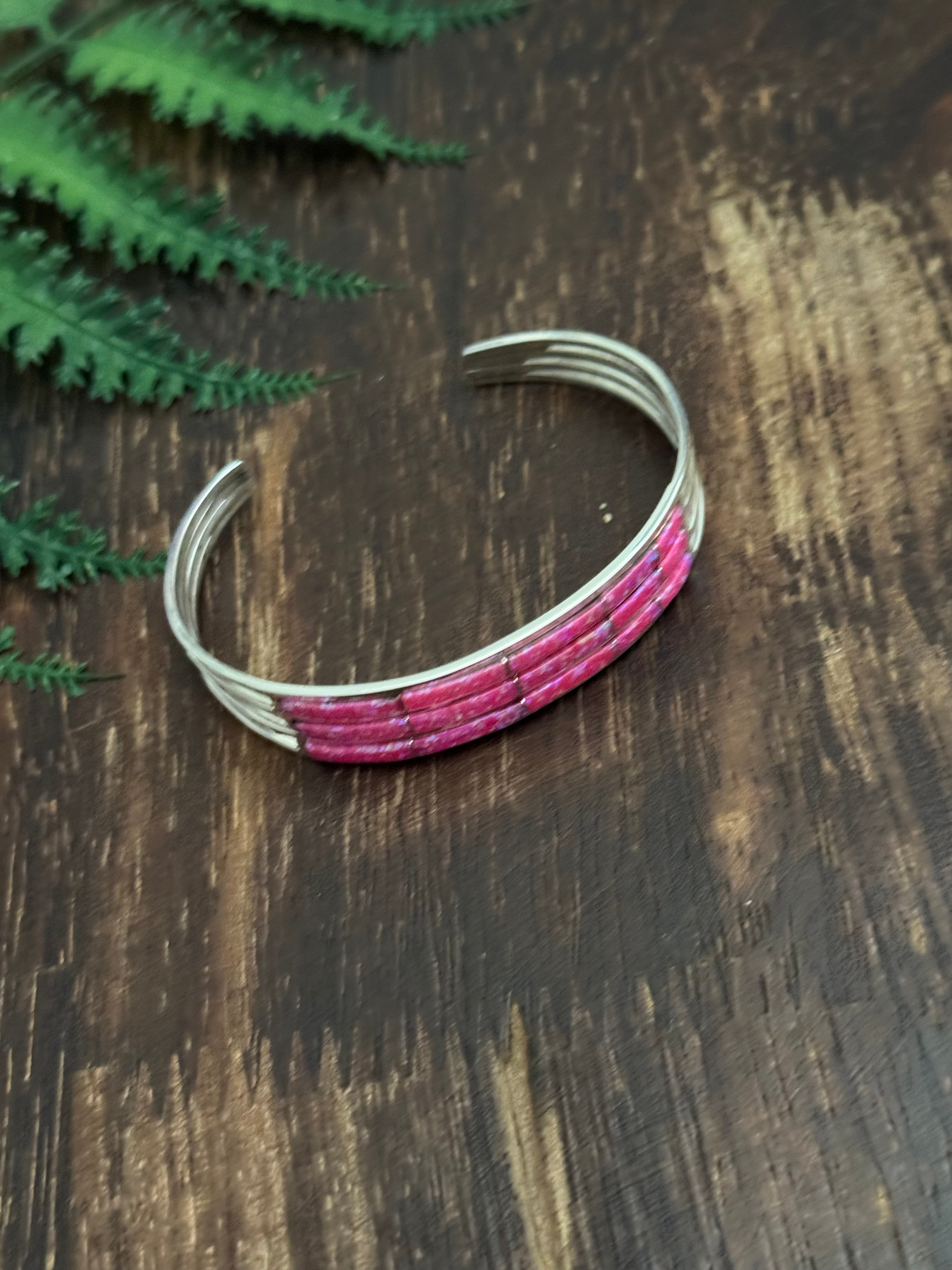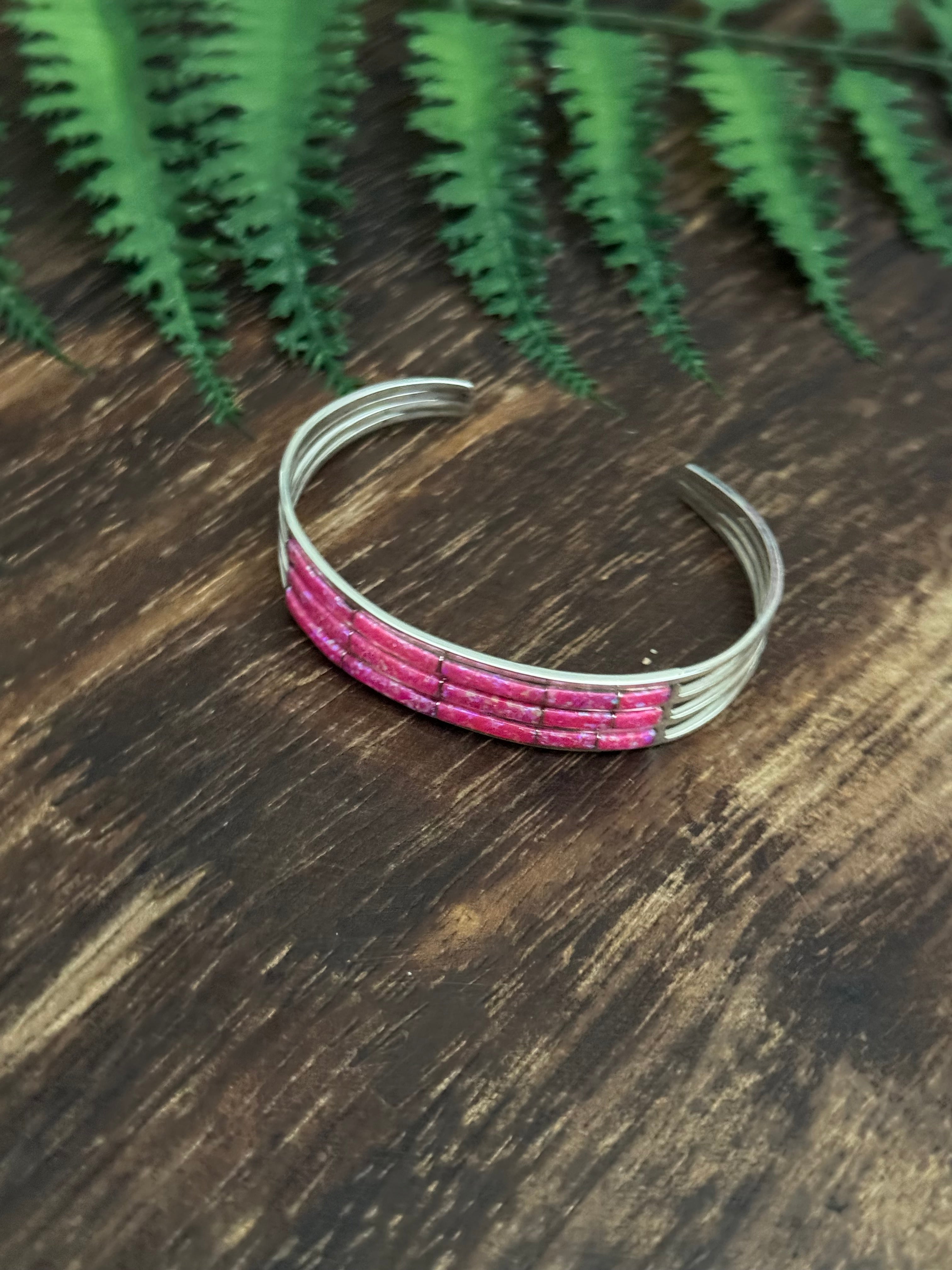 Navajo Made Pink Opal (Man-Made) & Sterling Silver Cuff Bracelet