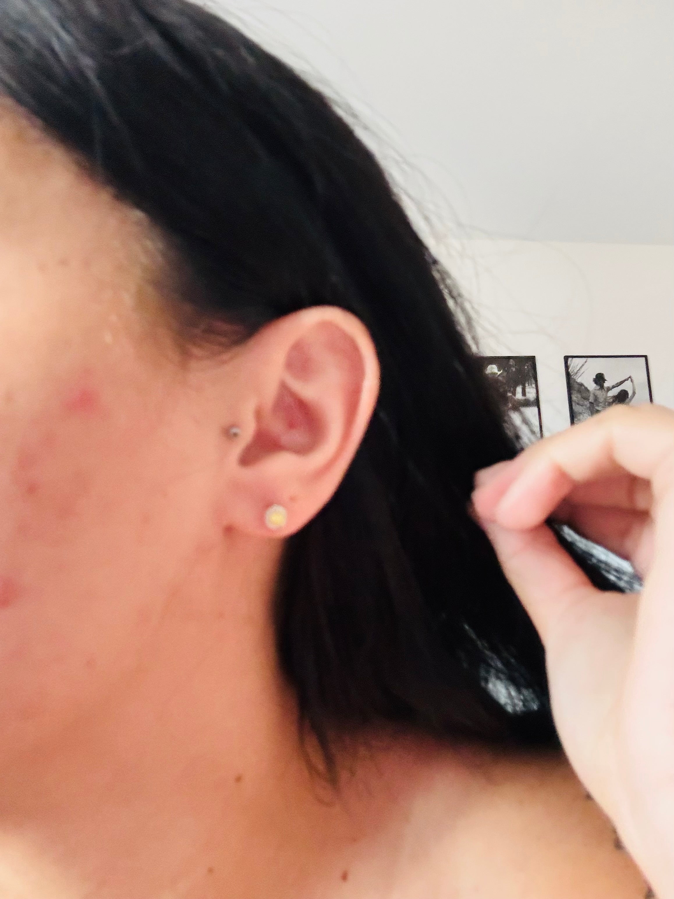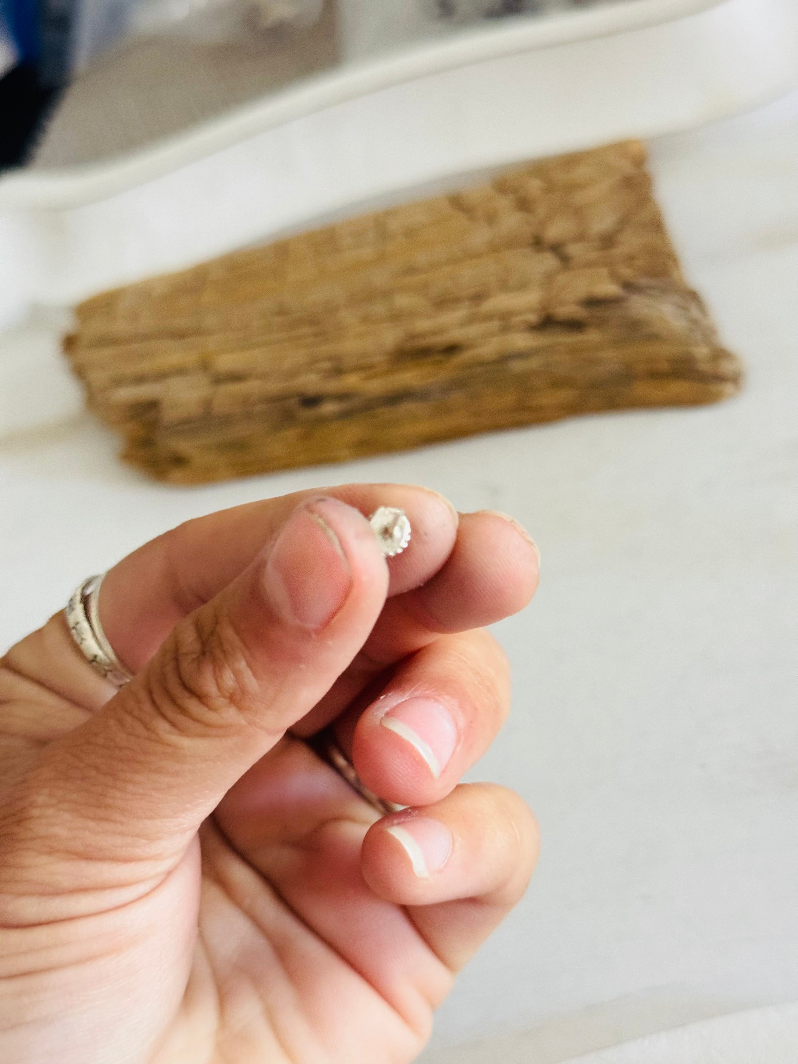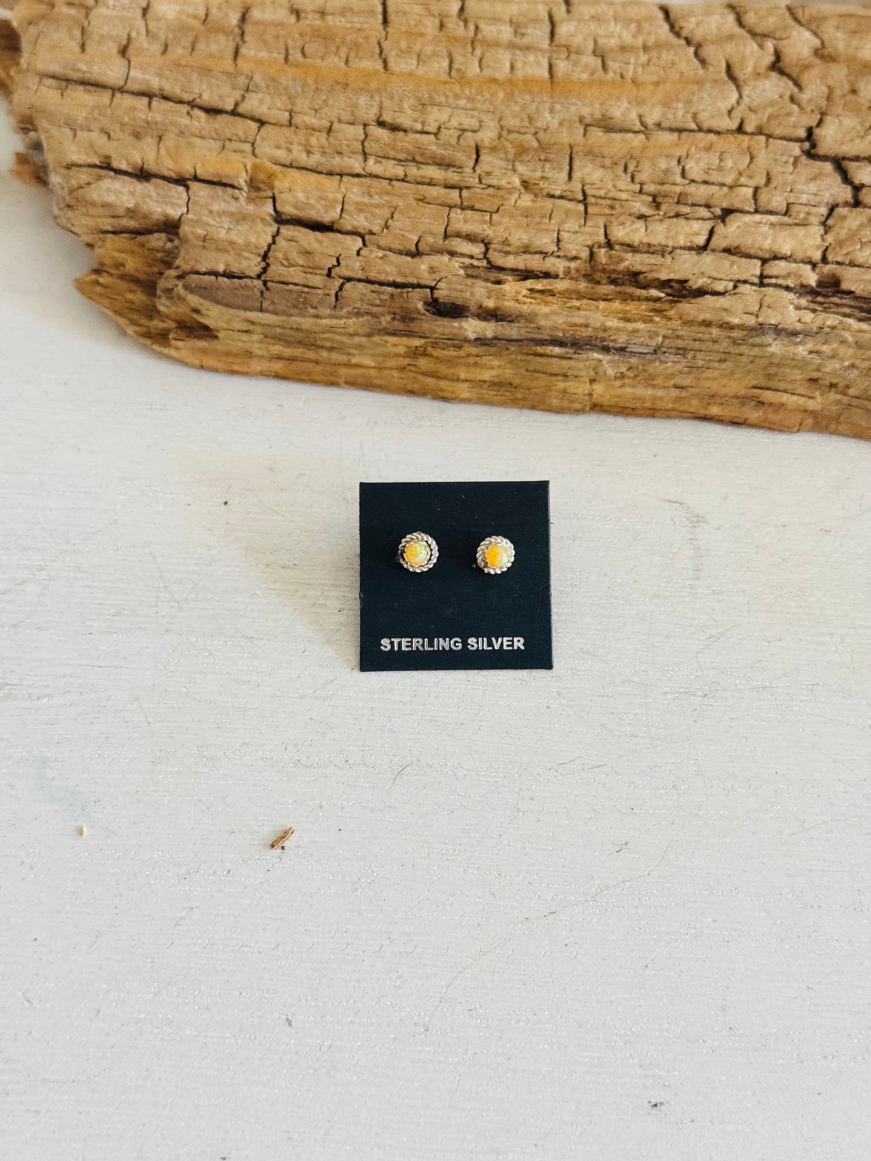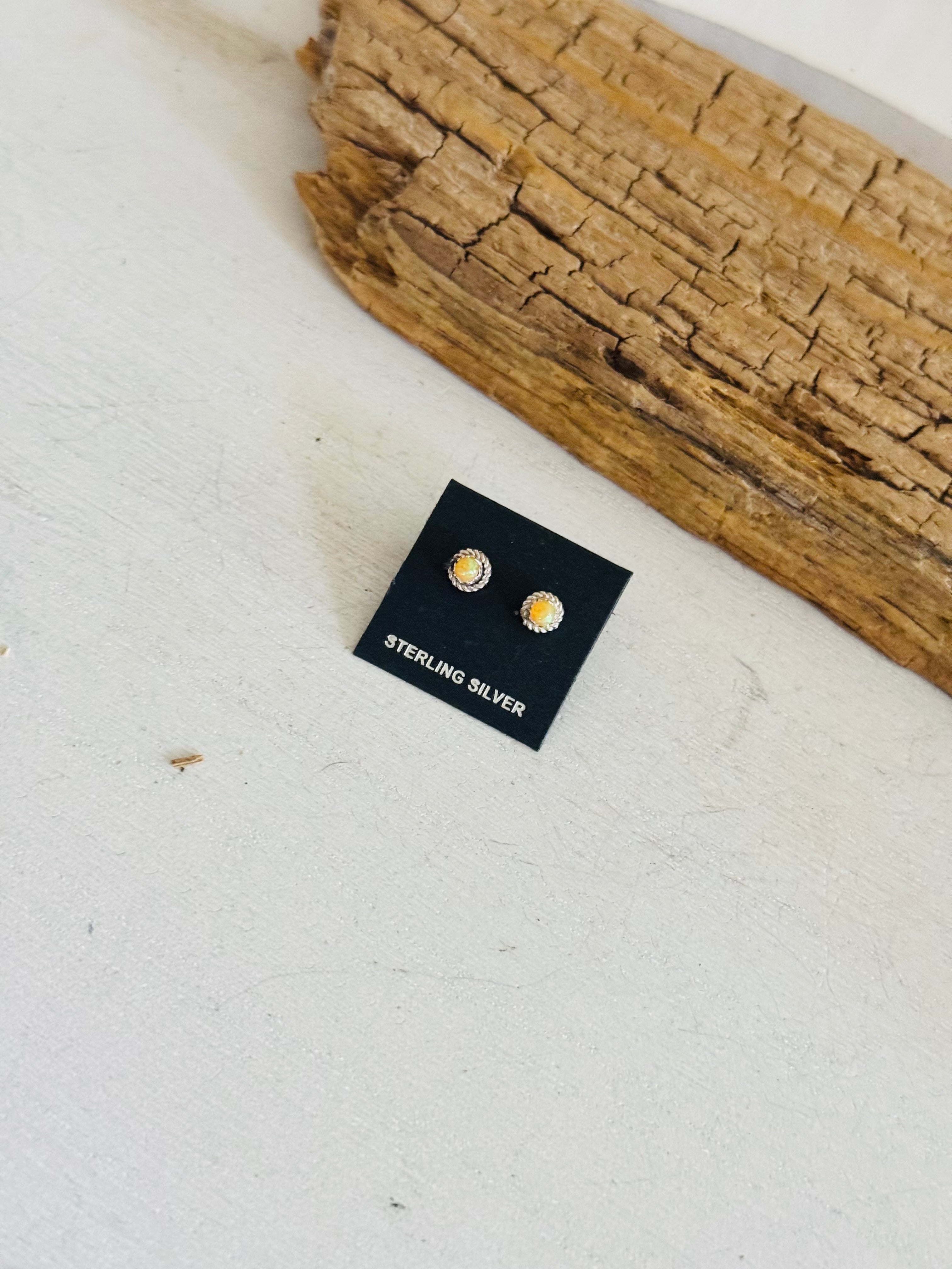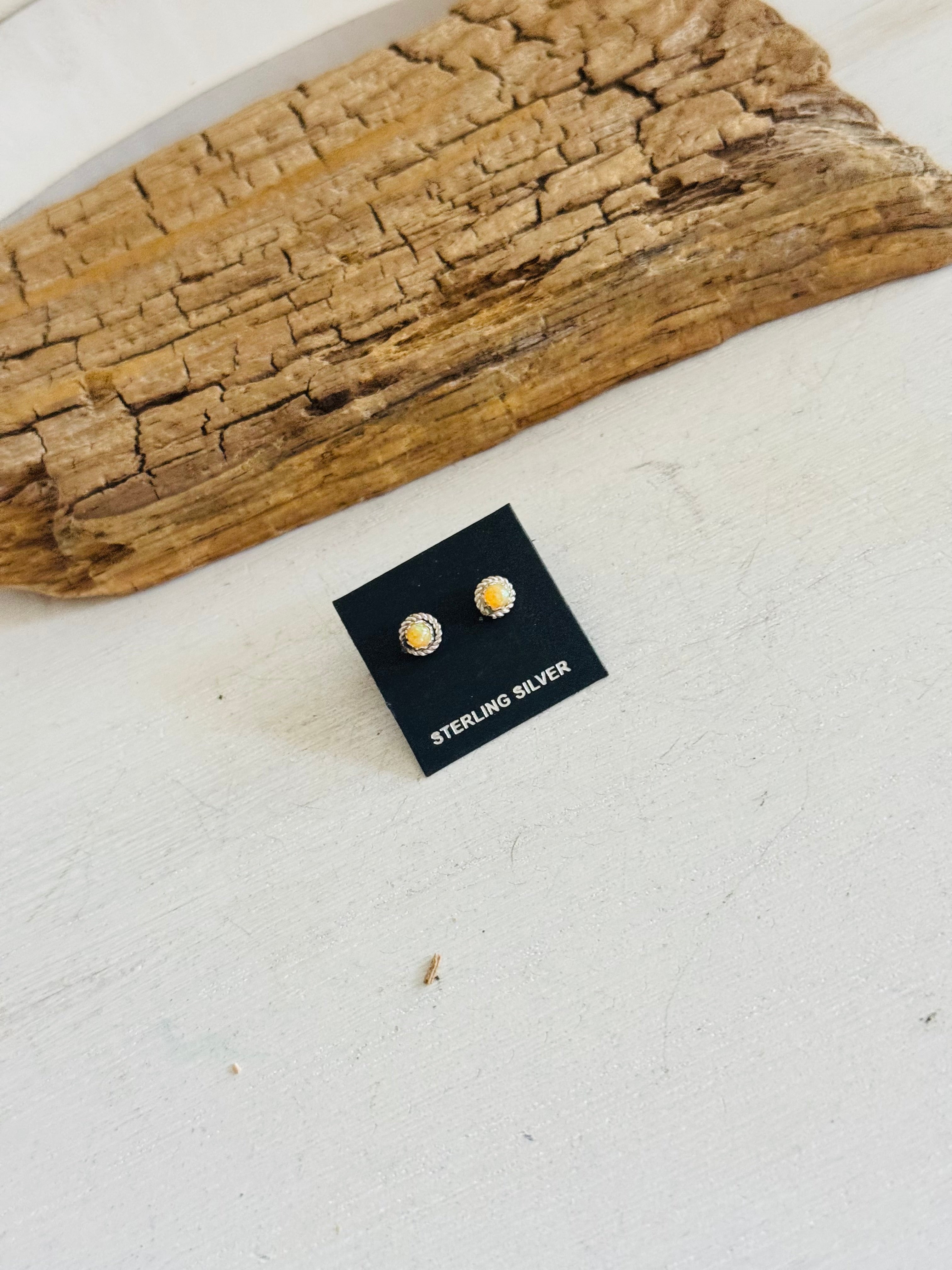 Navajo Made Yellow Opal & Sterling Silver Post Earrings. It measures 1/4 of an inch round.