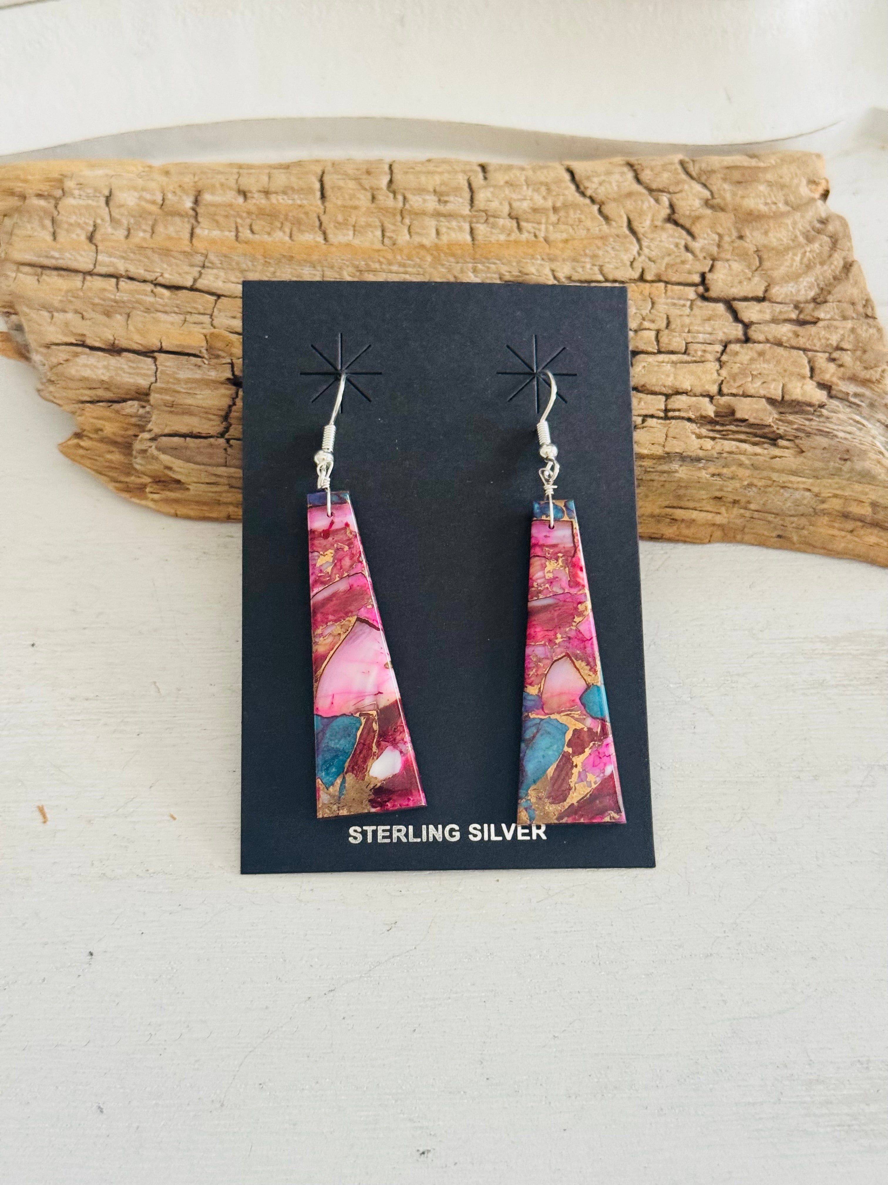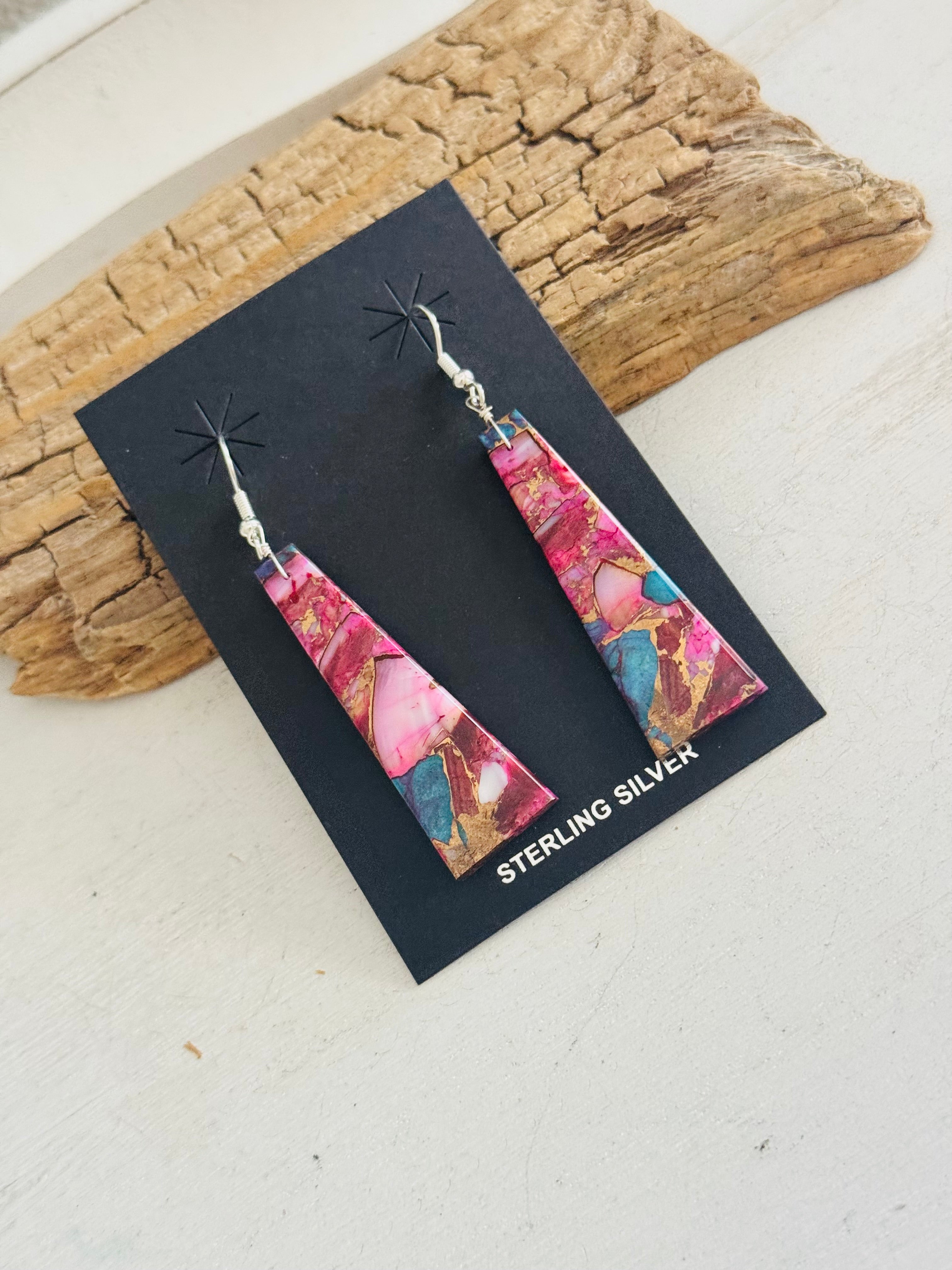 Navajo Made Purple Mohave Turquoise & Sterling Silver Slab Dangle Earrings