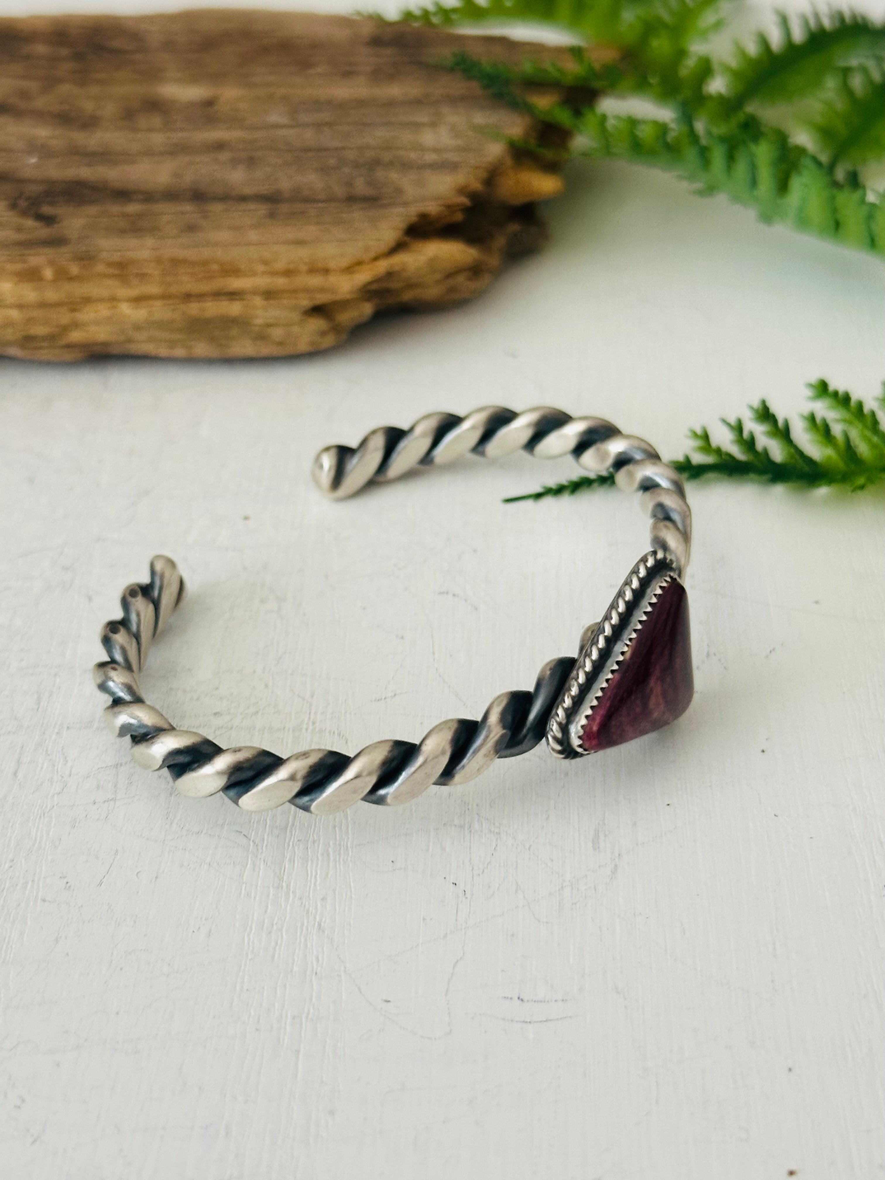 Navajo Made Purple Spiny Oyster & Sterling Silver Cuff Bracelet