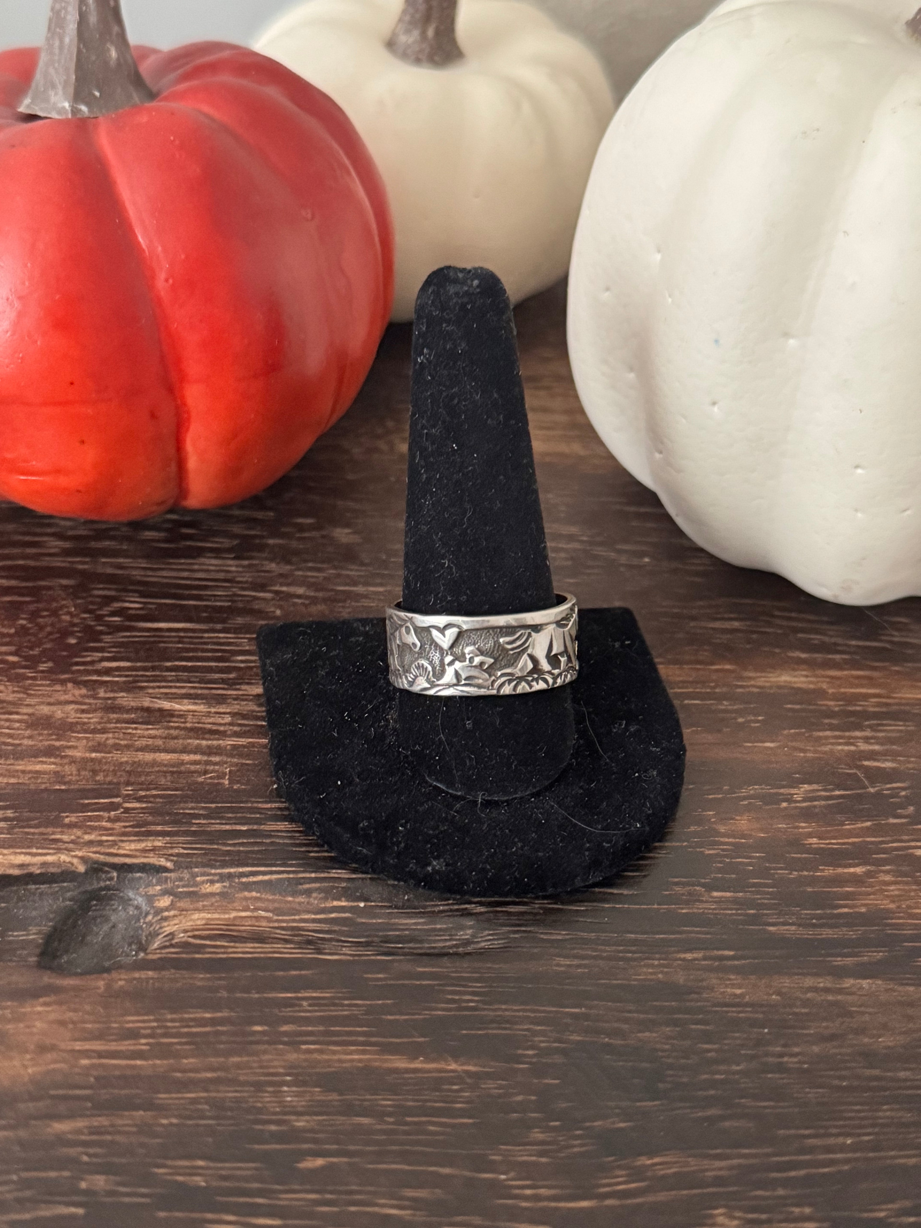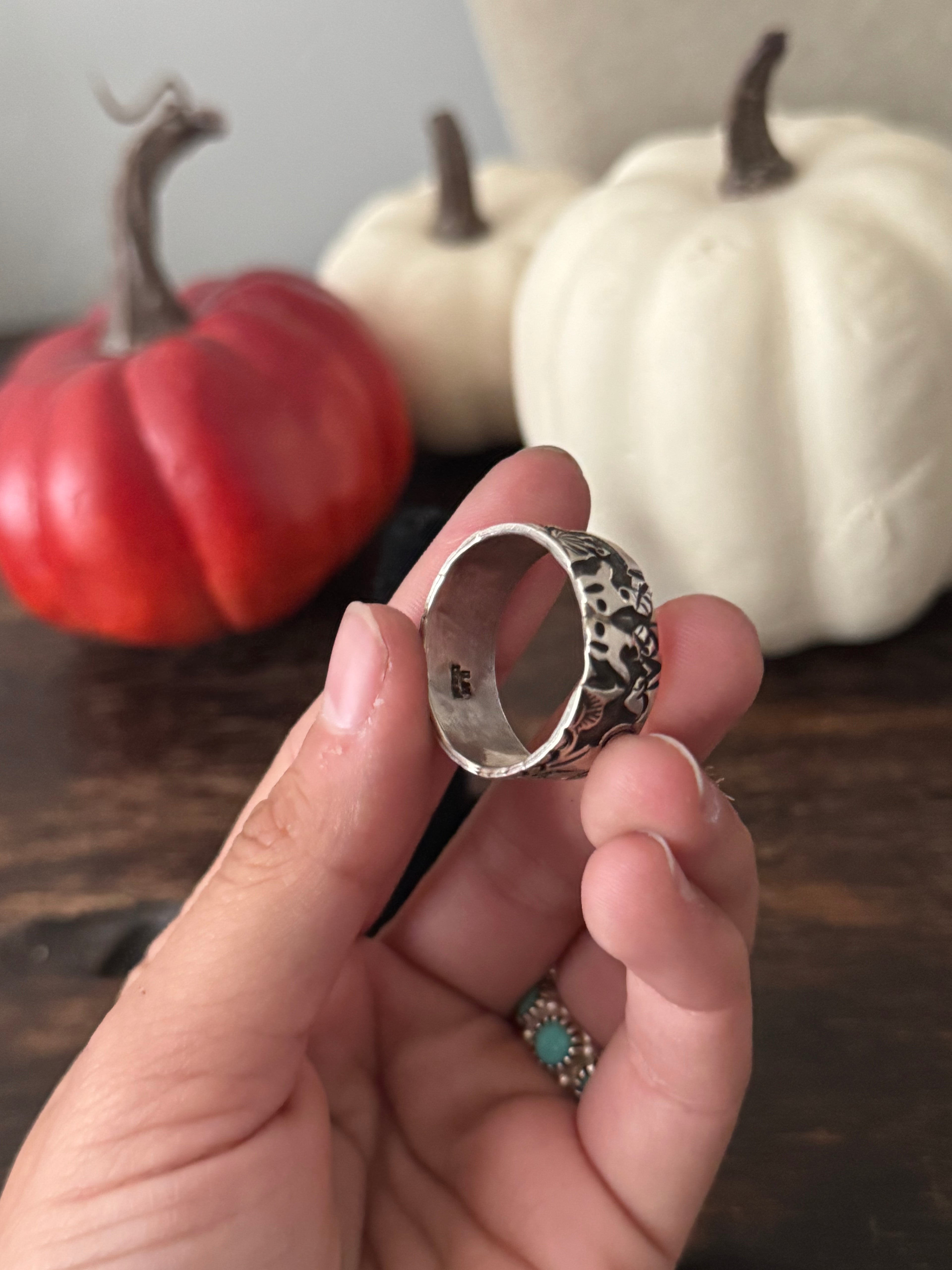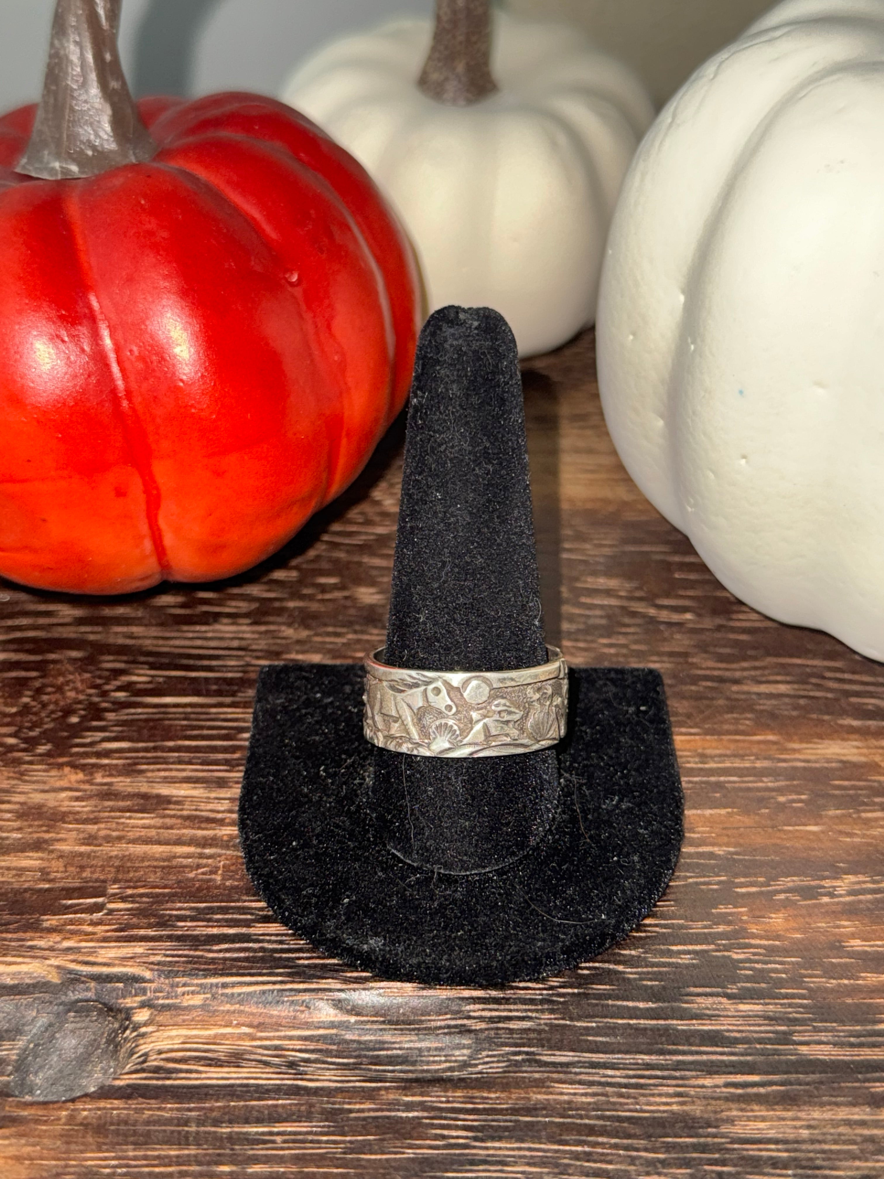 This is an awesome ring. Navajo Made Sterling Silver Story Teller Ring. It measures 1/2 of an inch long. Stamped and signed.