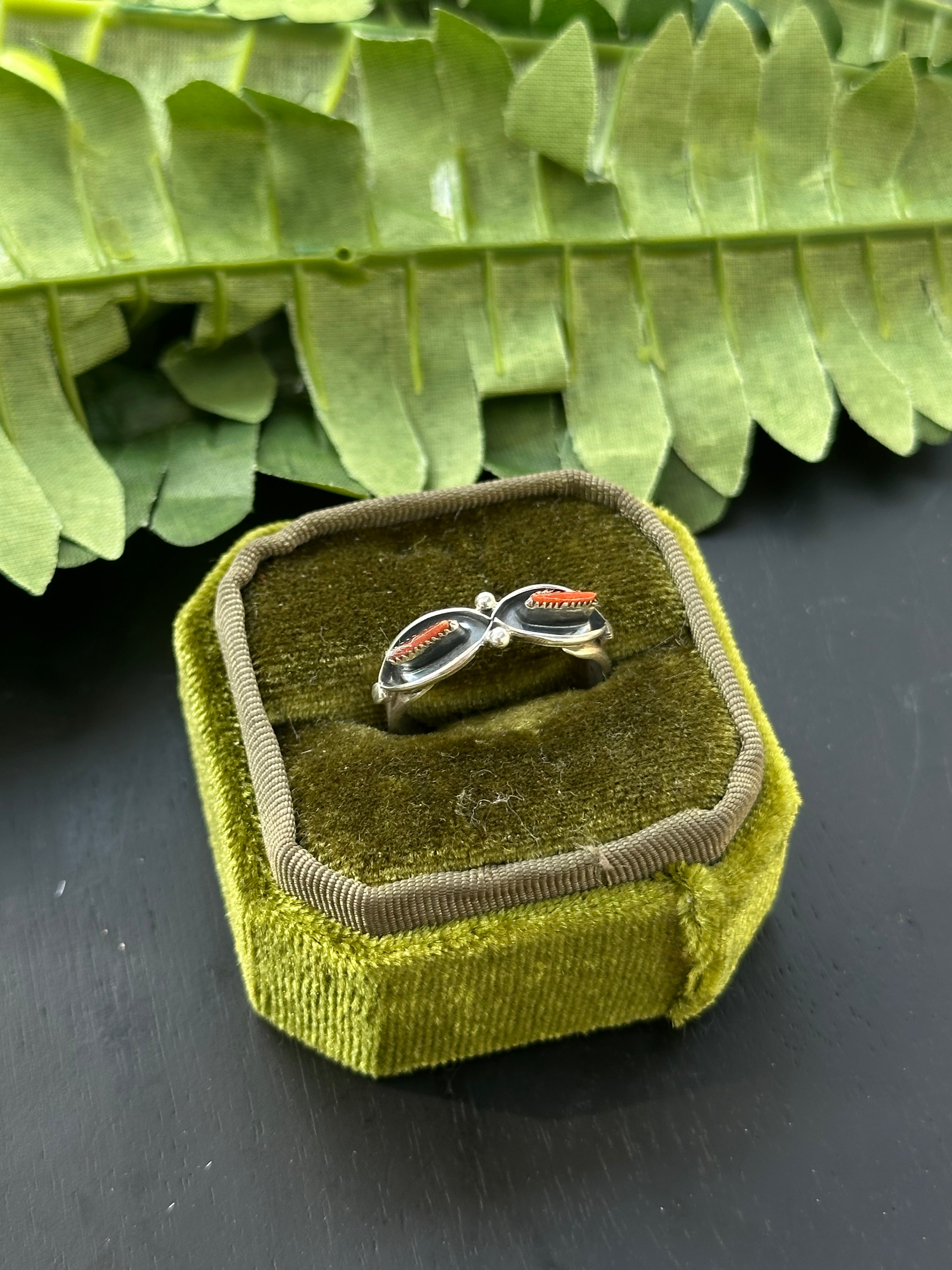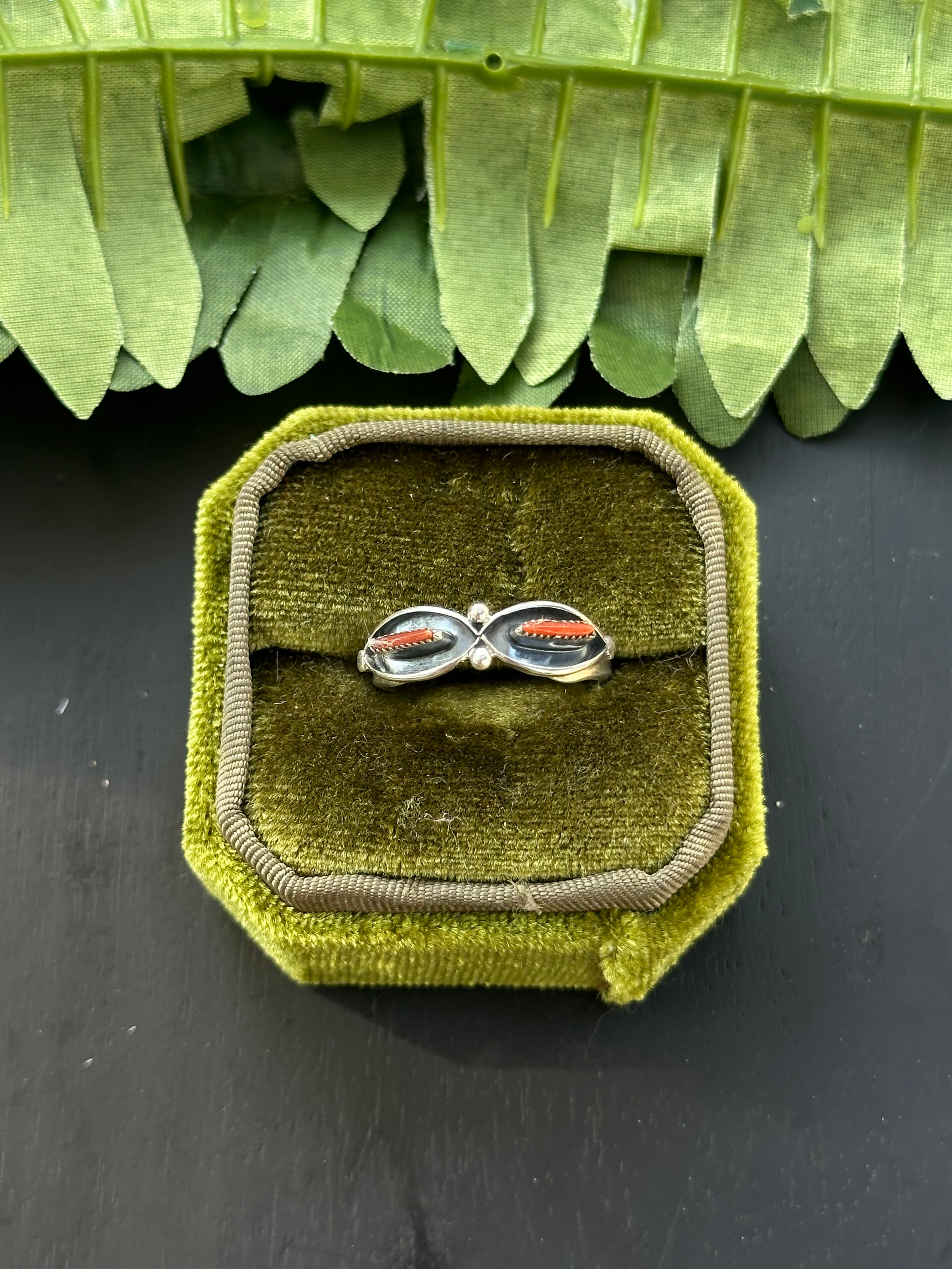 Beautiful ring, Navajo Made Red Coral & Sterling Silver Ring. It measures 1/4 of an inch long.
