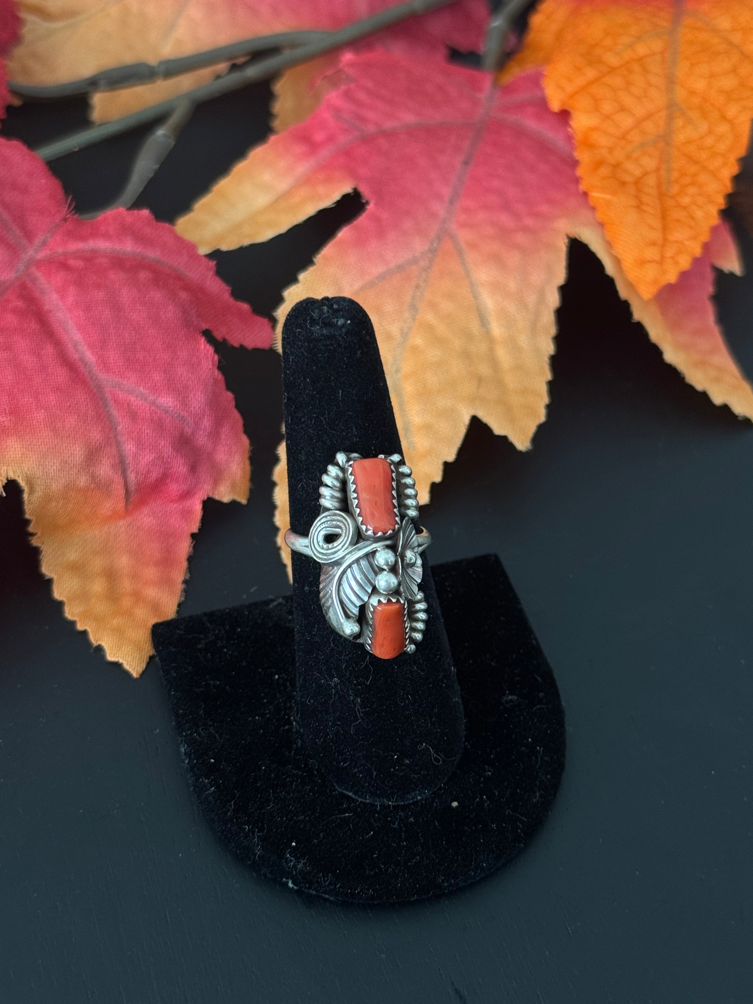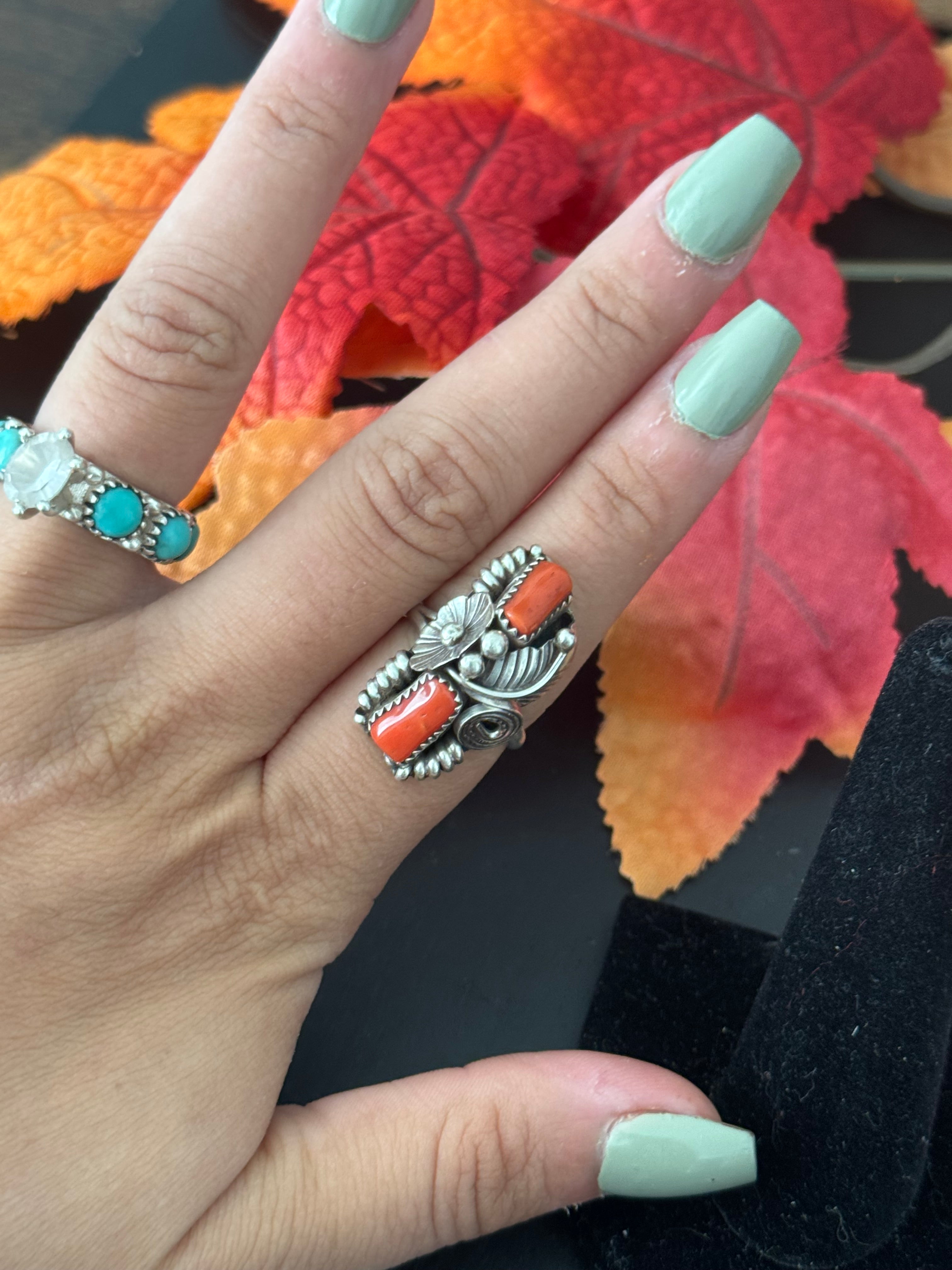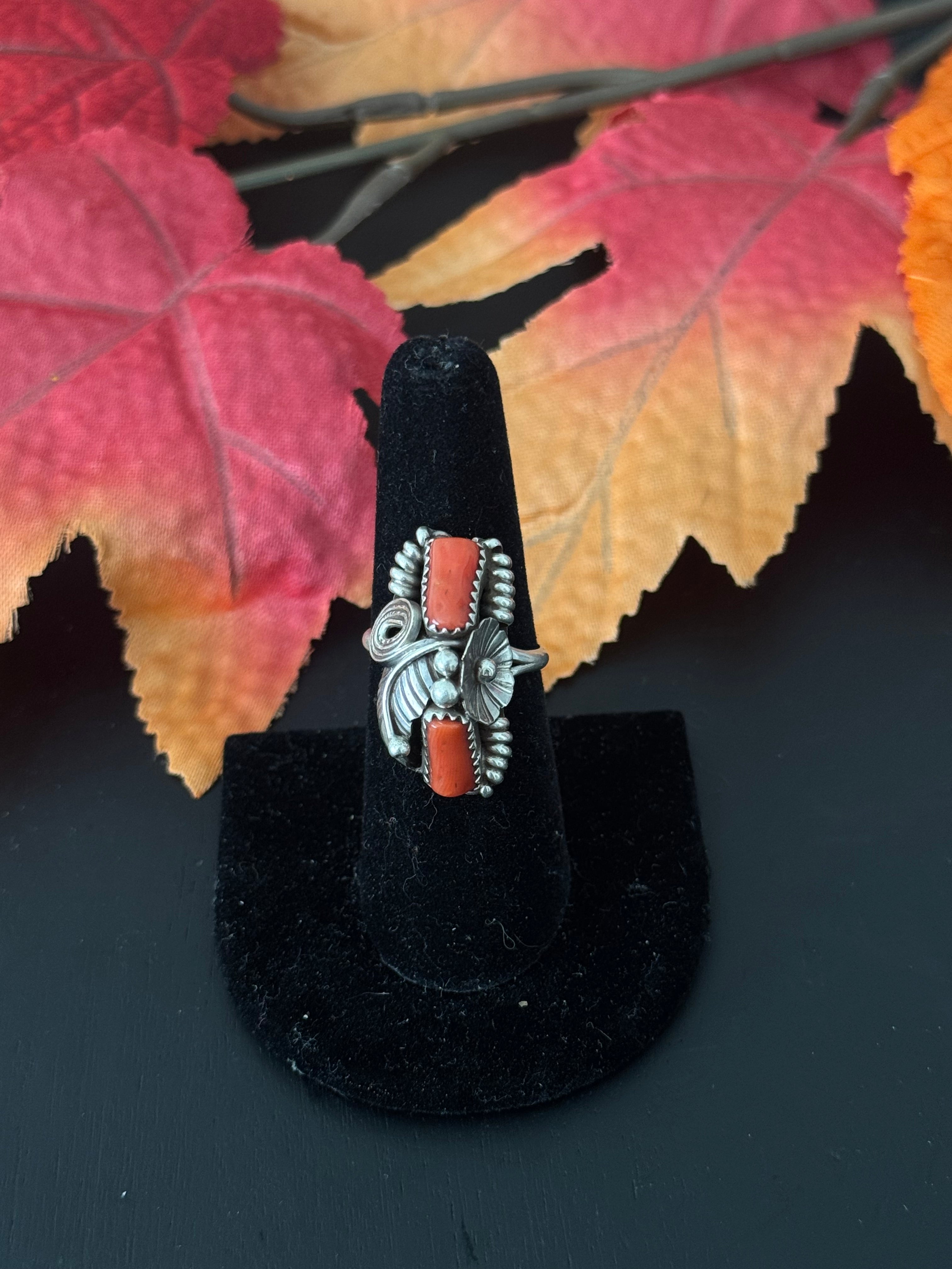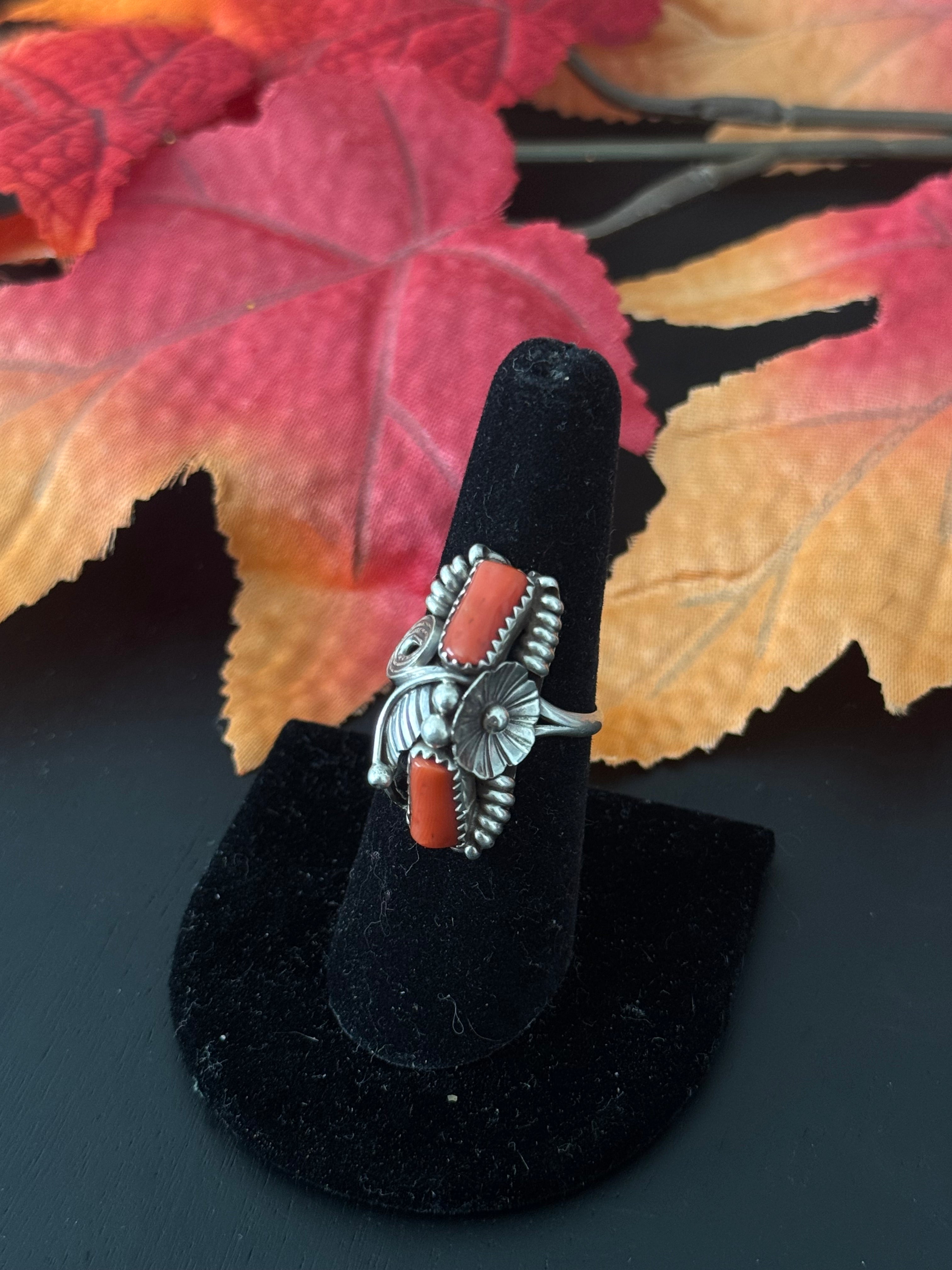 Caroline Nez Red Coral & Sterling Silver Ring Size 7.75