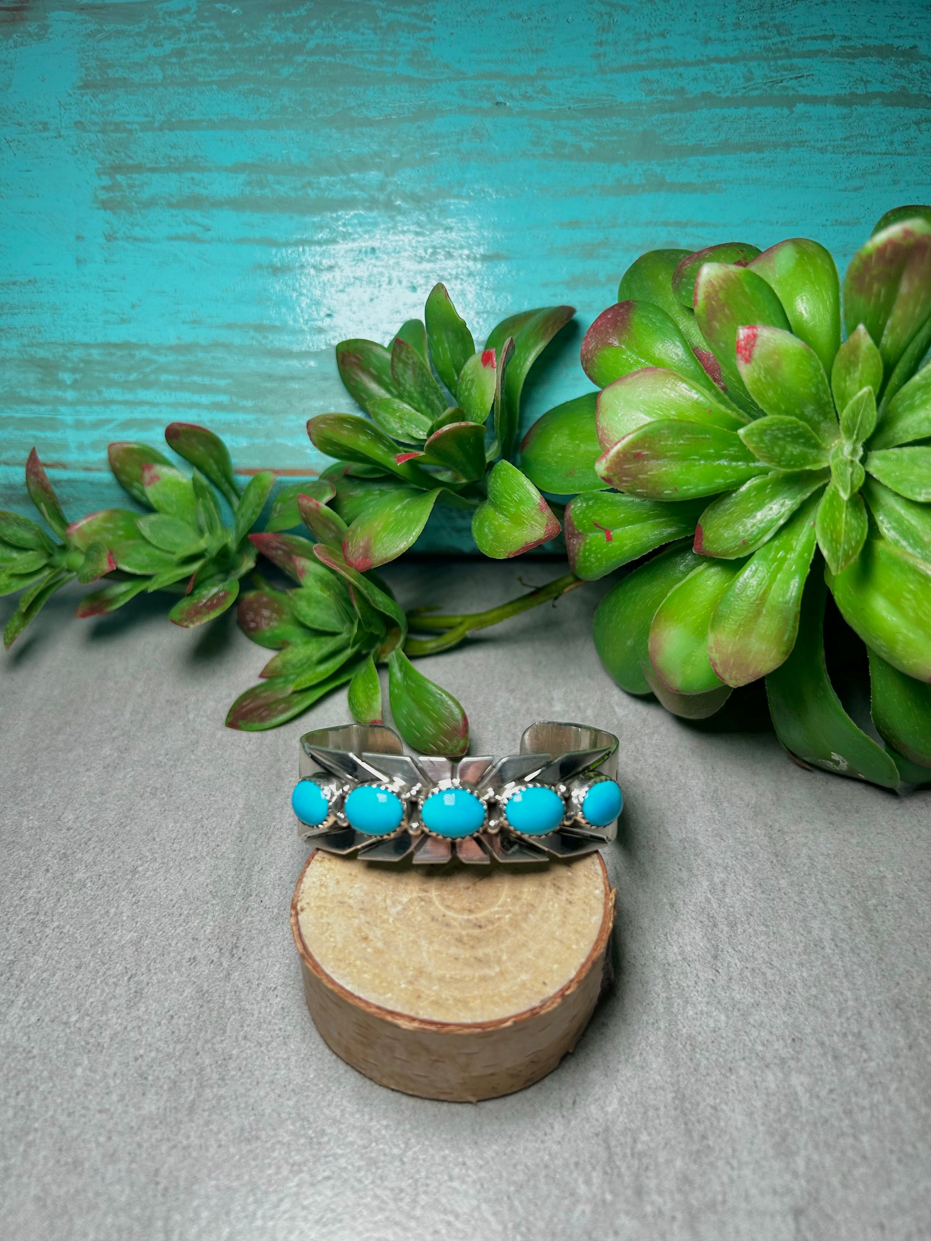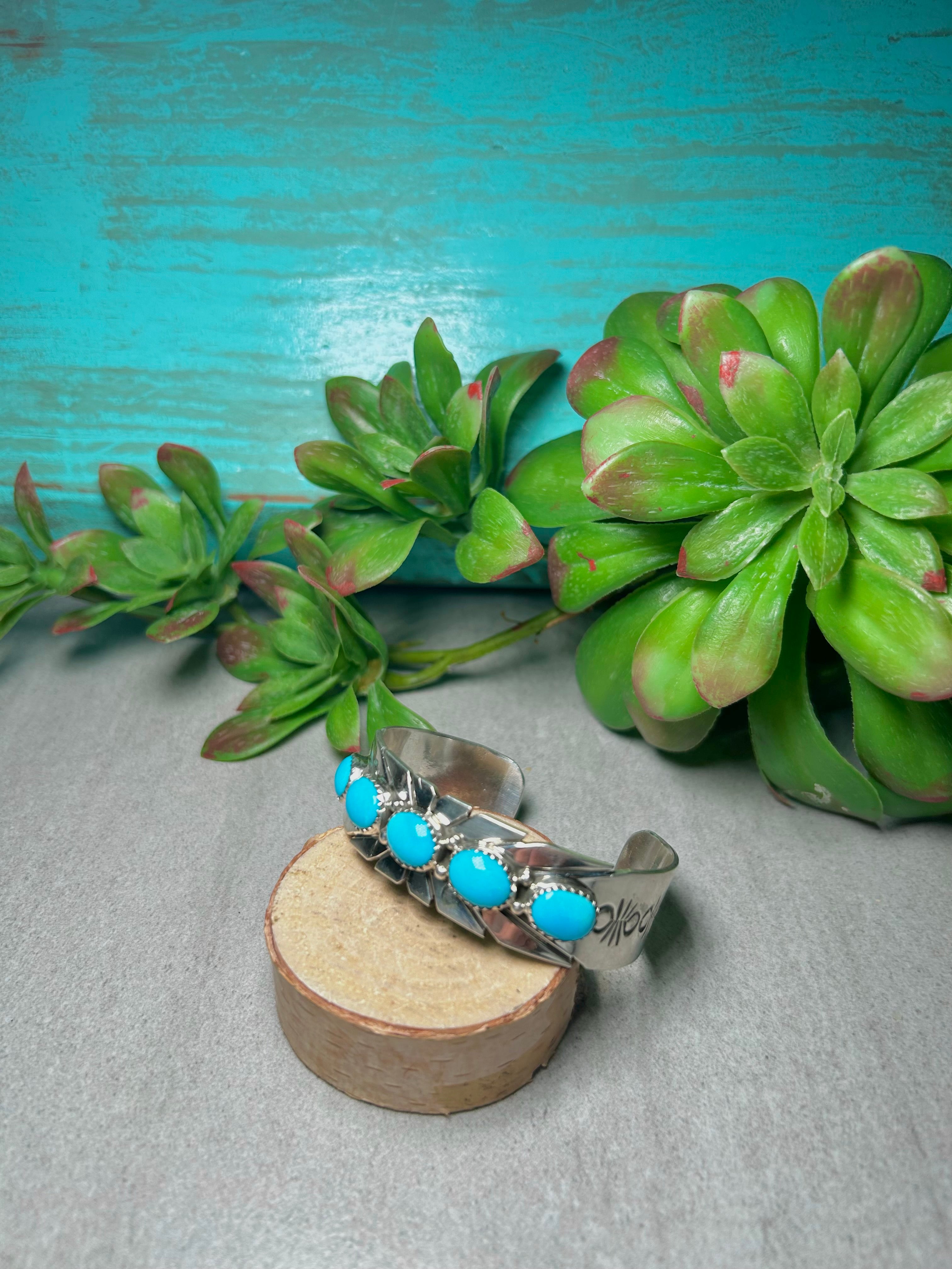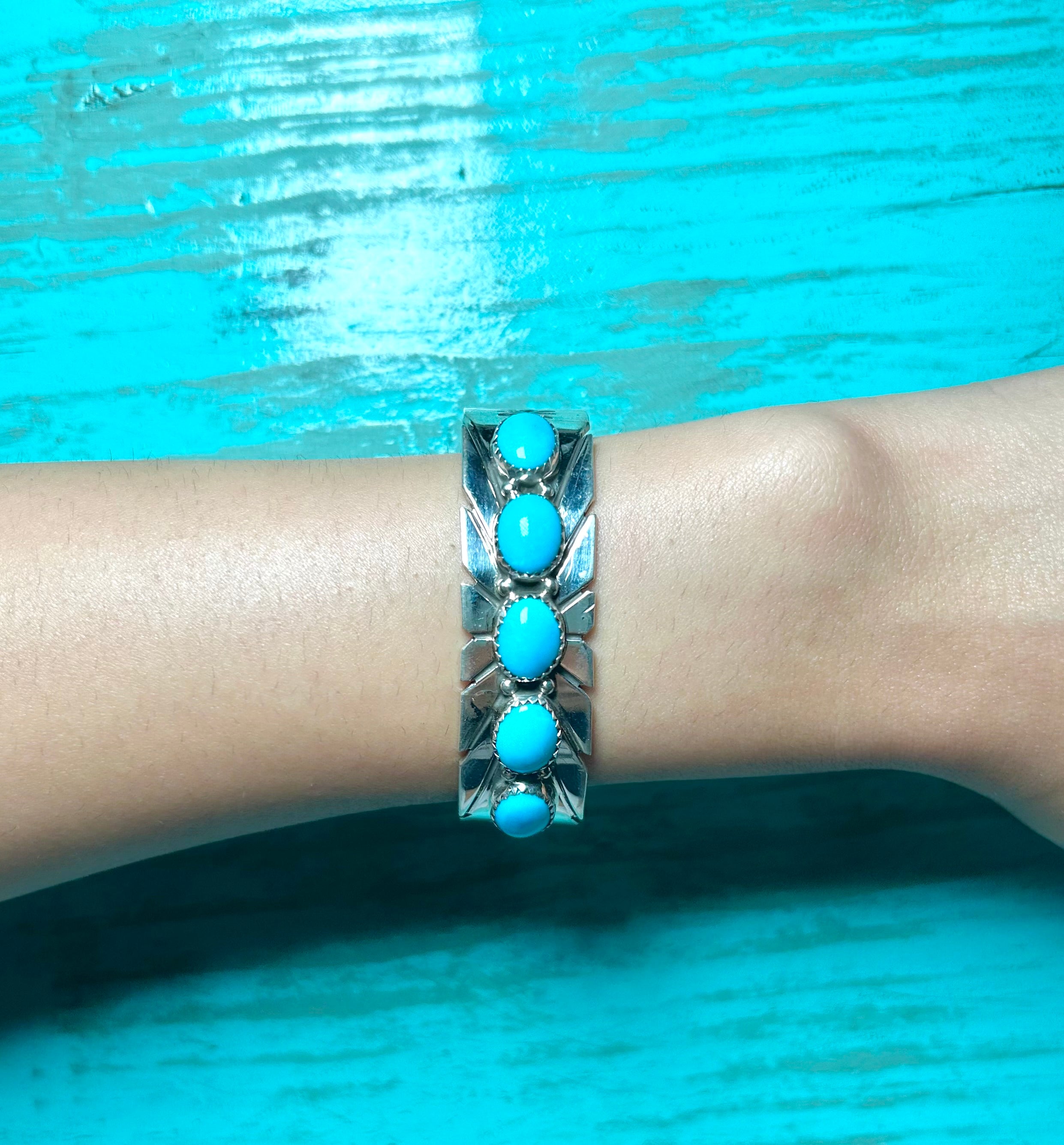 Navajo Made Sleeping Beauty Turquoise & Sterling Silver Cuff Bracelet