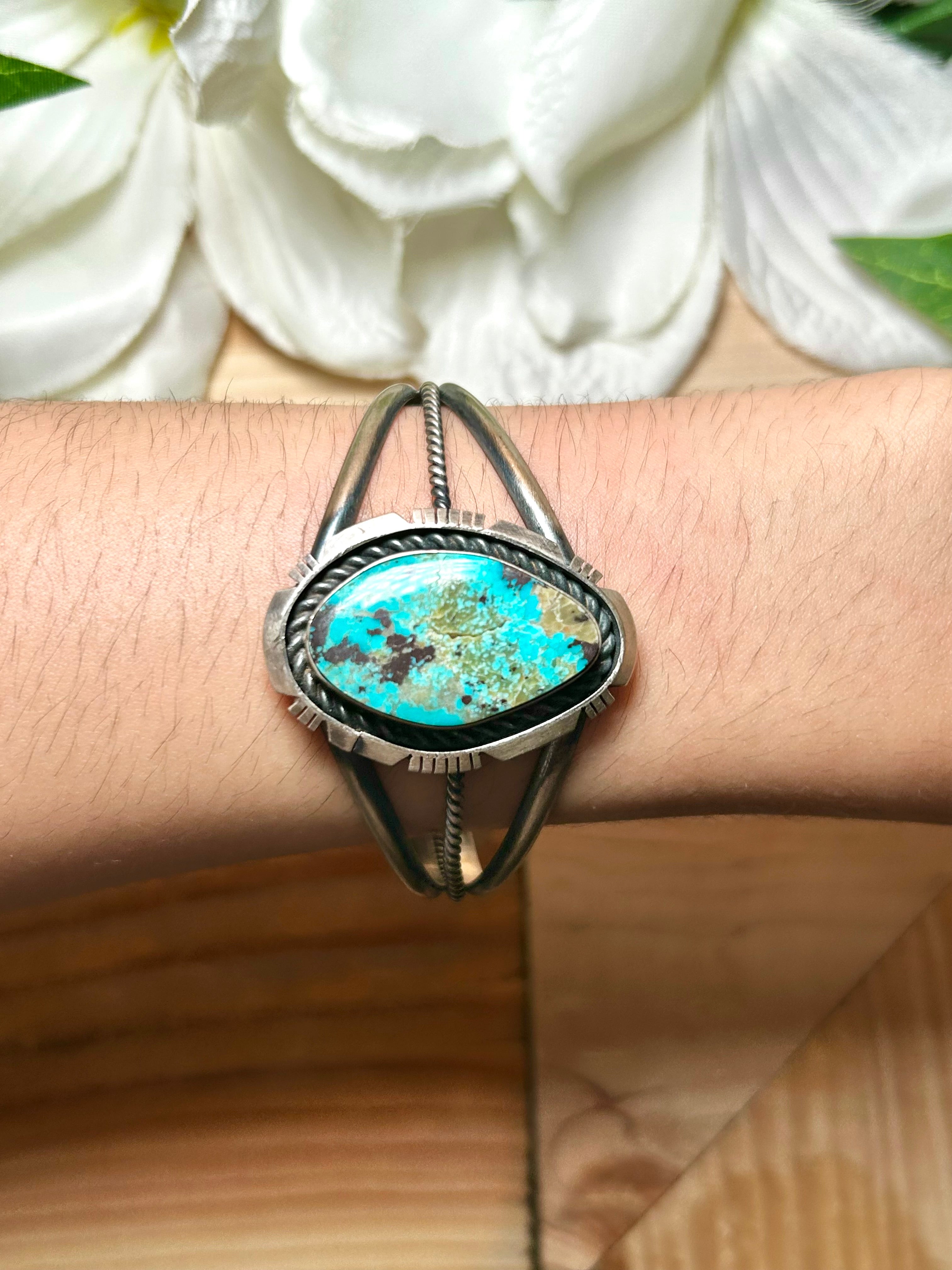 Navajo Made Red Skin Turquoise & Sterling Silver Cuff Bracelet