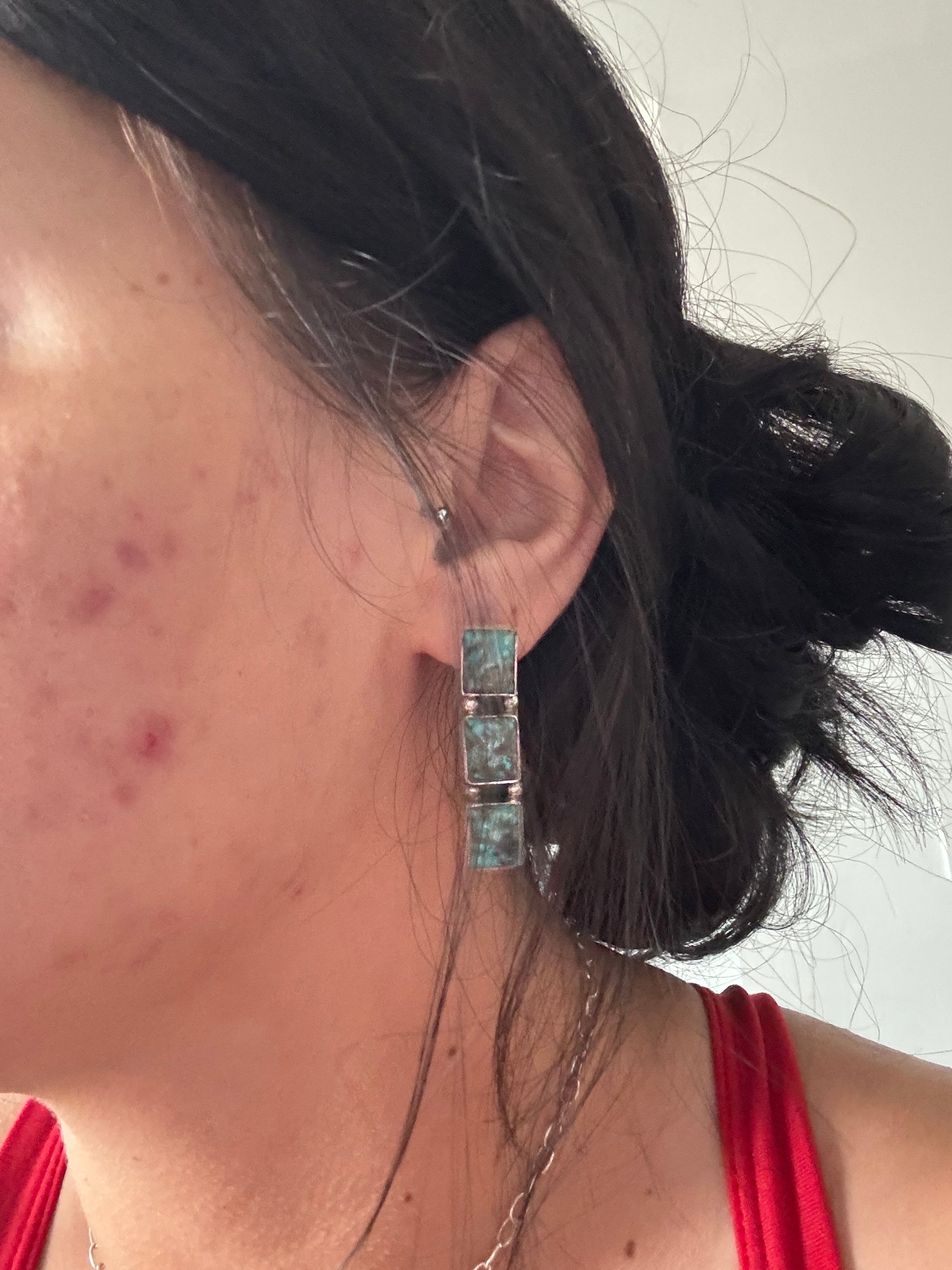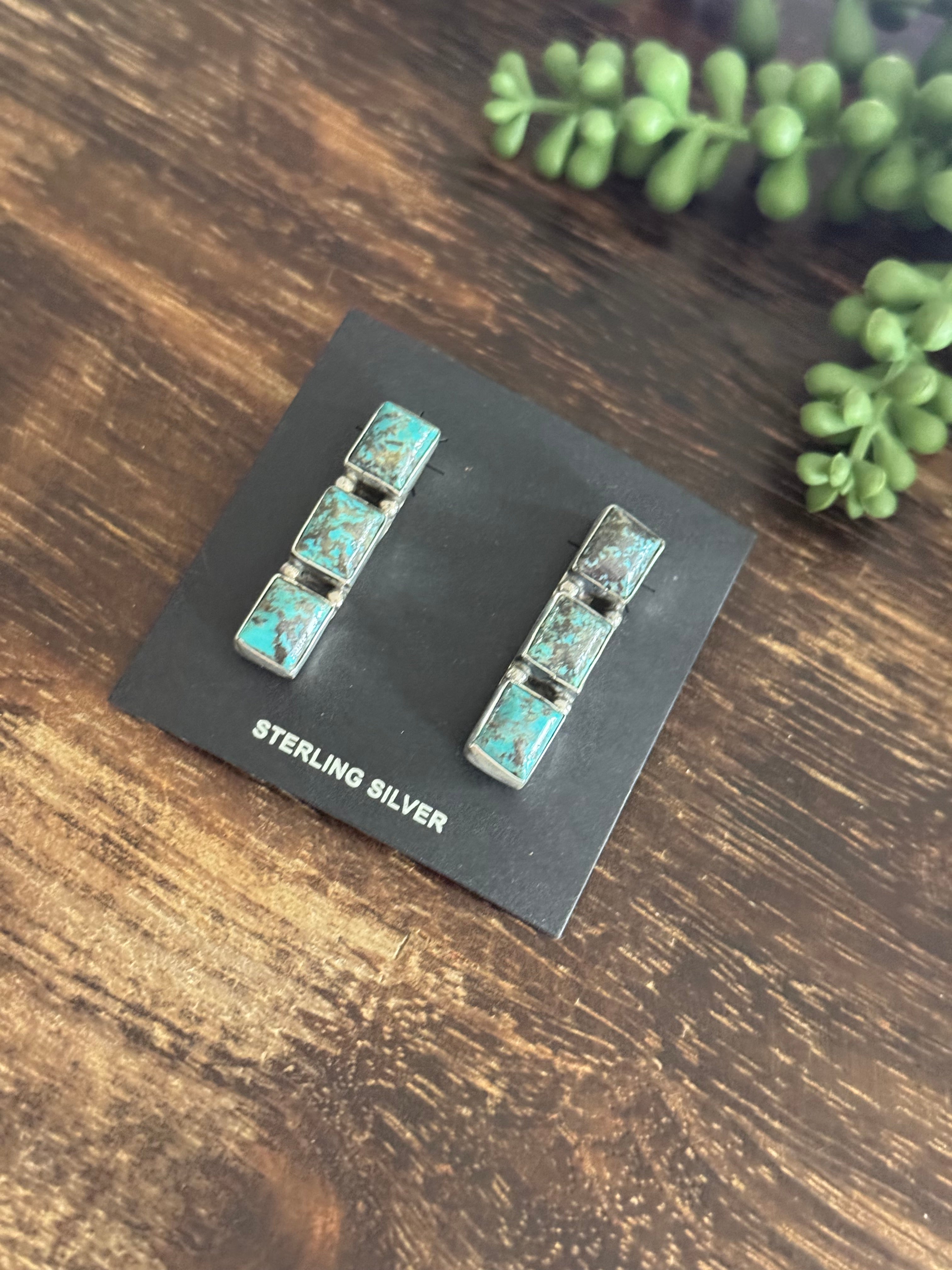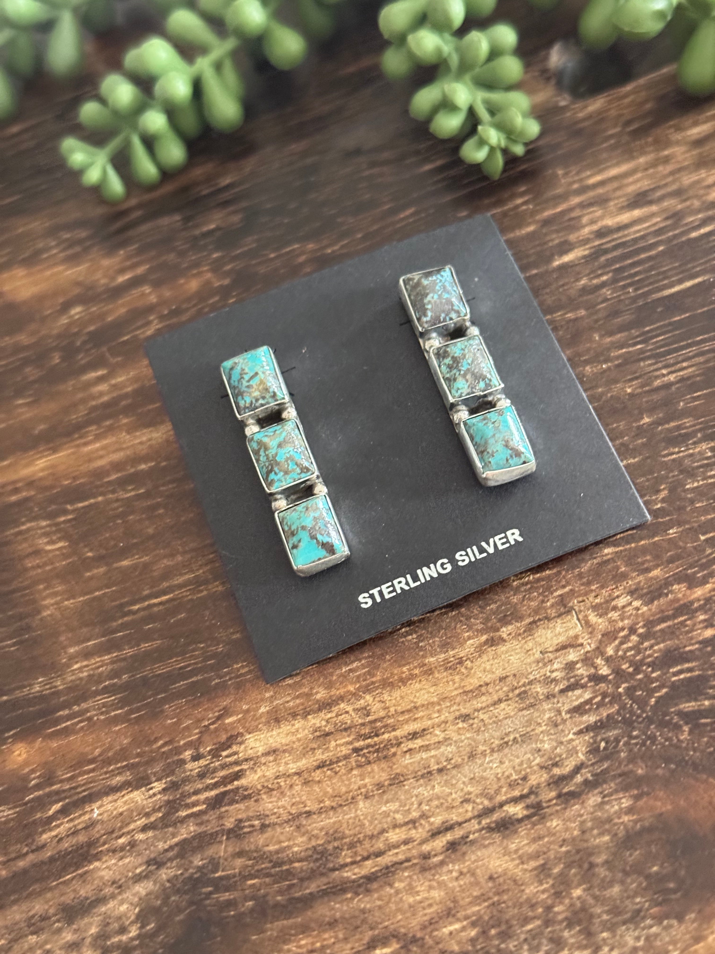 Navajo Made Red Skin Turquoise & Sterling Silver Post Dangle Cluster Earrings. It measures 1 3/8 inches long and 3/8 of an inch wide. Signed by artist and stamped sterling silver. Thank you for checking out my store, if you have any questions please contact me!!