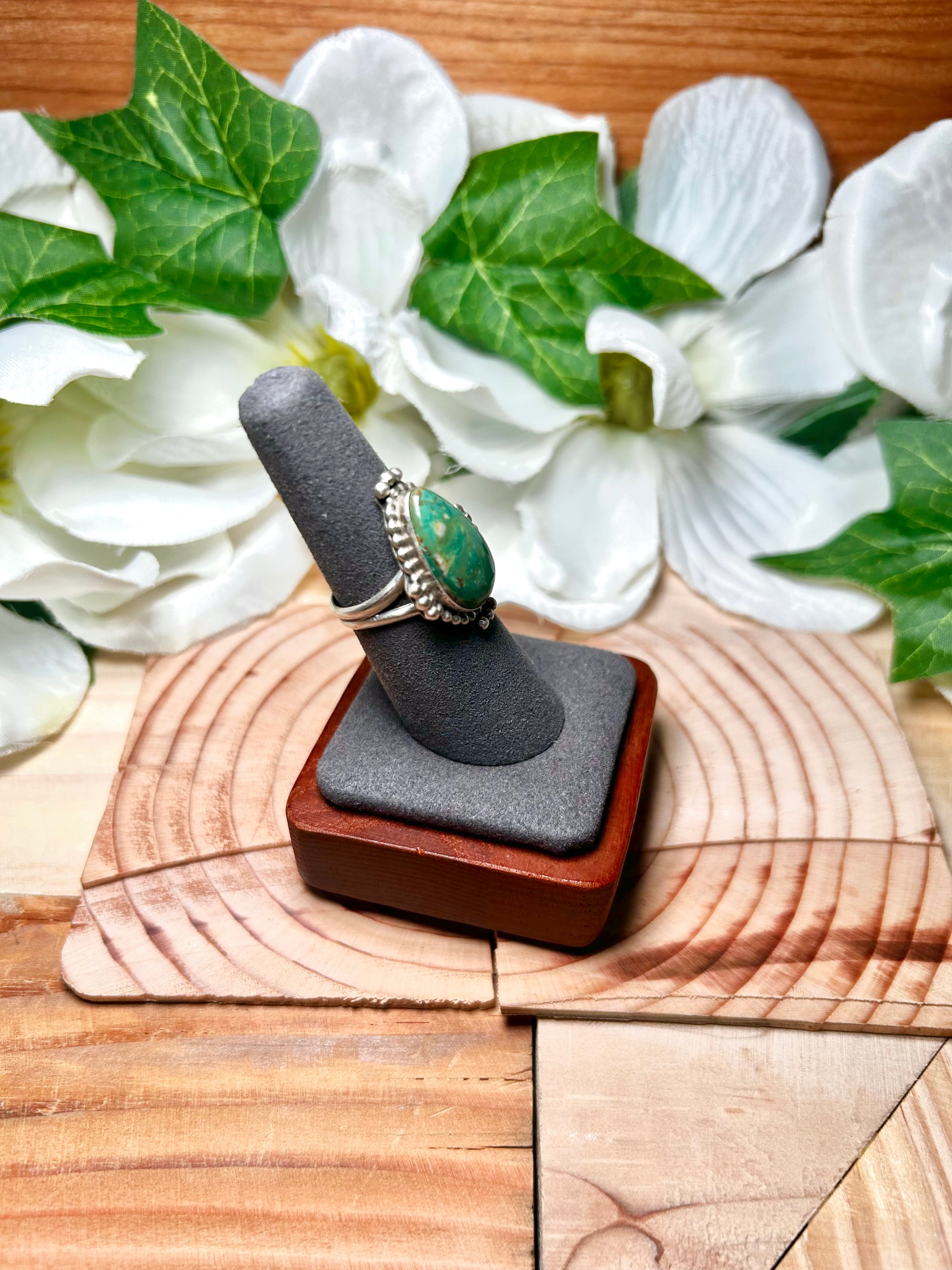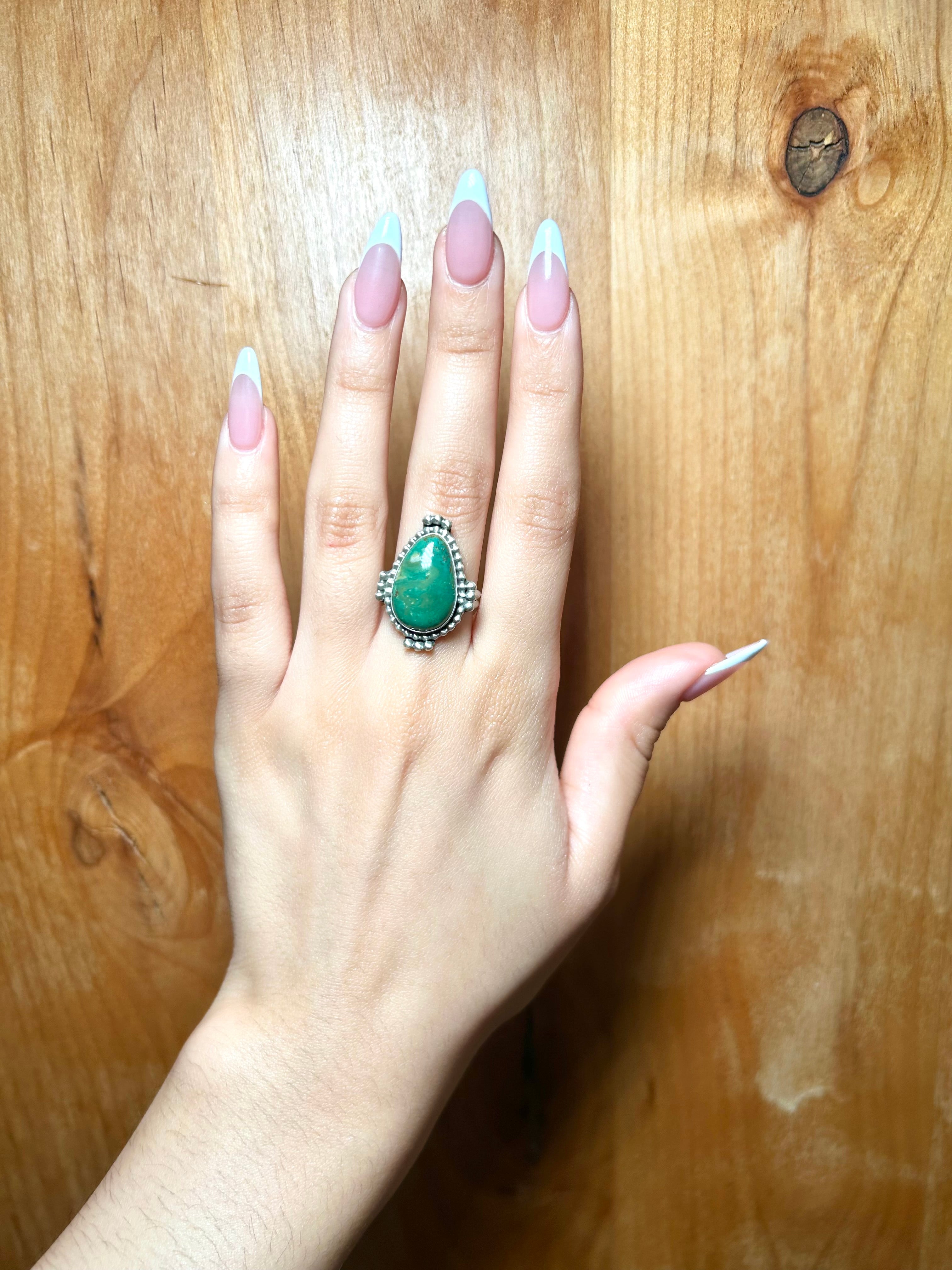 Navajo Made Sonoran Mountain Turquoise & Sterling Silver Ring Size 7.25