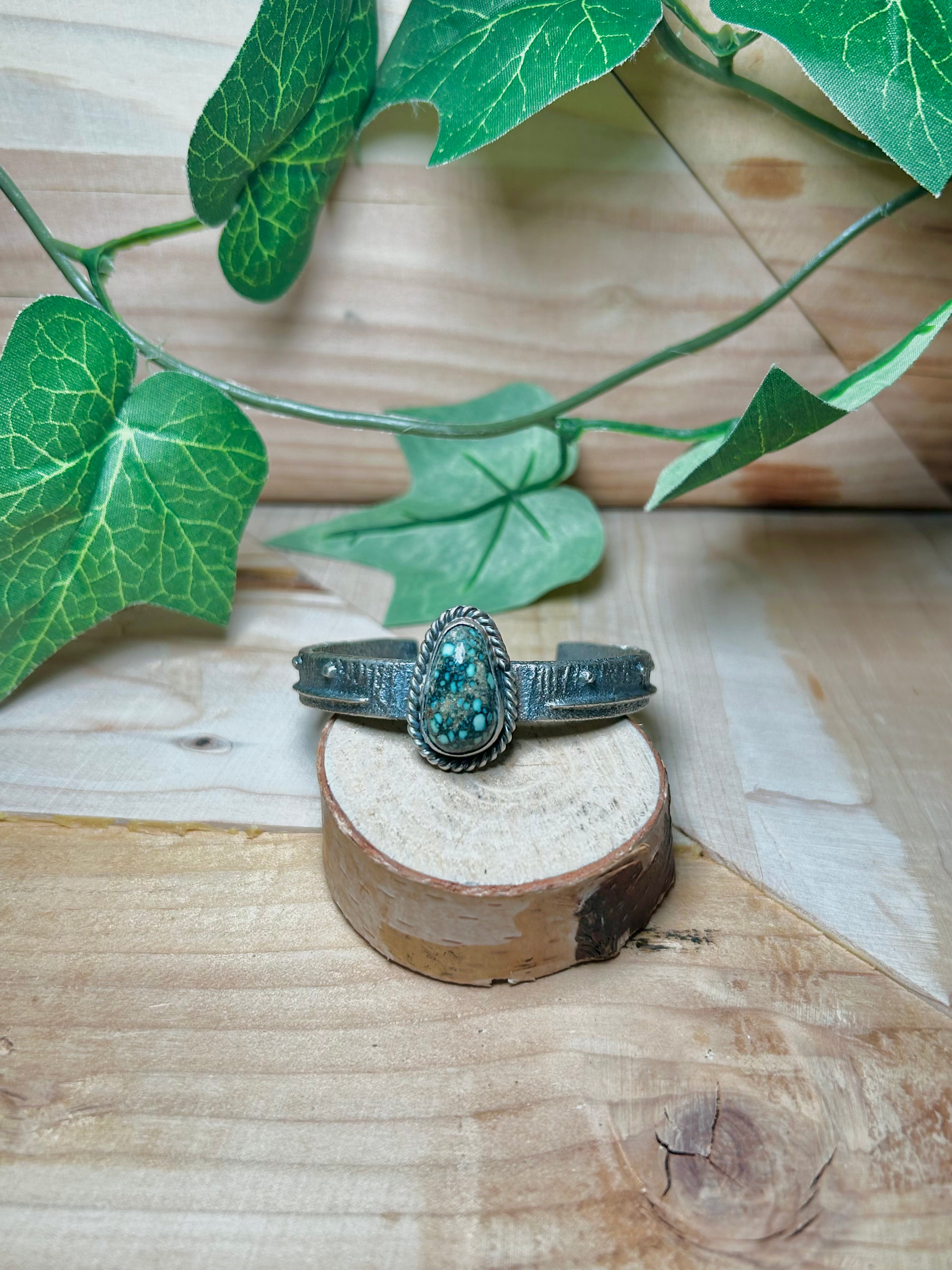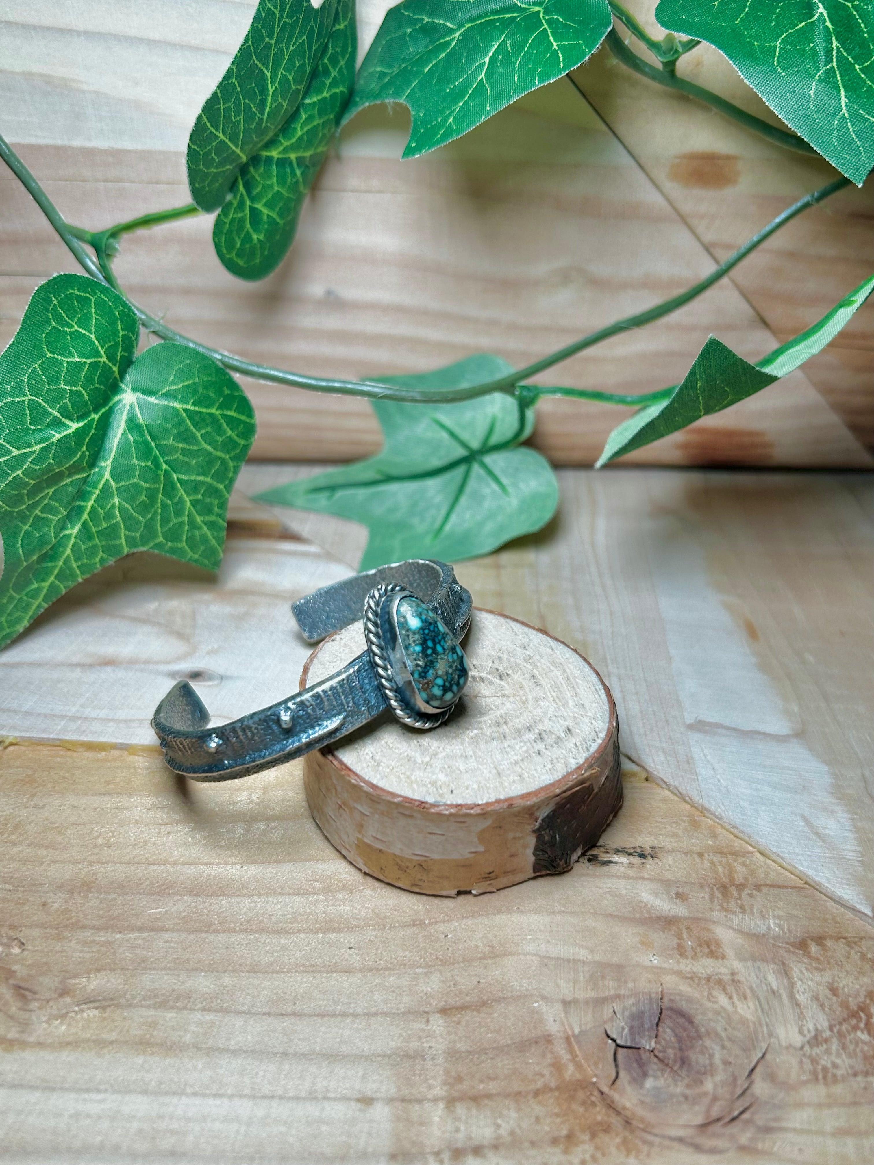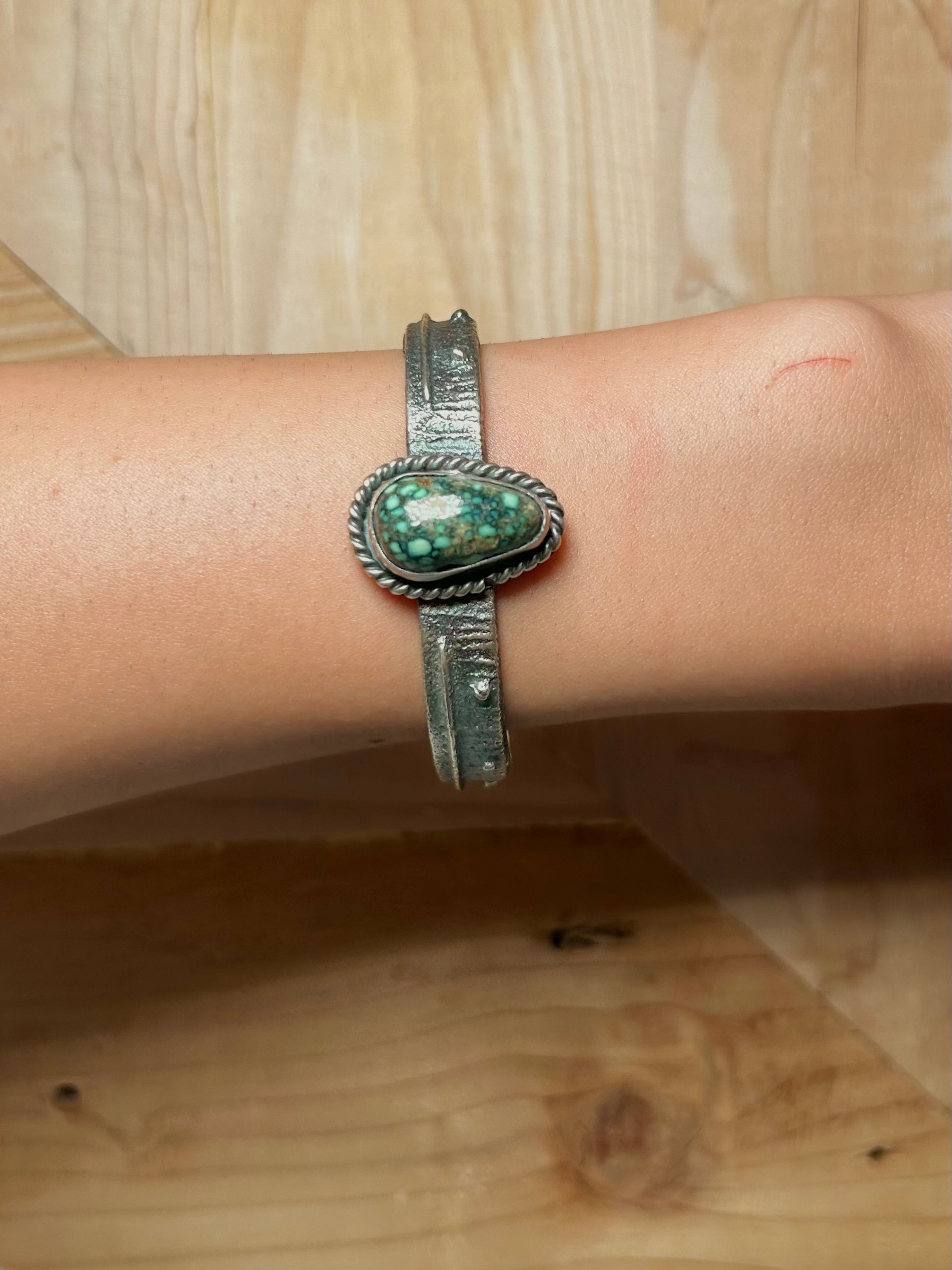 Navajo Made New Lander Varicsite Tufa Cast & Sterling Silver Cuff Bracelet