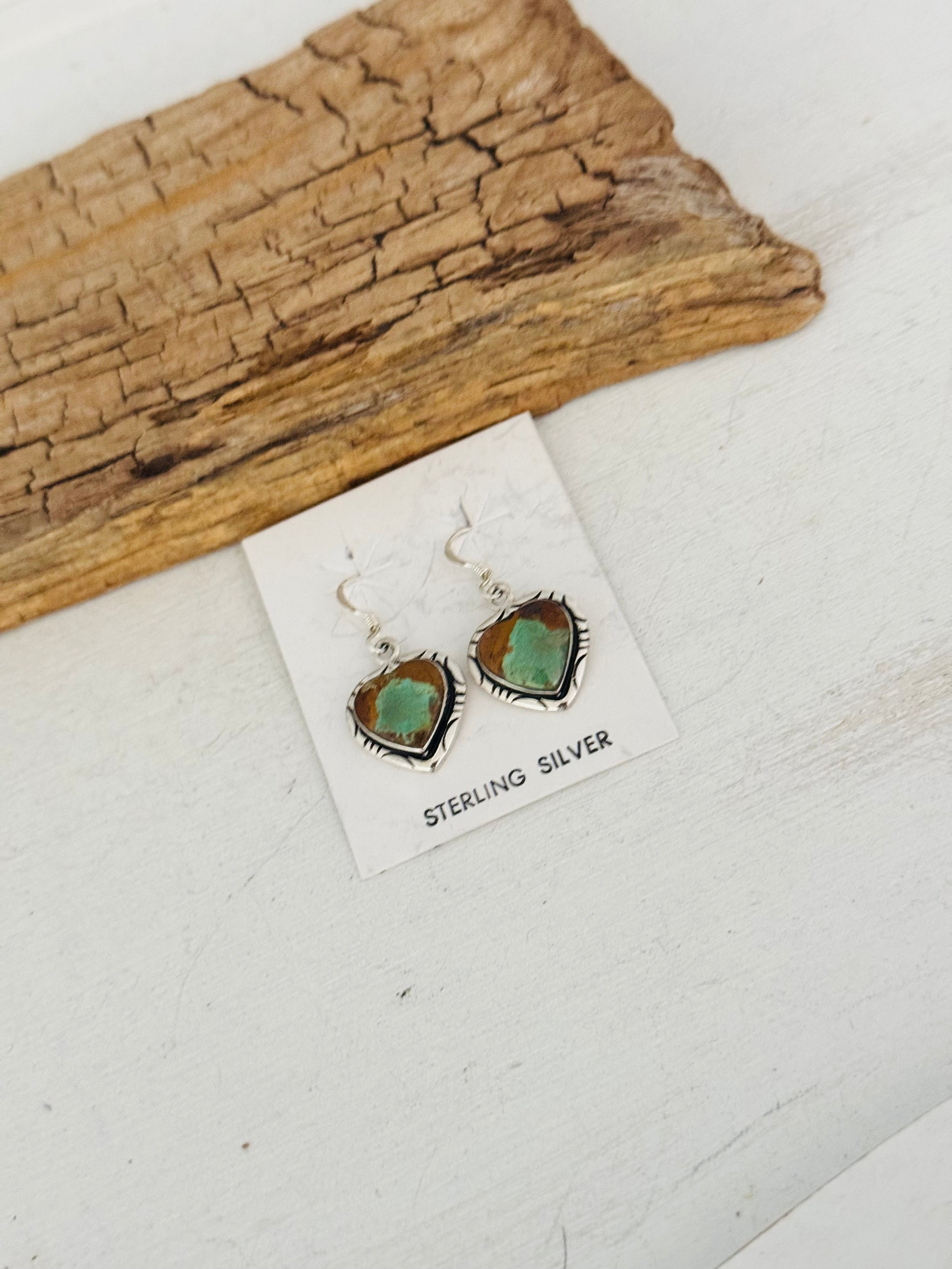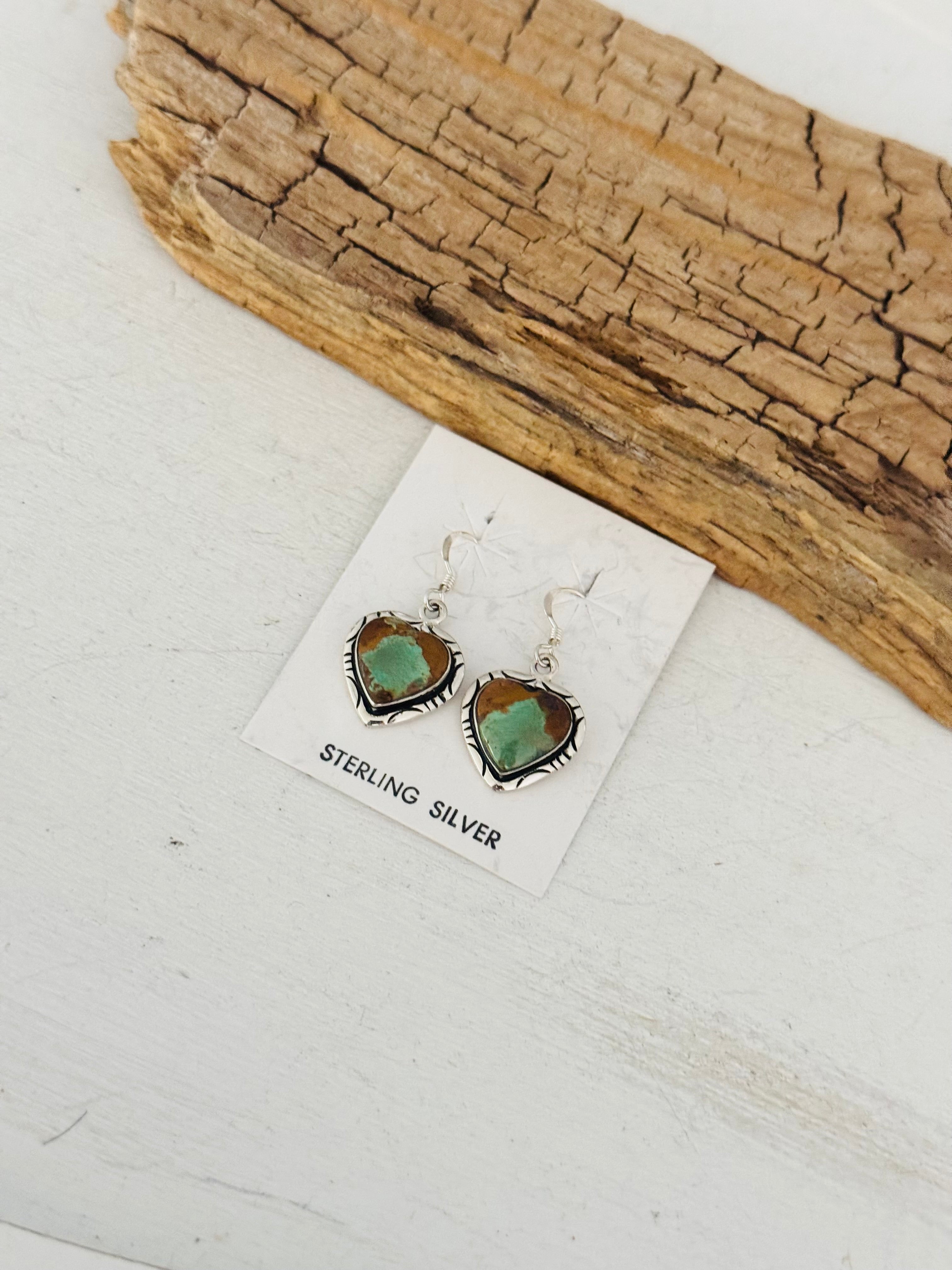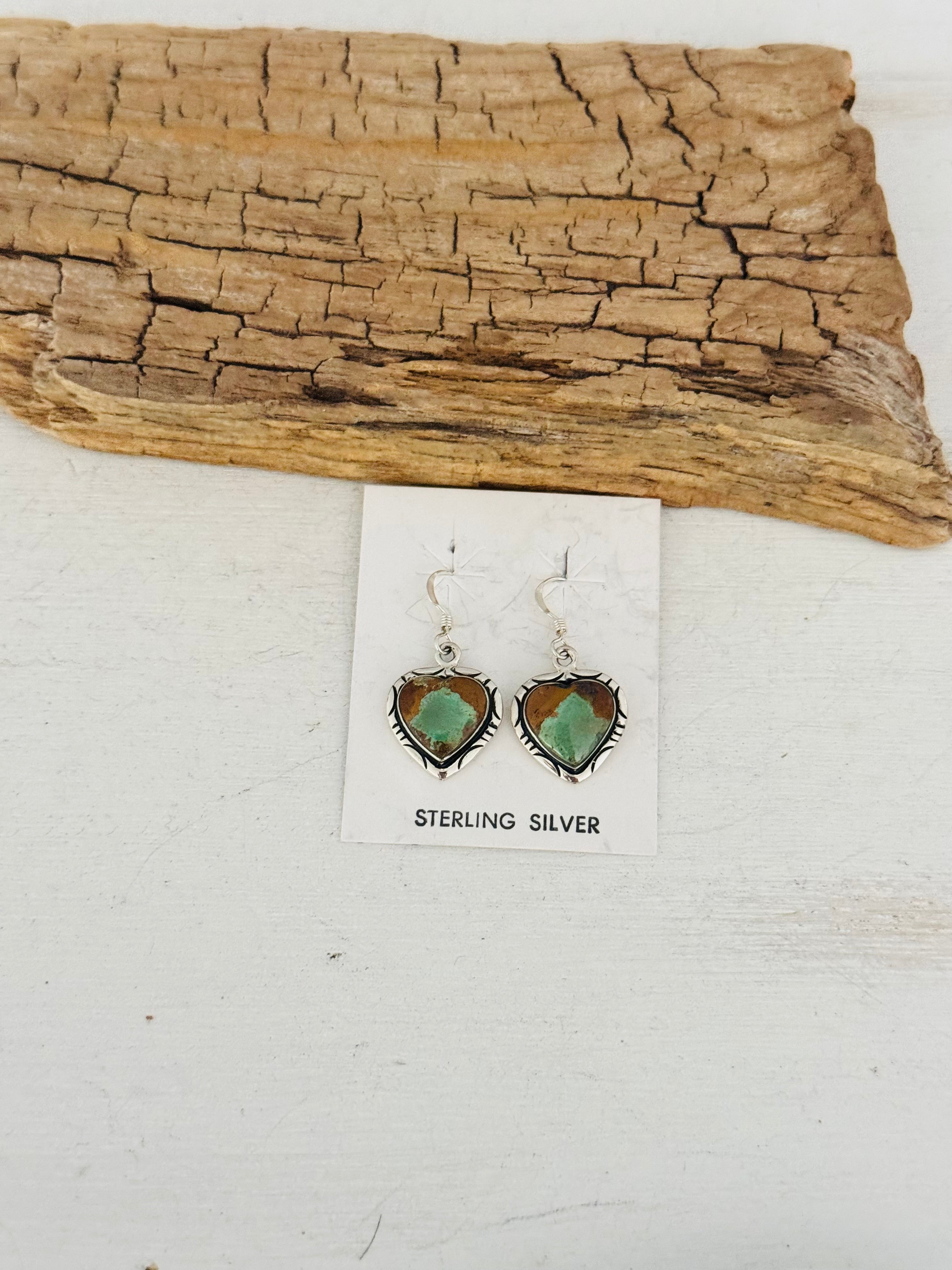 Navajo Made Royston Turquoise & Sterling Silver Dangle Heart Earrings