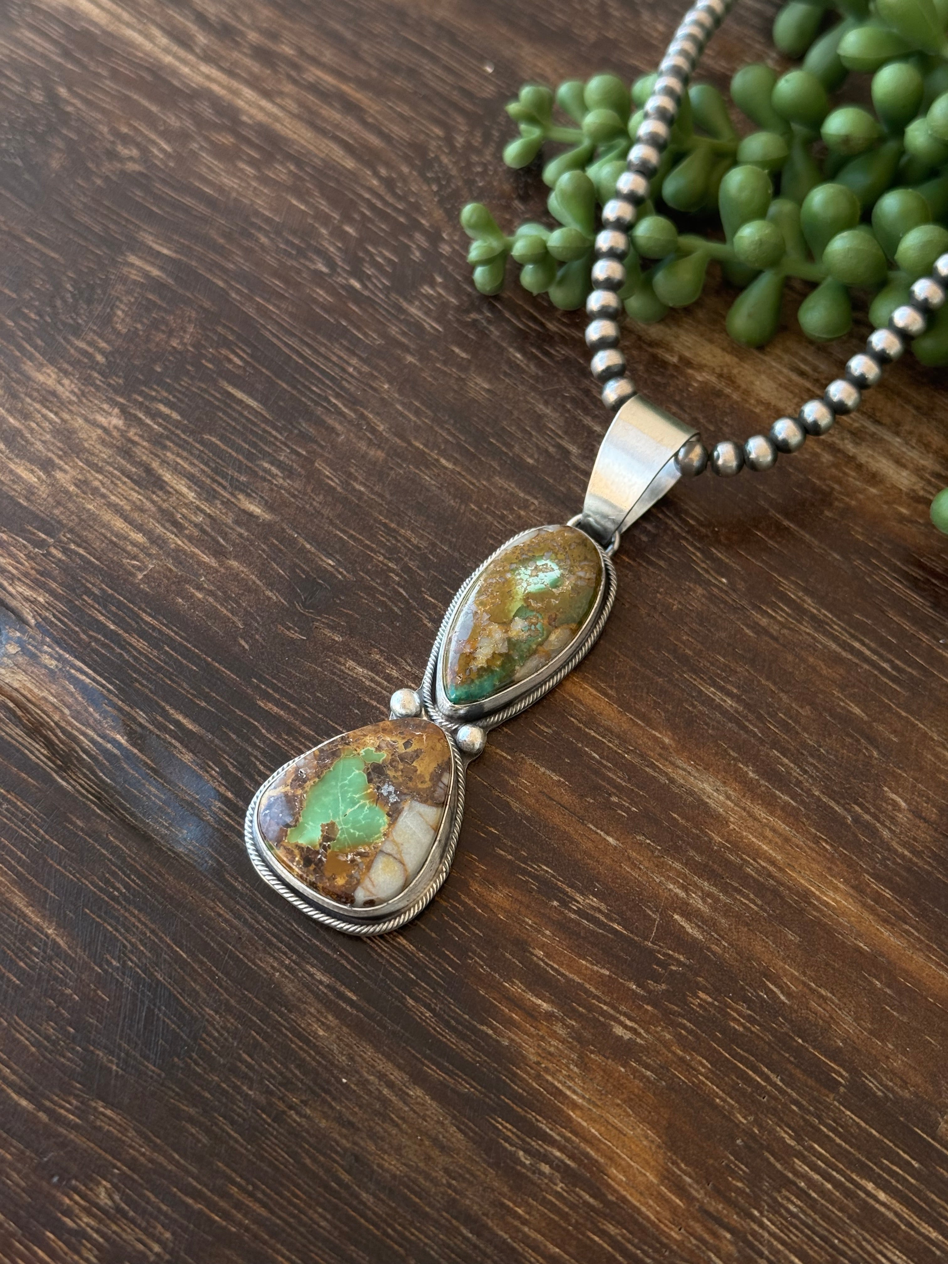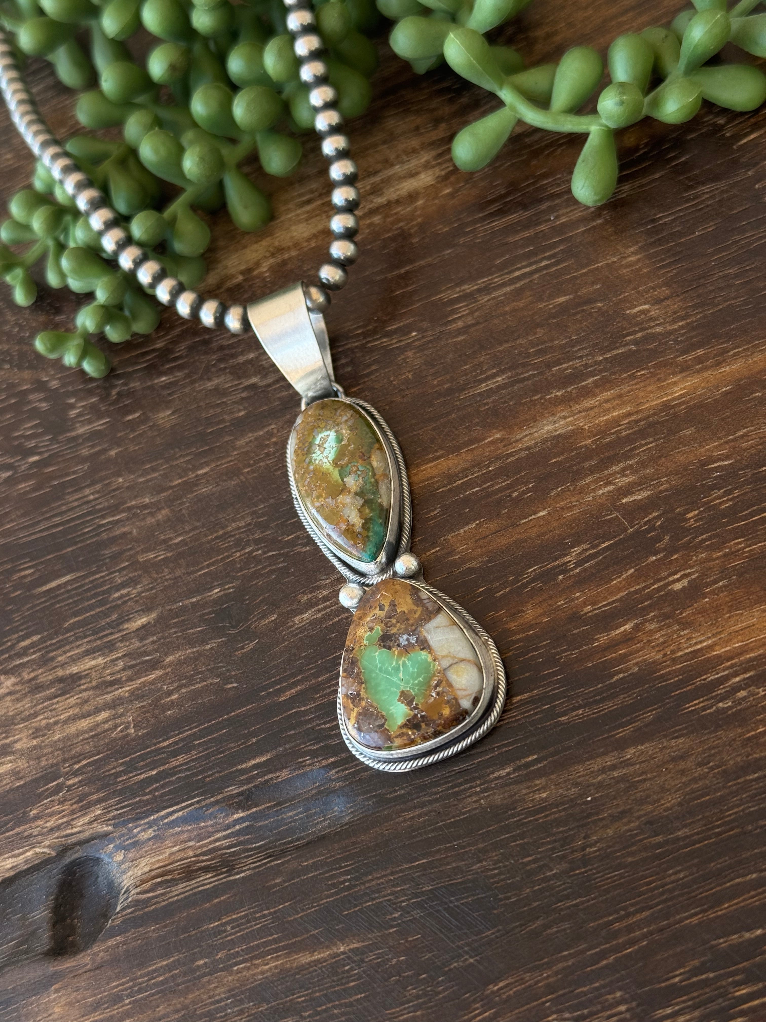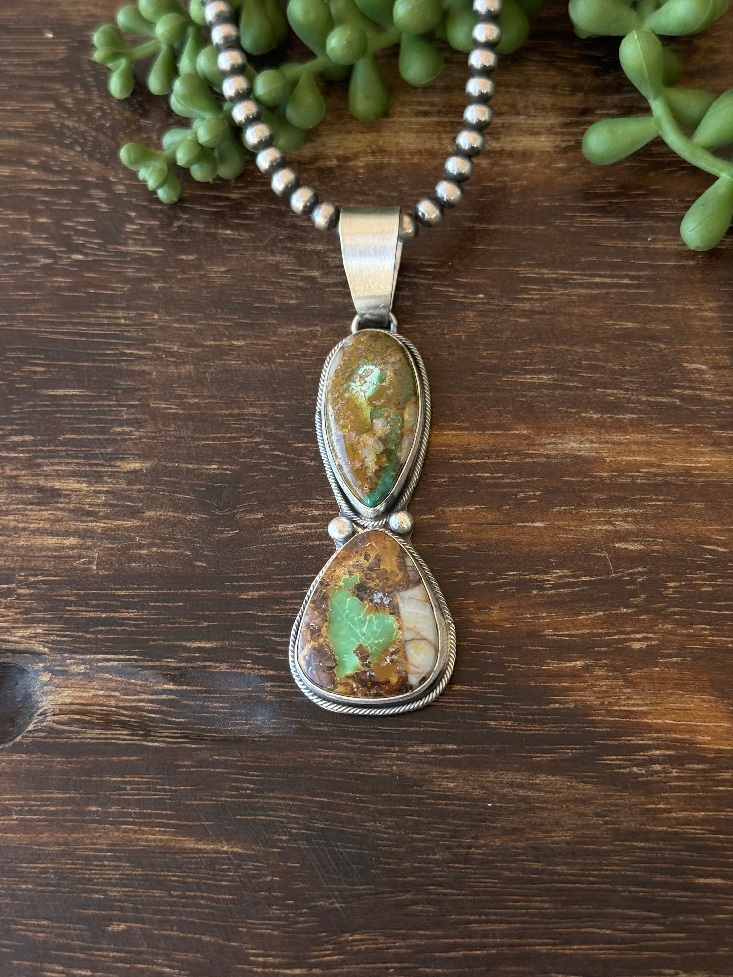Navajo Made Ribbon Royston Turquoise & Sterling Silver Pendant