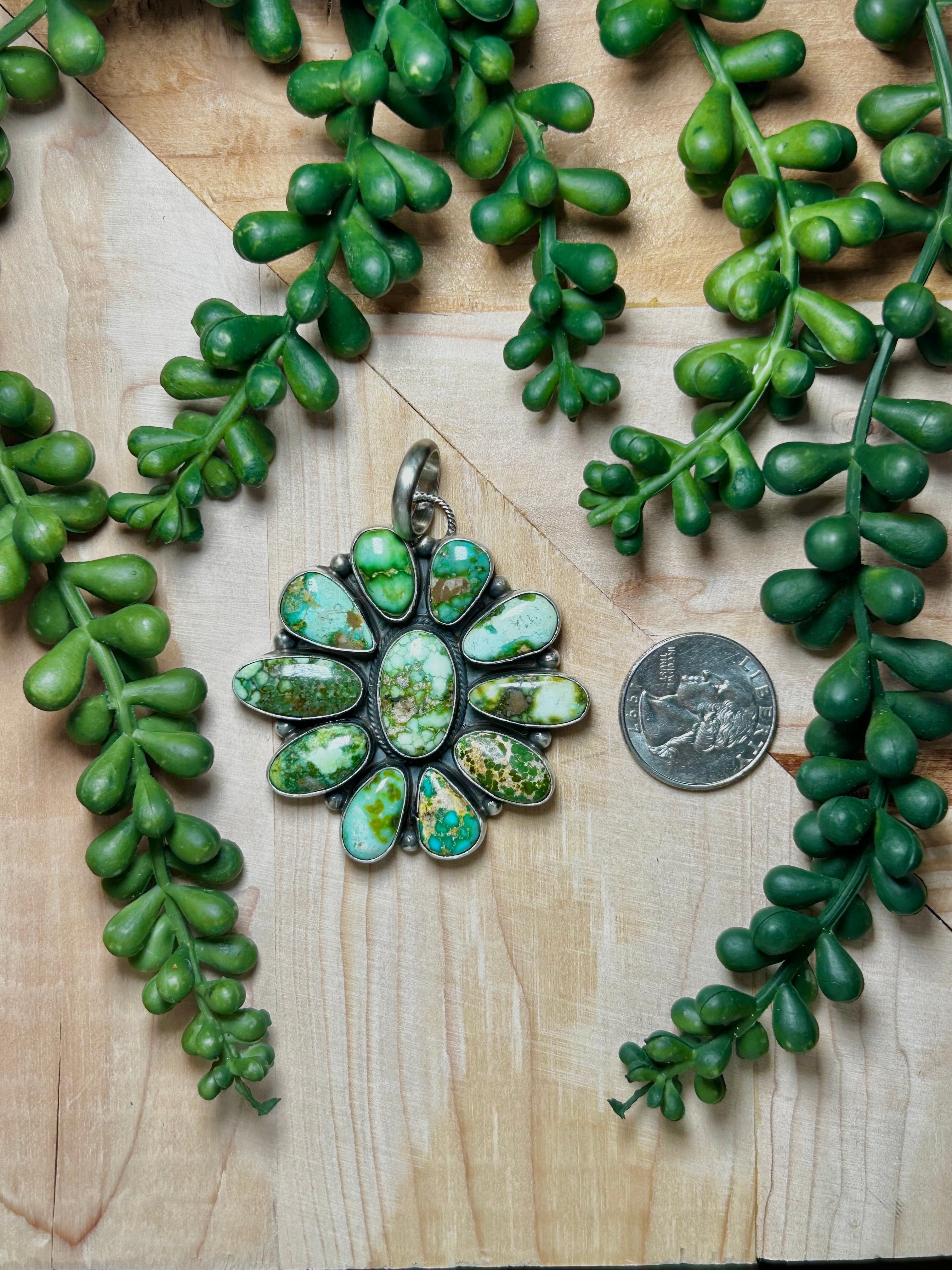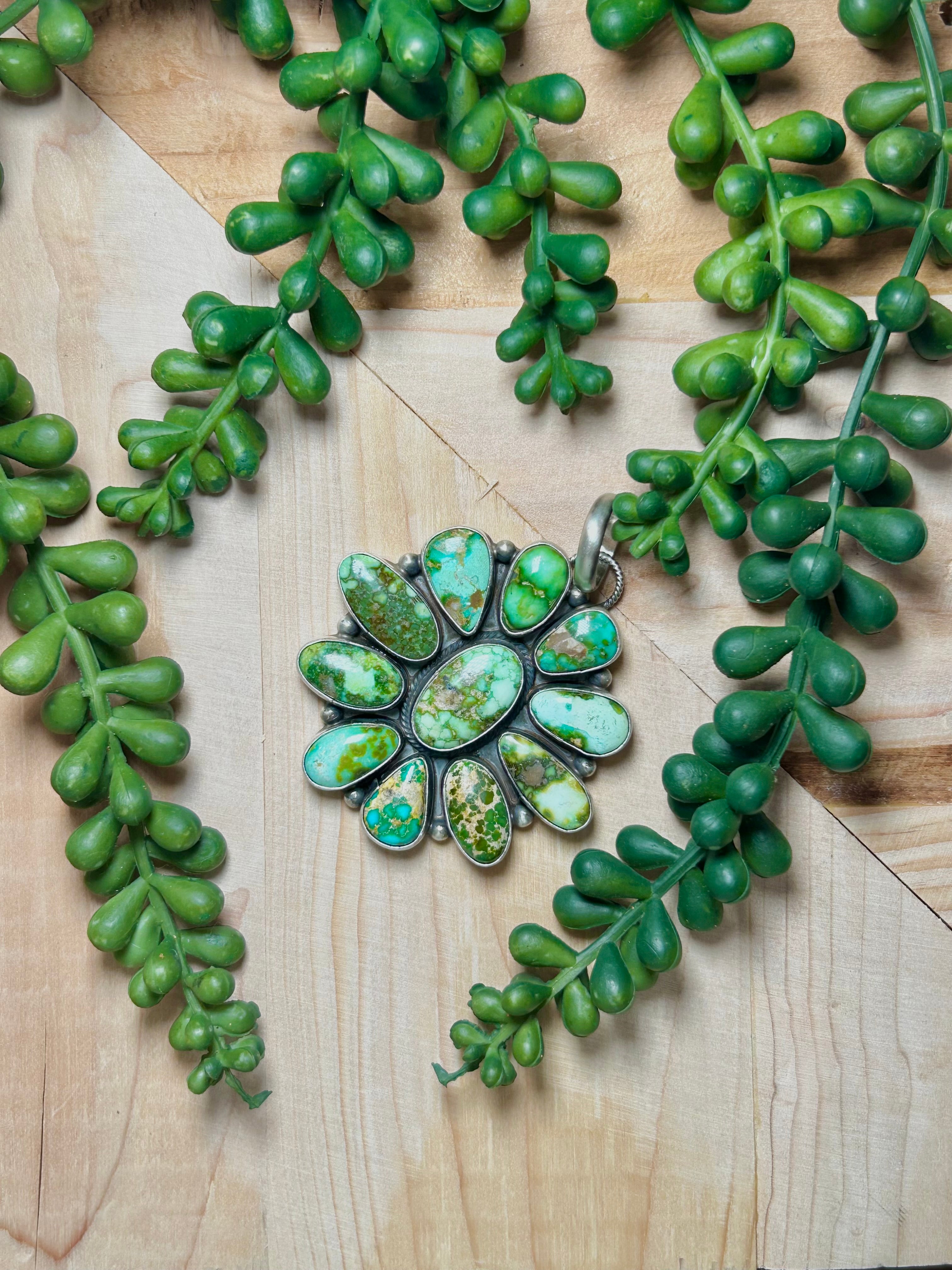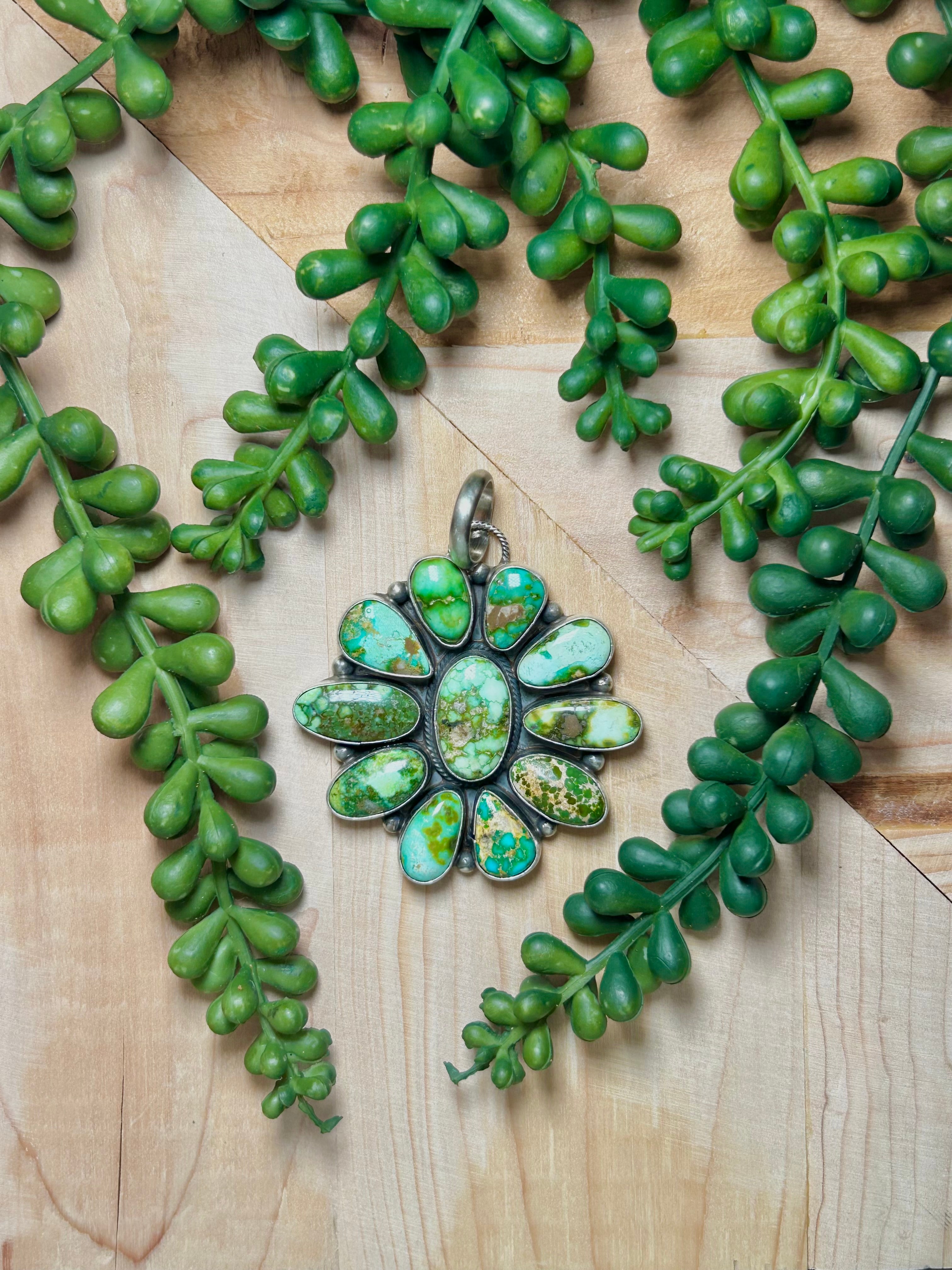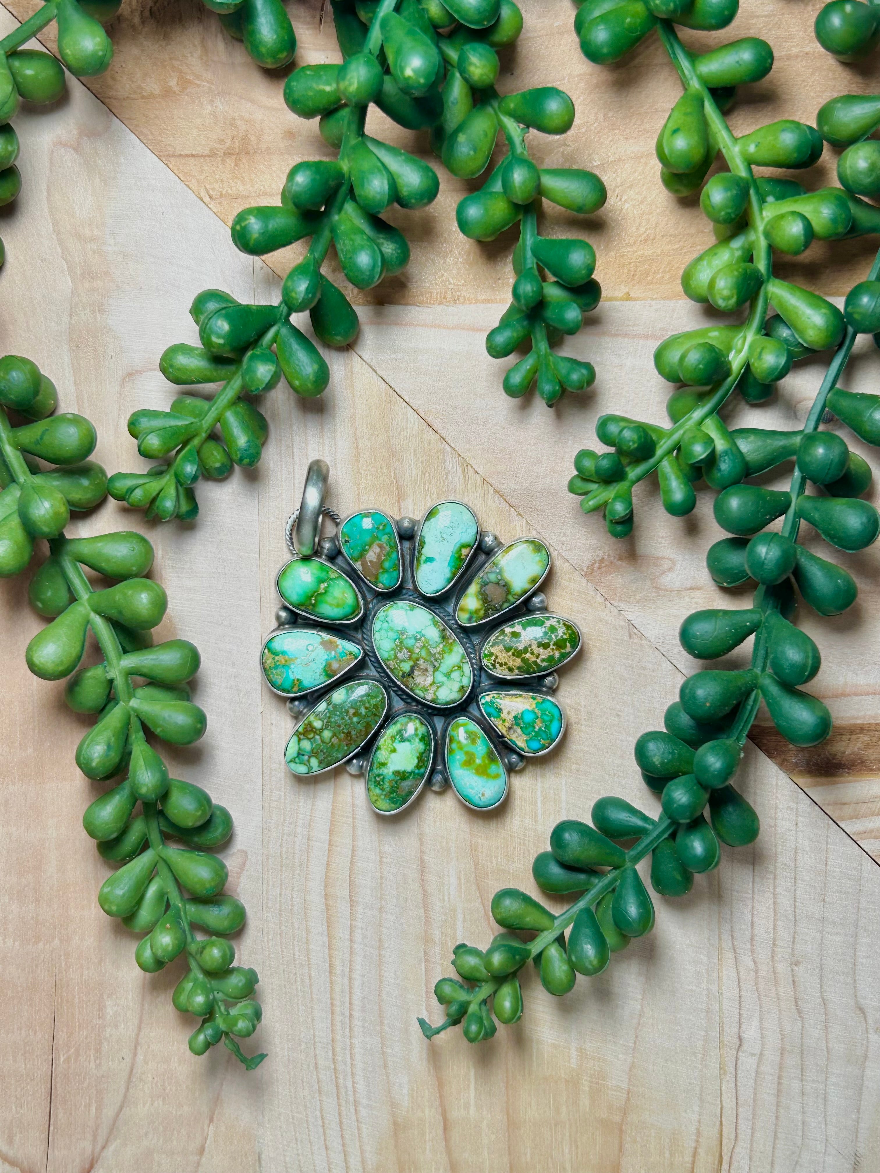 Anderson Largo Sonoran Gold & Sterling Silver Cluster Pendant. It measures 2 5/8 inches long and 2 1/8 inches wide. Pendant Only. Signed by the artist and stamped sterling silver.