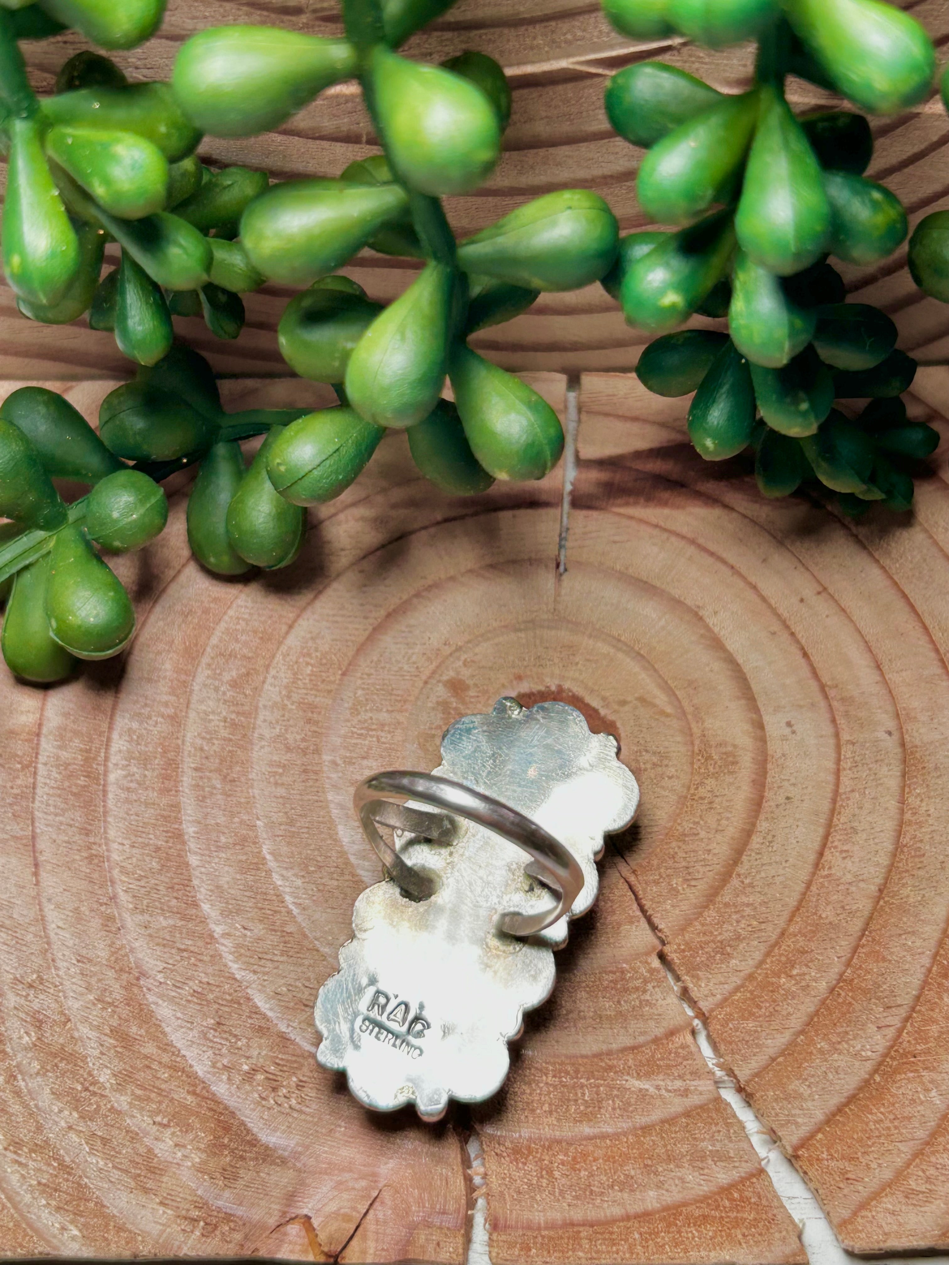 Navajo Made Rose Dahlia & Sterling Sliver Ring Size 8.5