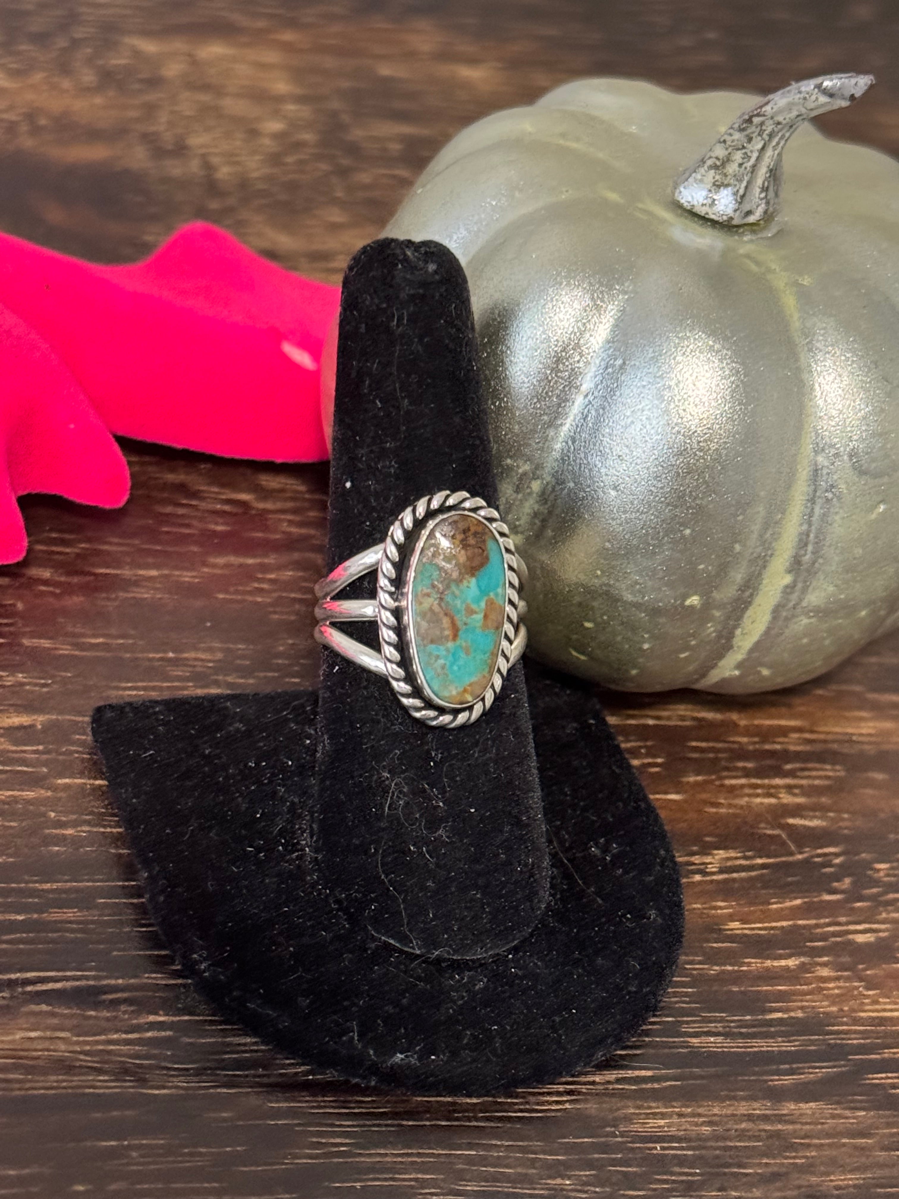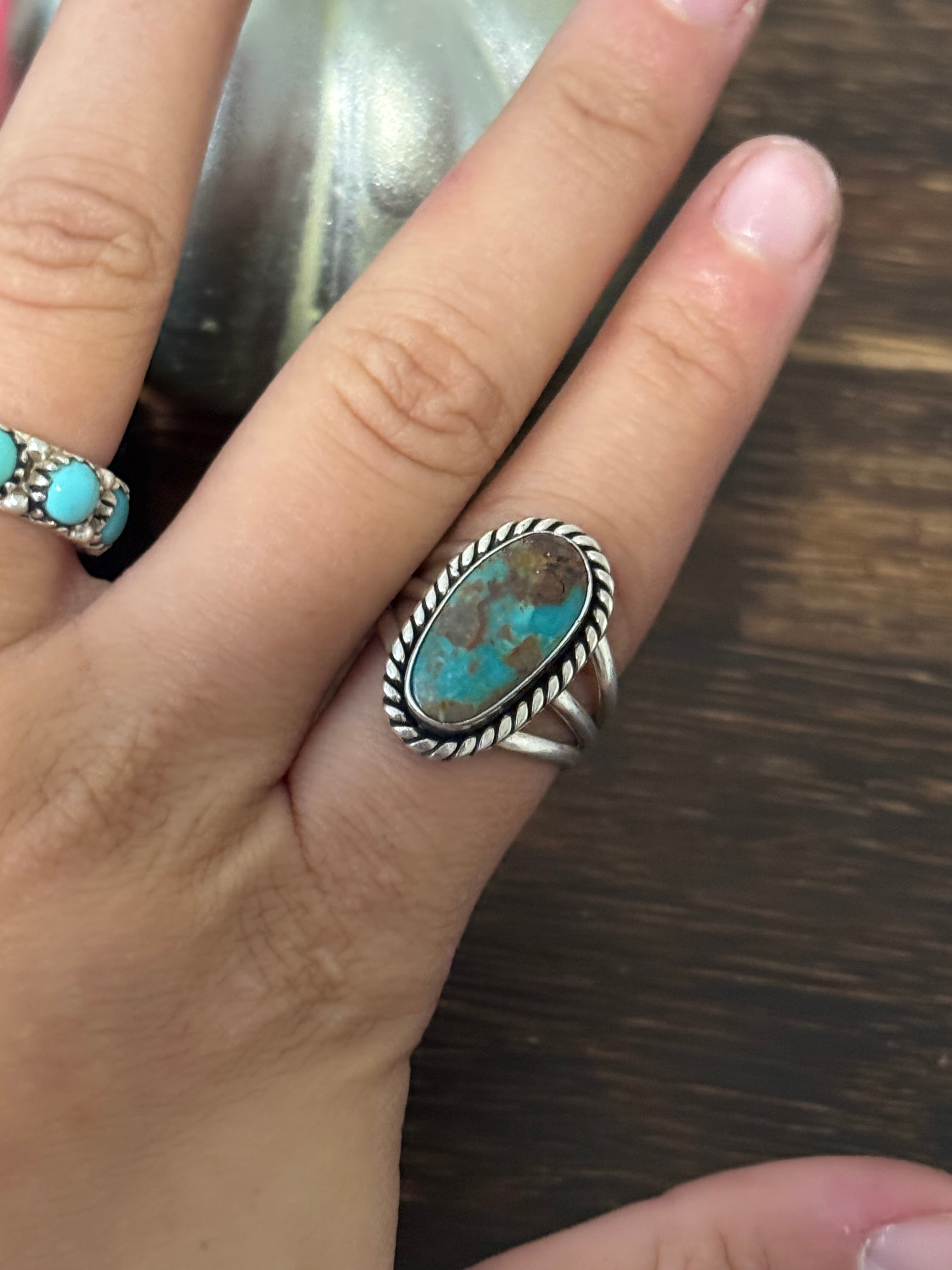Navajo Made Royston Turquoise and Sterling Silver Ring Size 8.5