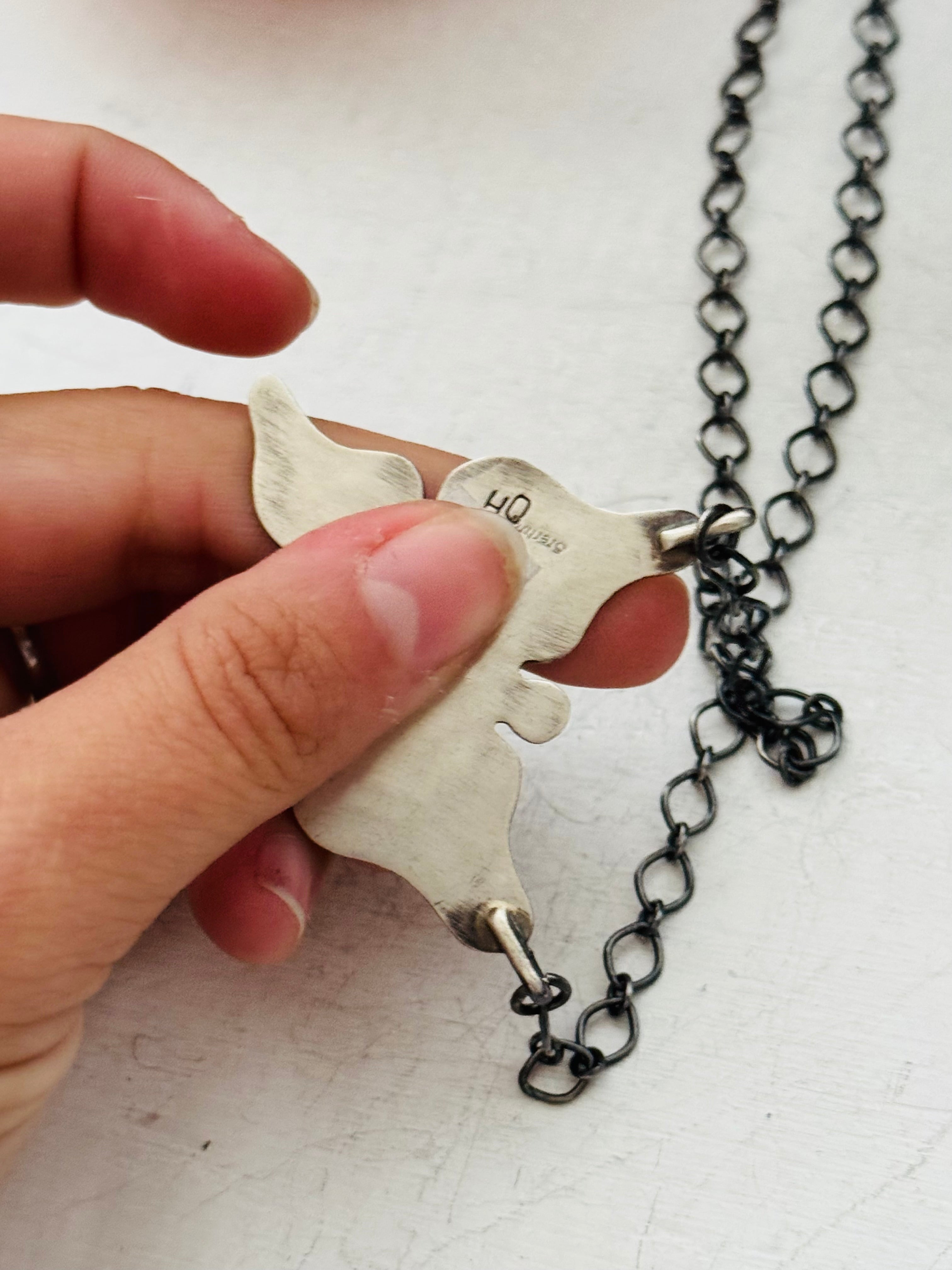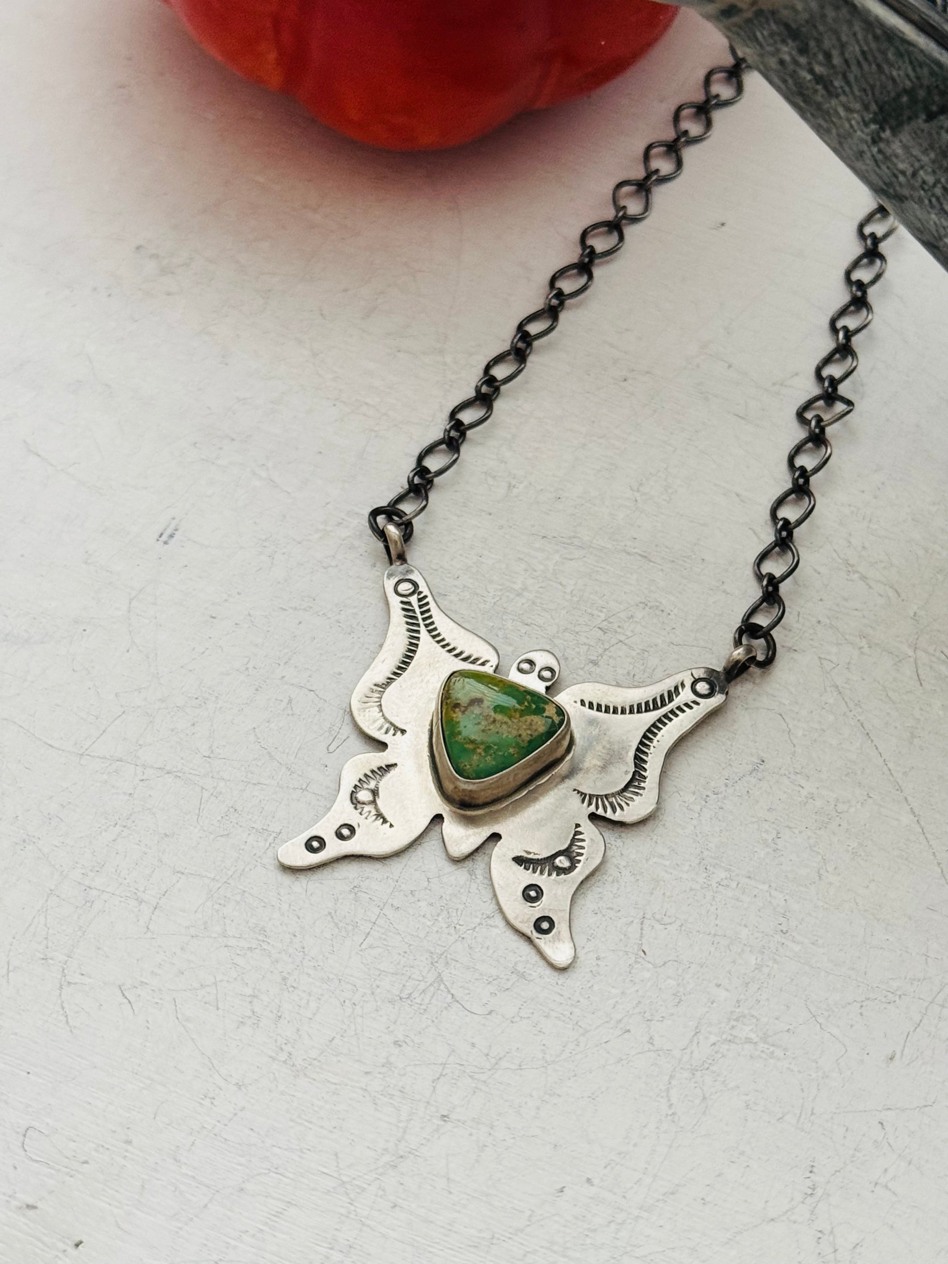 Navajo Made Royston Turquoise & Sterling Silver Butterfly Necklace