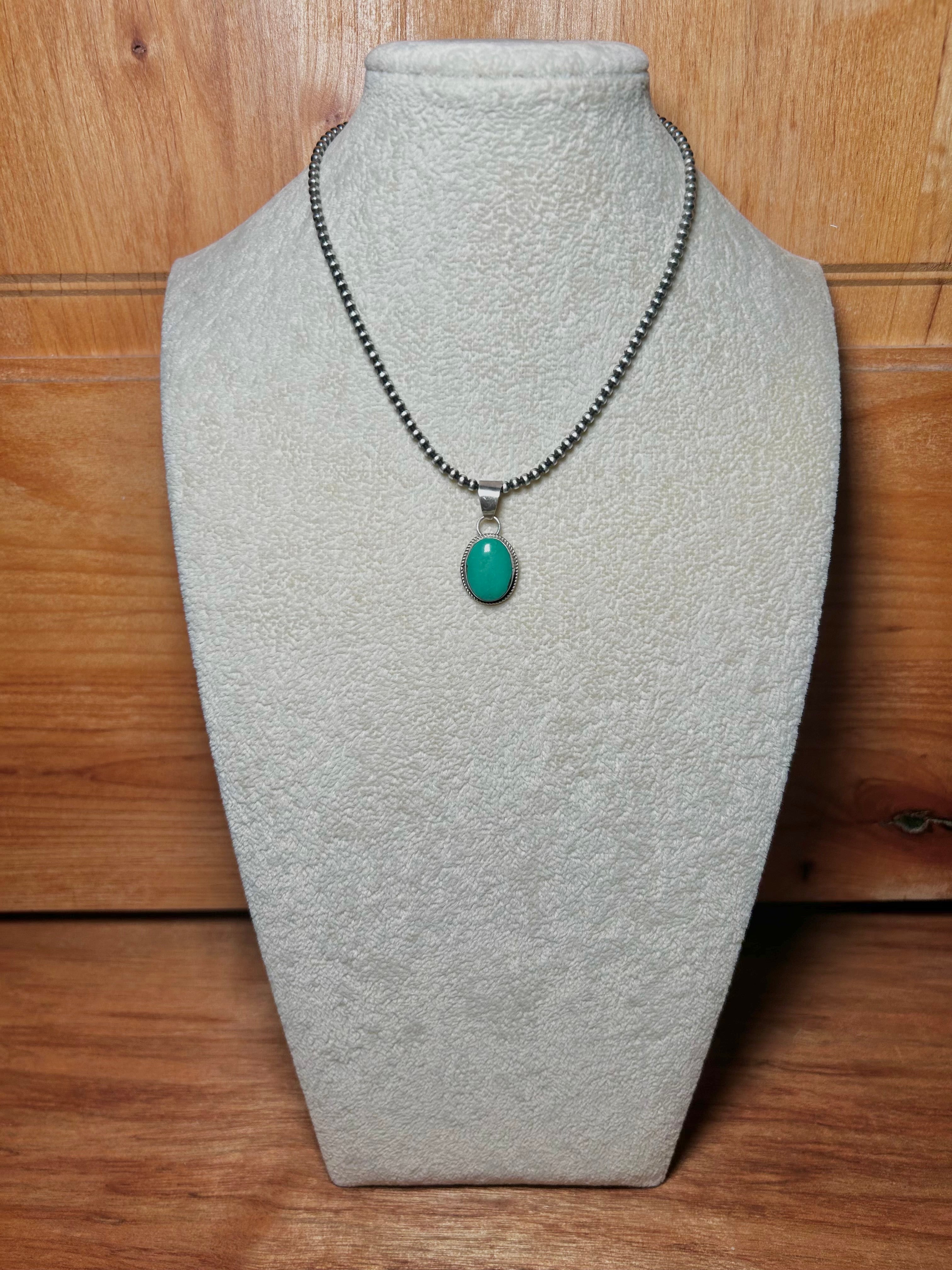 Navajo Made Hubei Turquoise & Sterling Silver Pendant