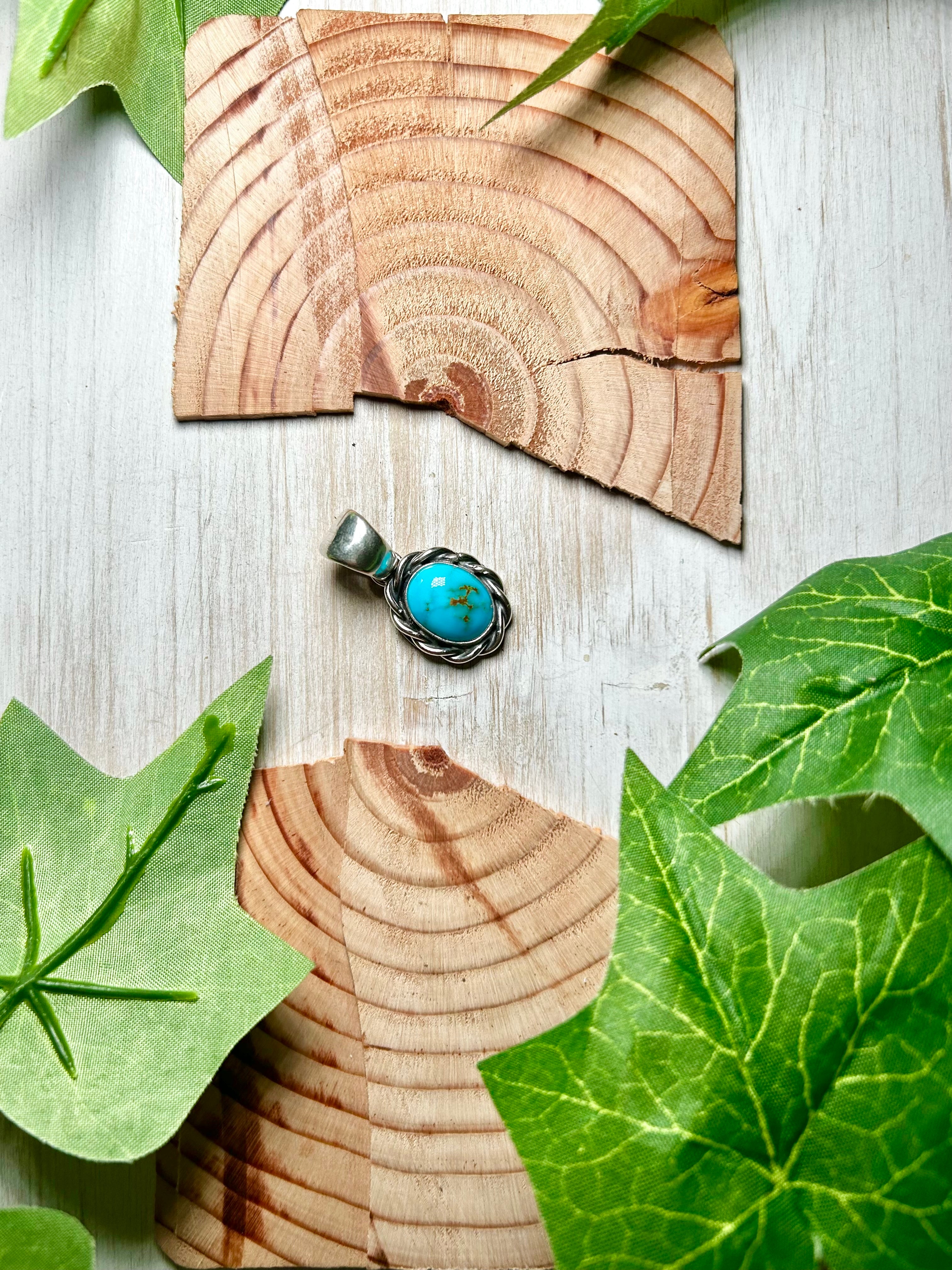 Navajo Made Kingman Turquoise & Sterling Silver Pendant
