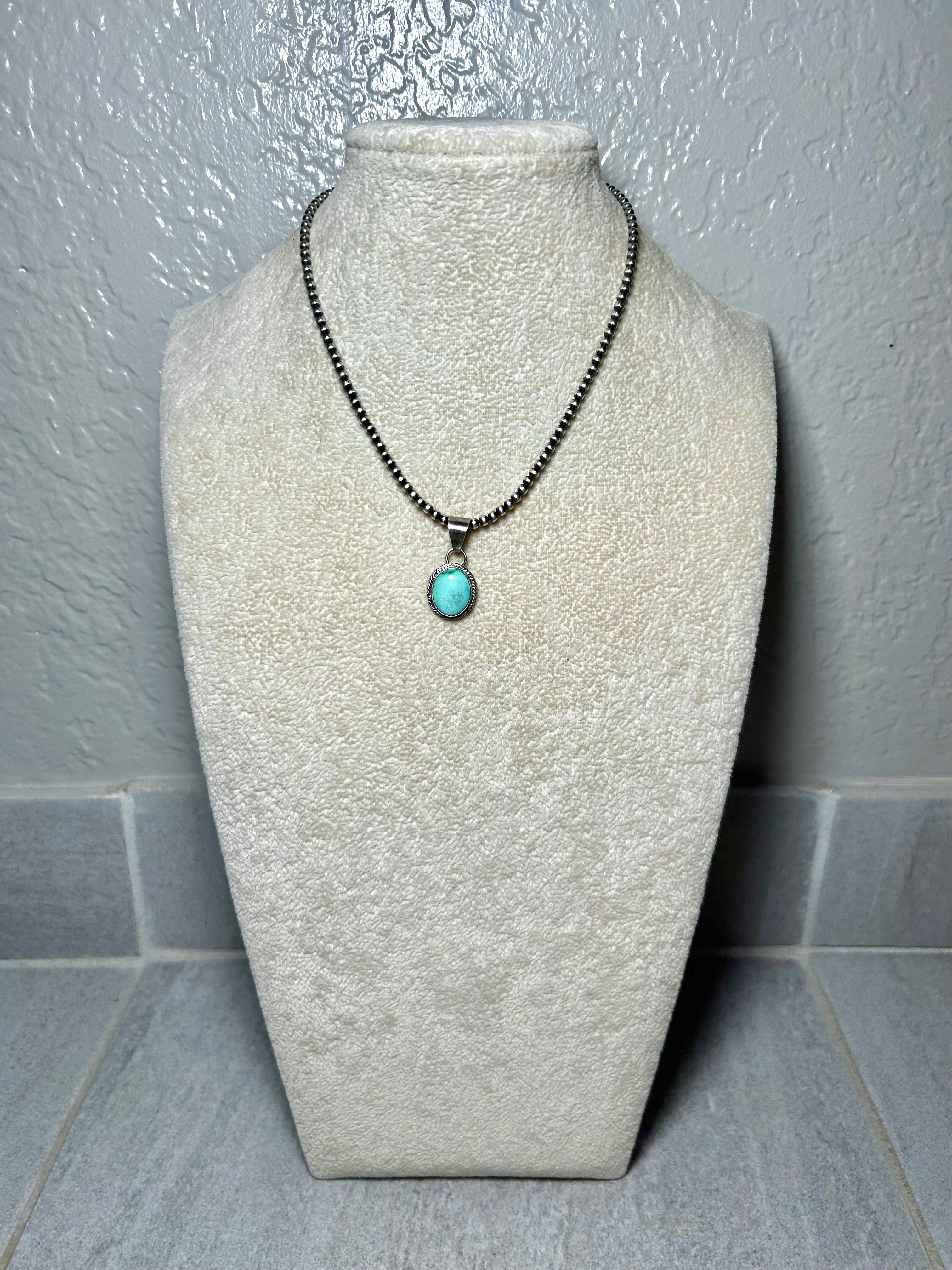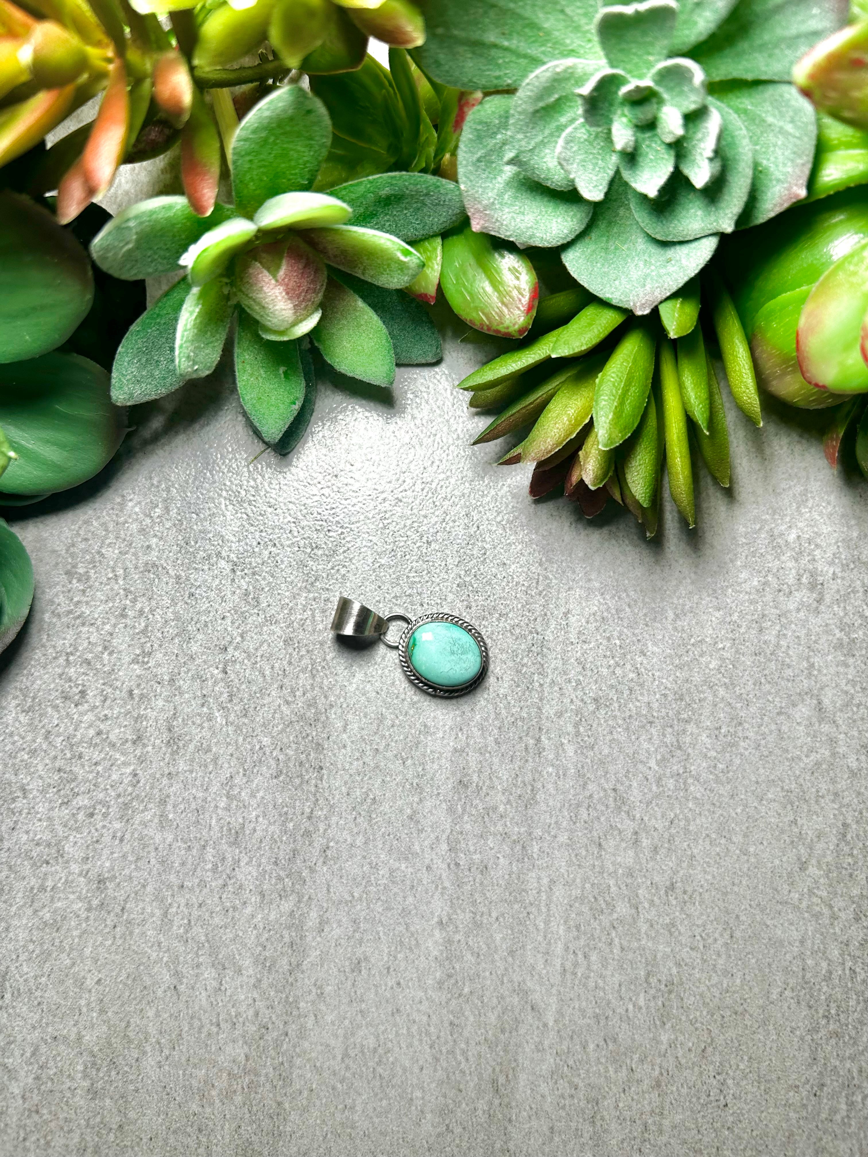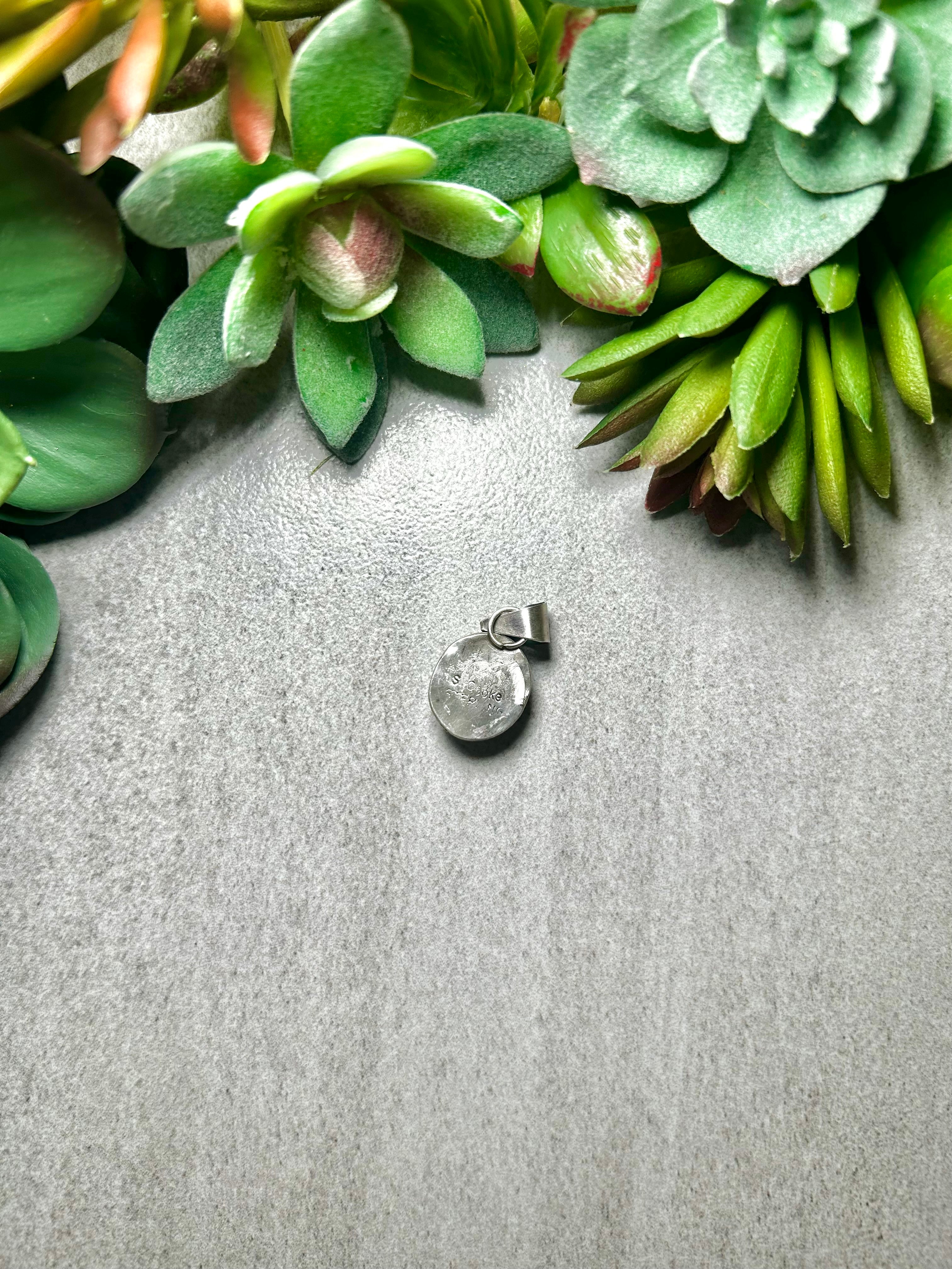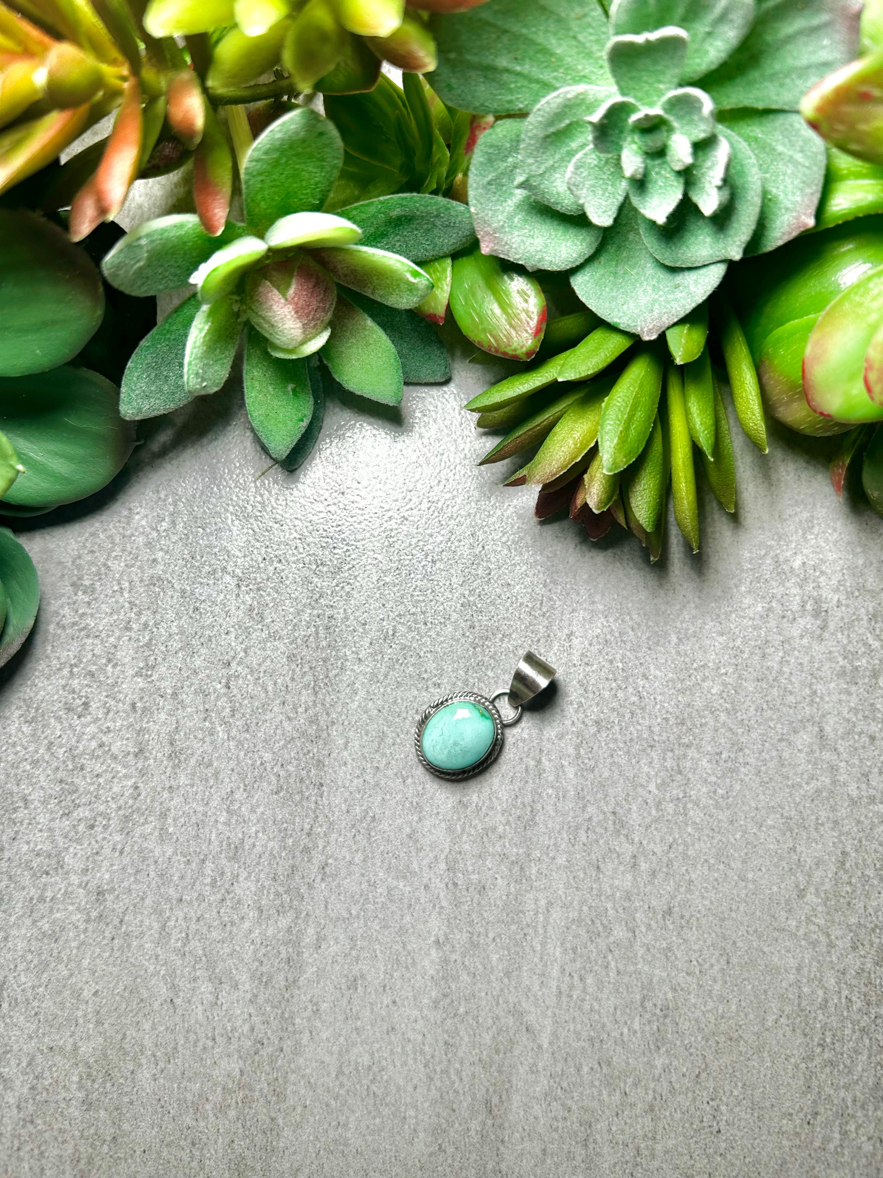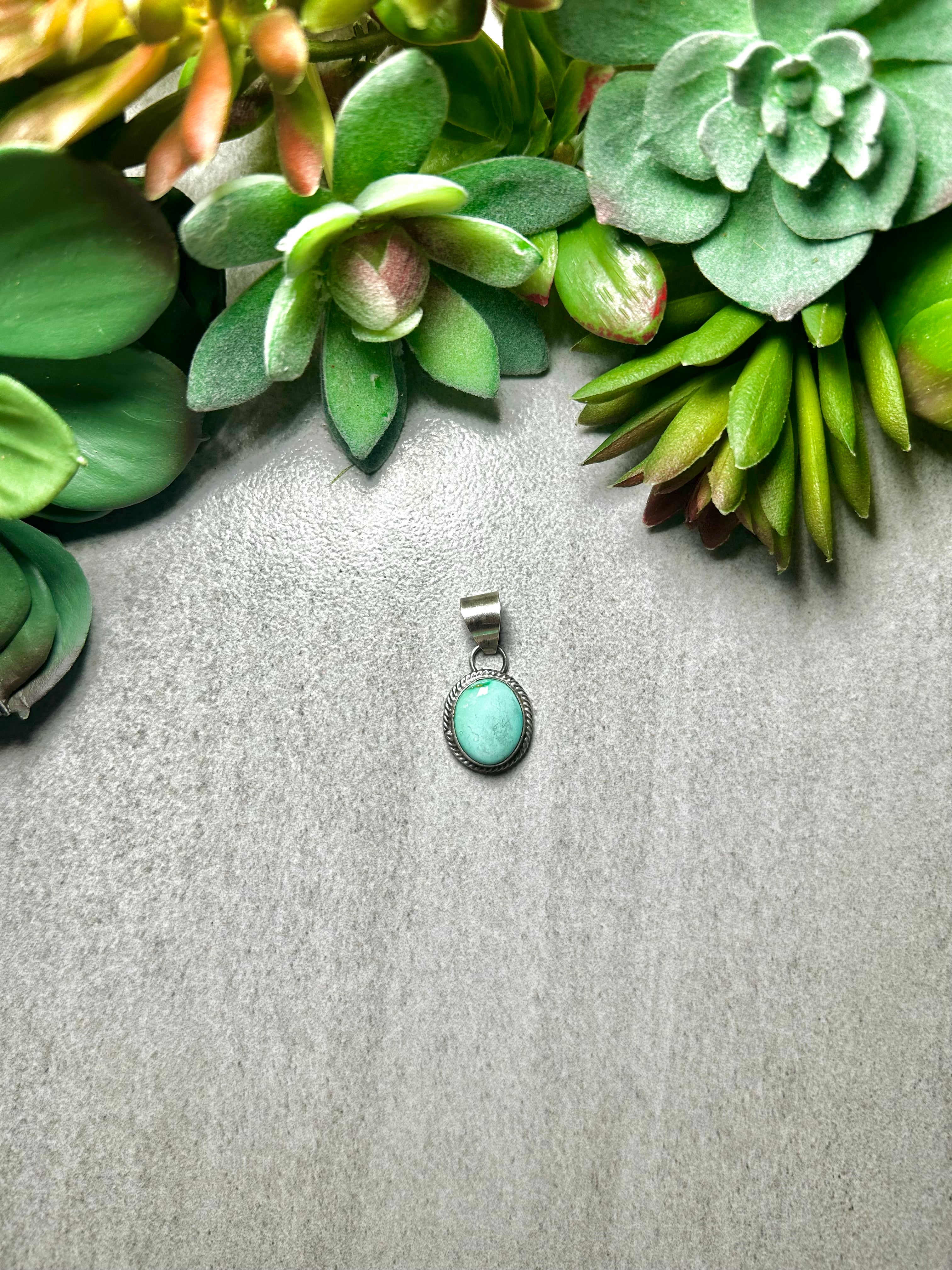 Navajo Made Sonoran Gold Turquoise & Sterling Silver Pendant. It measures 1 1/8 inches long and 5/8 of an inch wide. Pendant Only! Signed by the artist and stamped sterling silver.