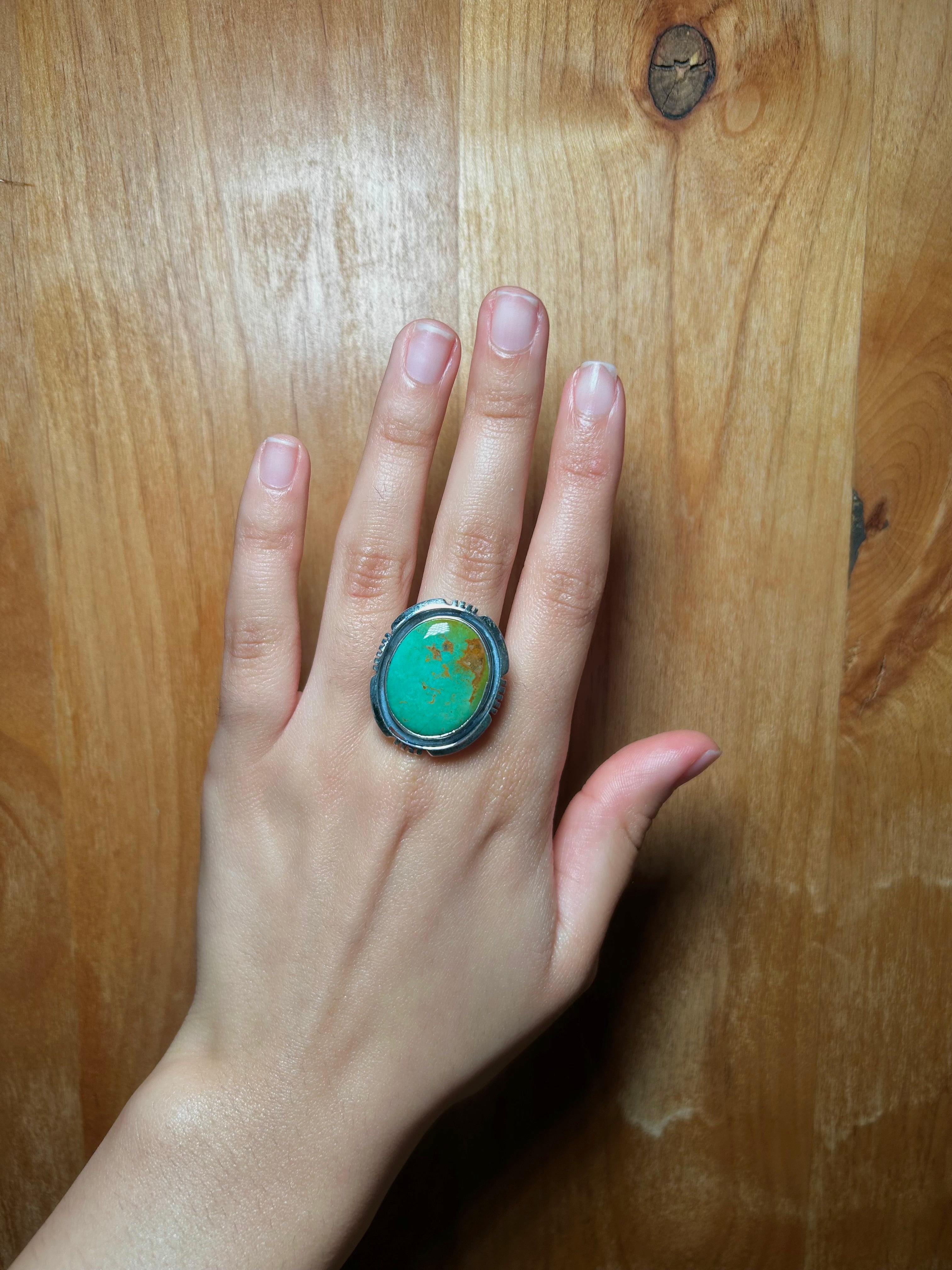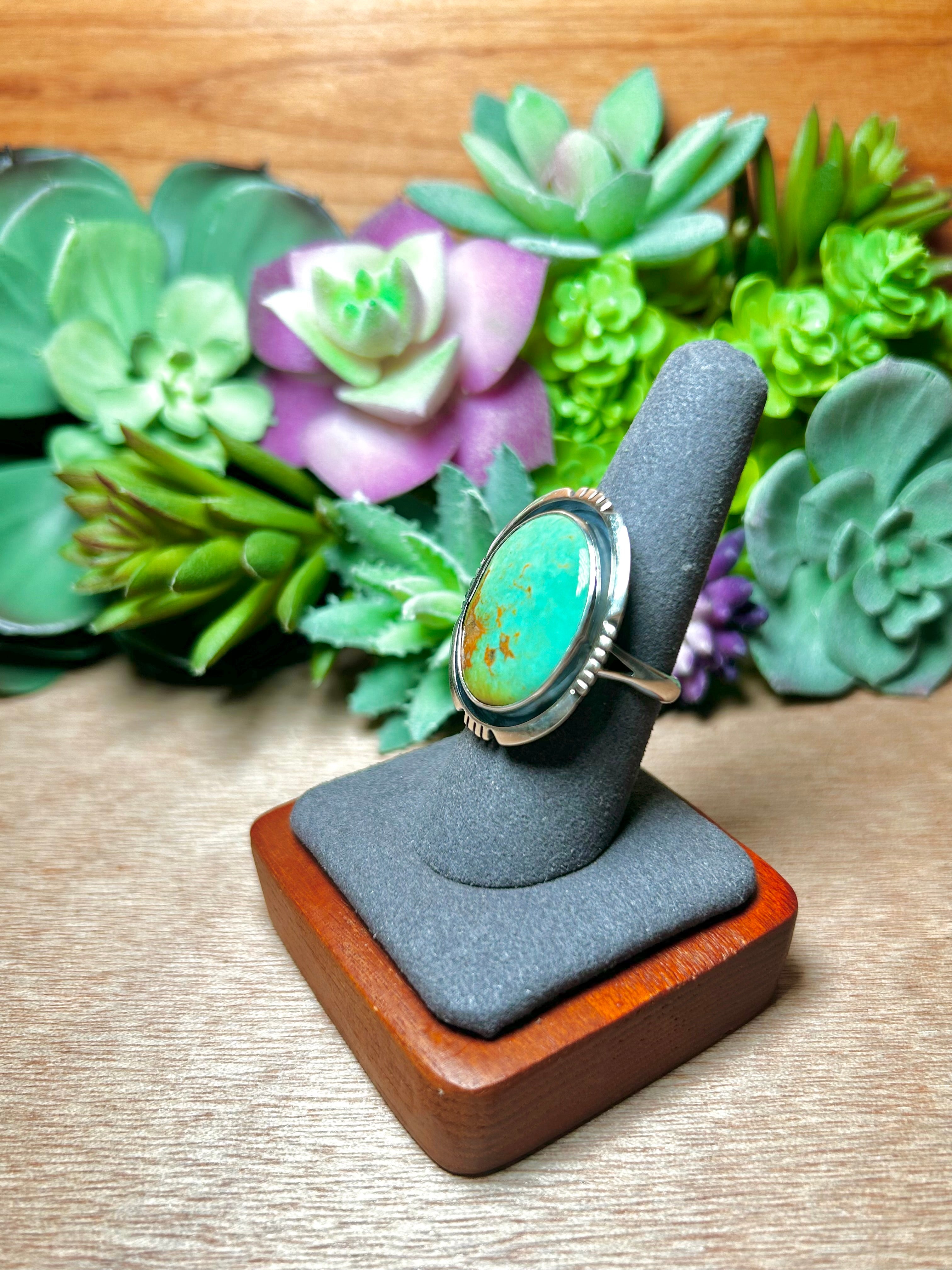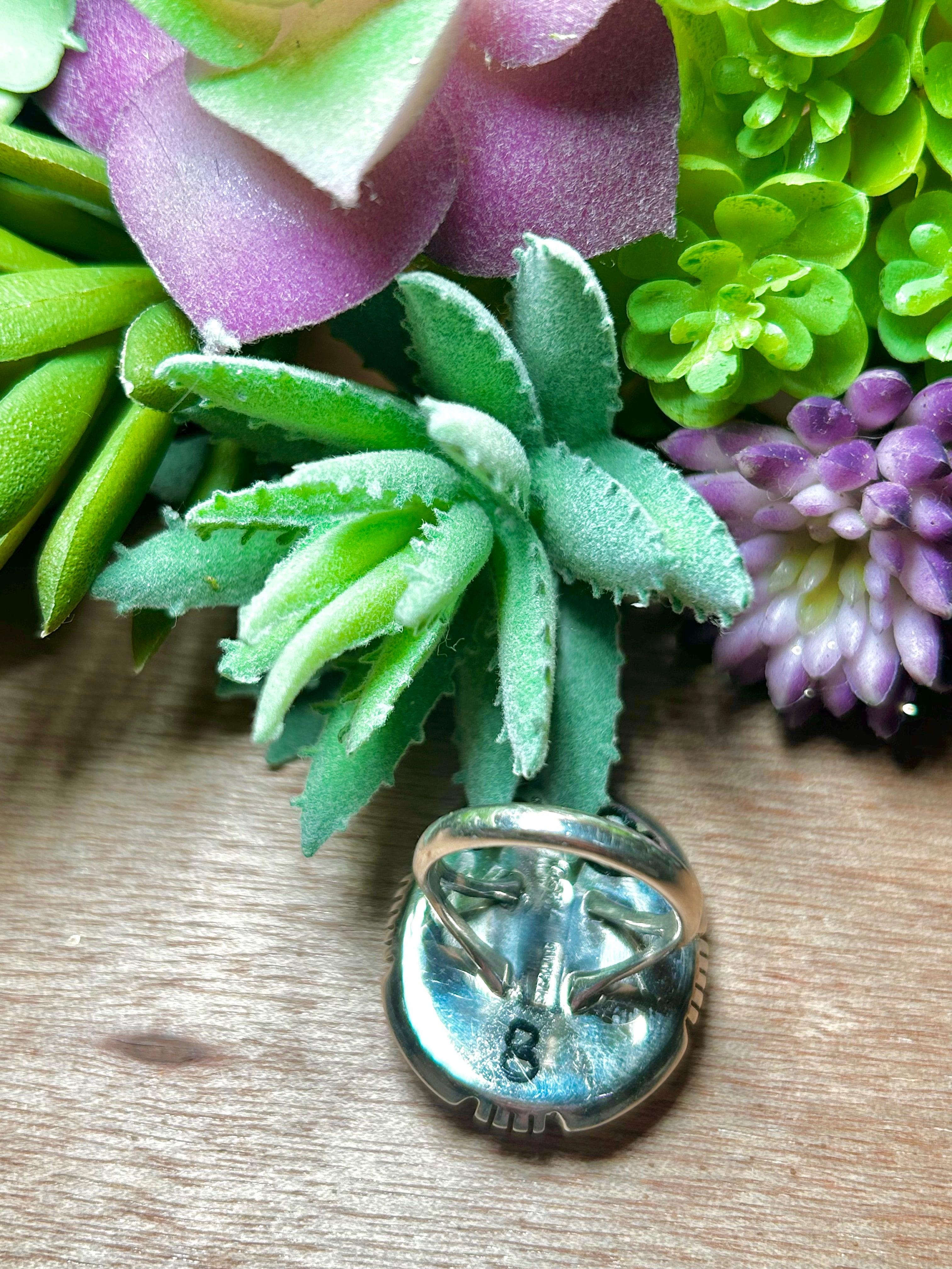 Navajo Made Kingman Turquoise & Sterling Silver Ring Size 8