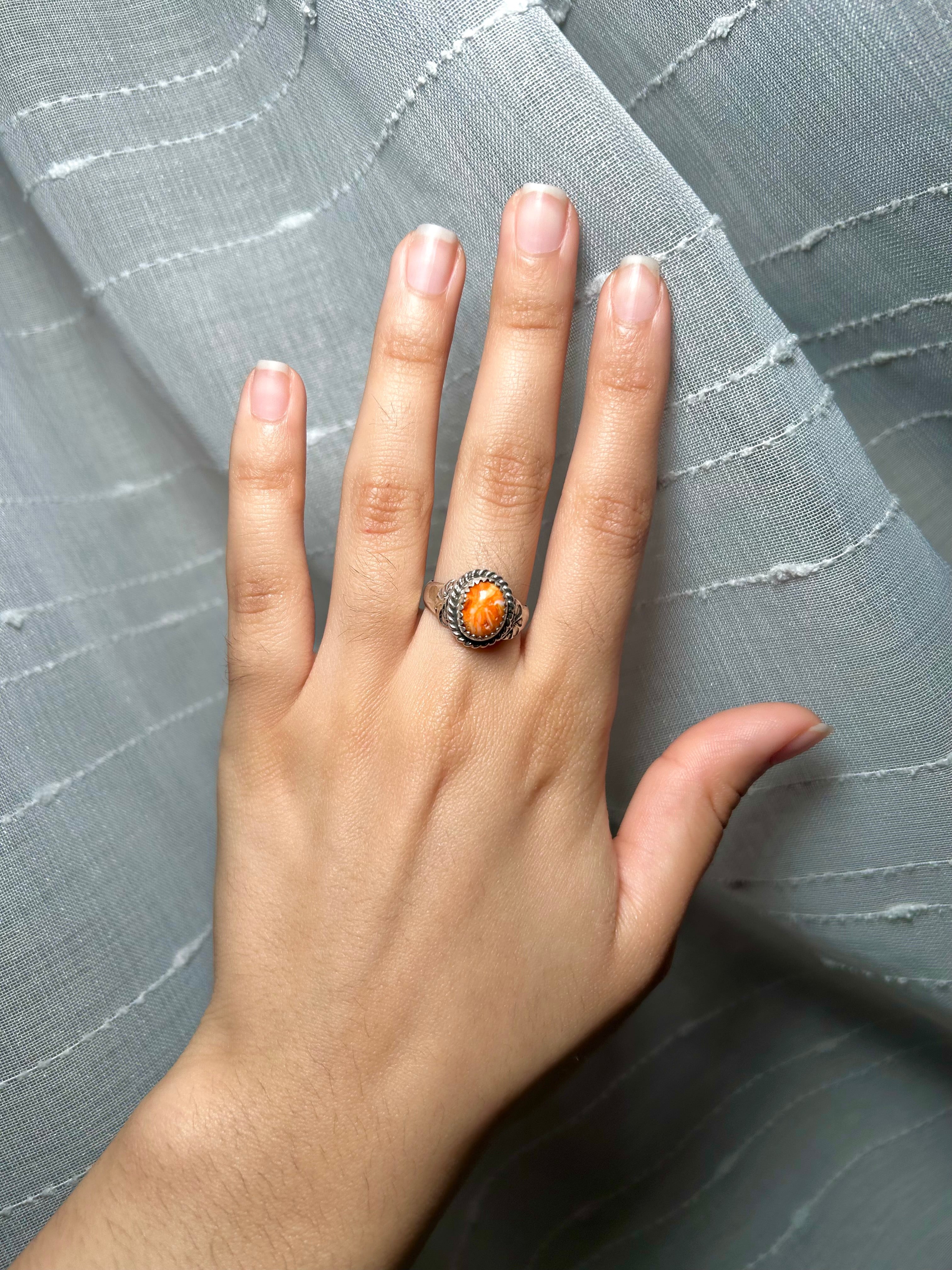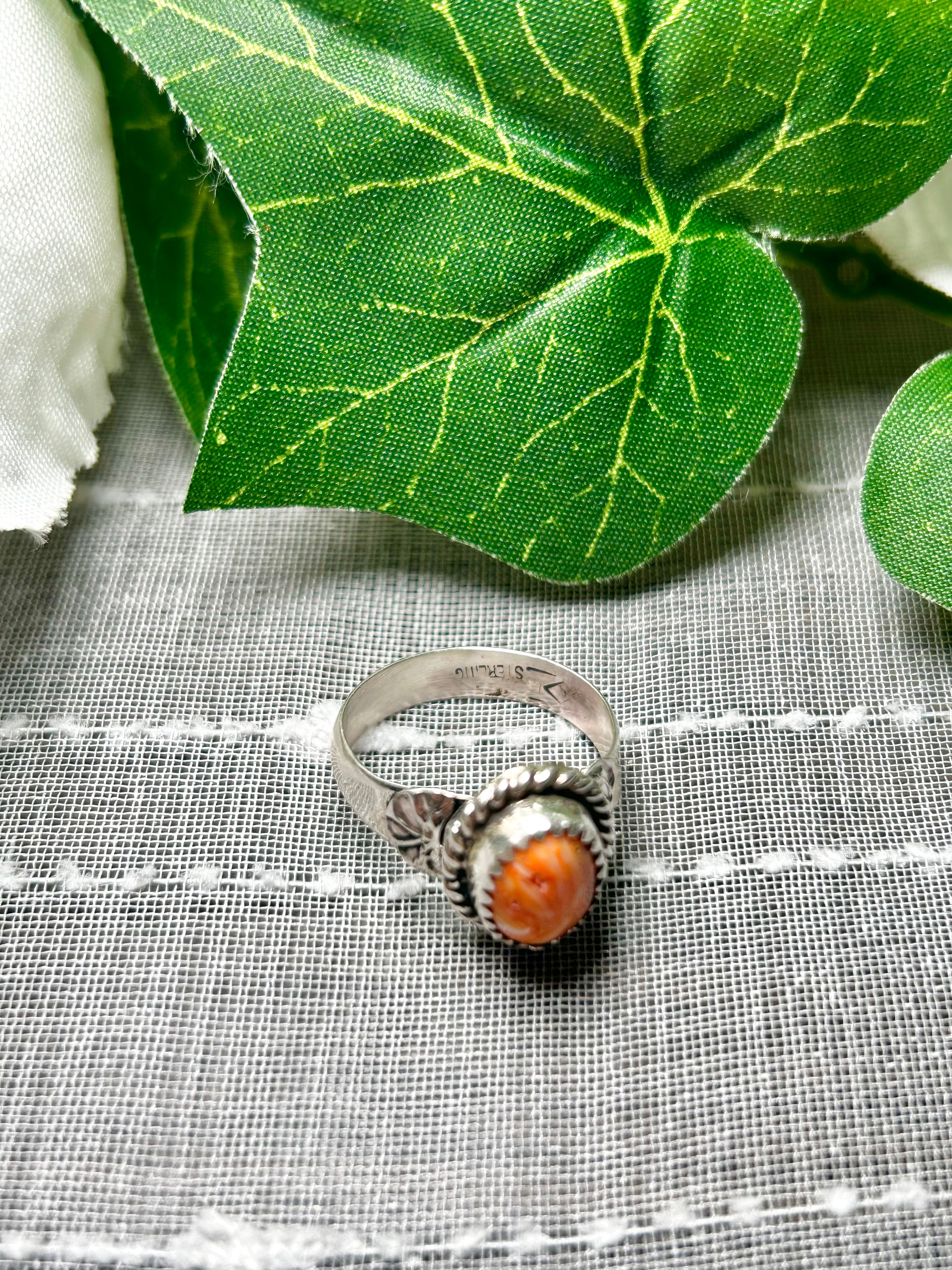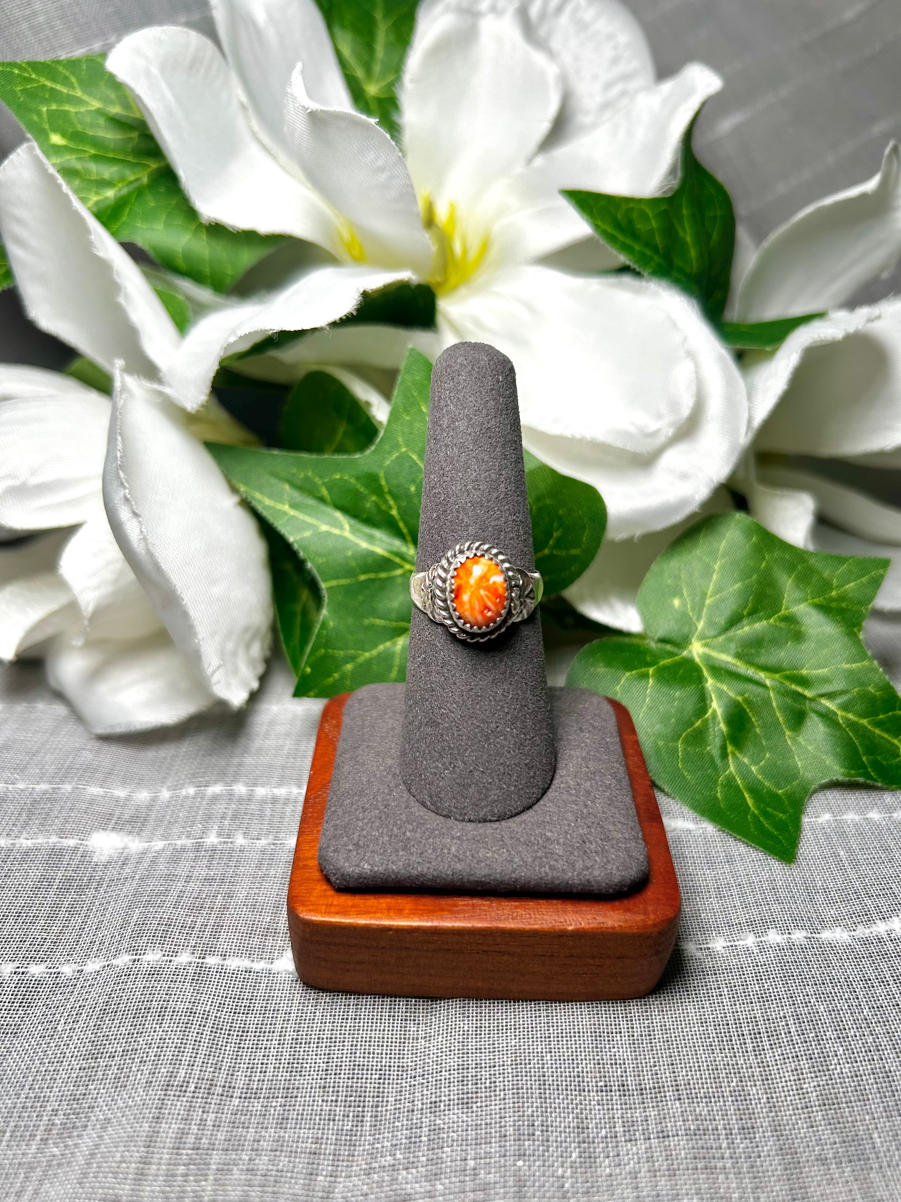 Navajo Made Spiny Oyster & Sterling Silver Ring Size 7.5