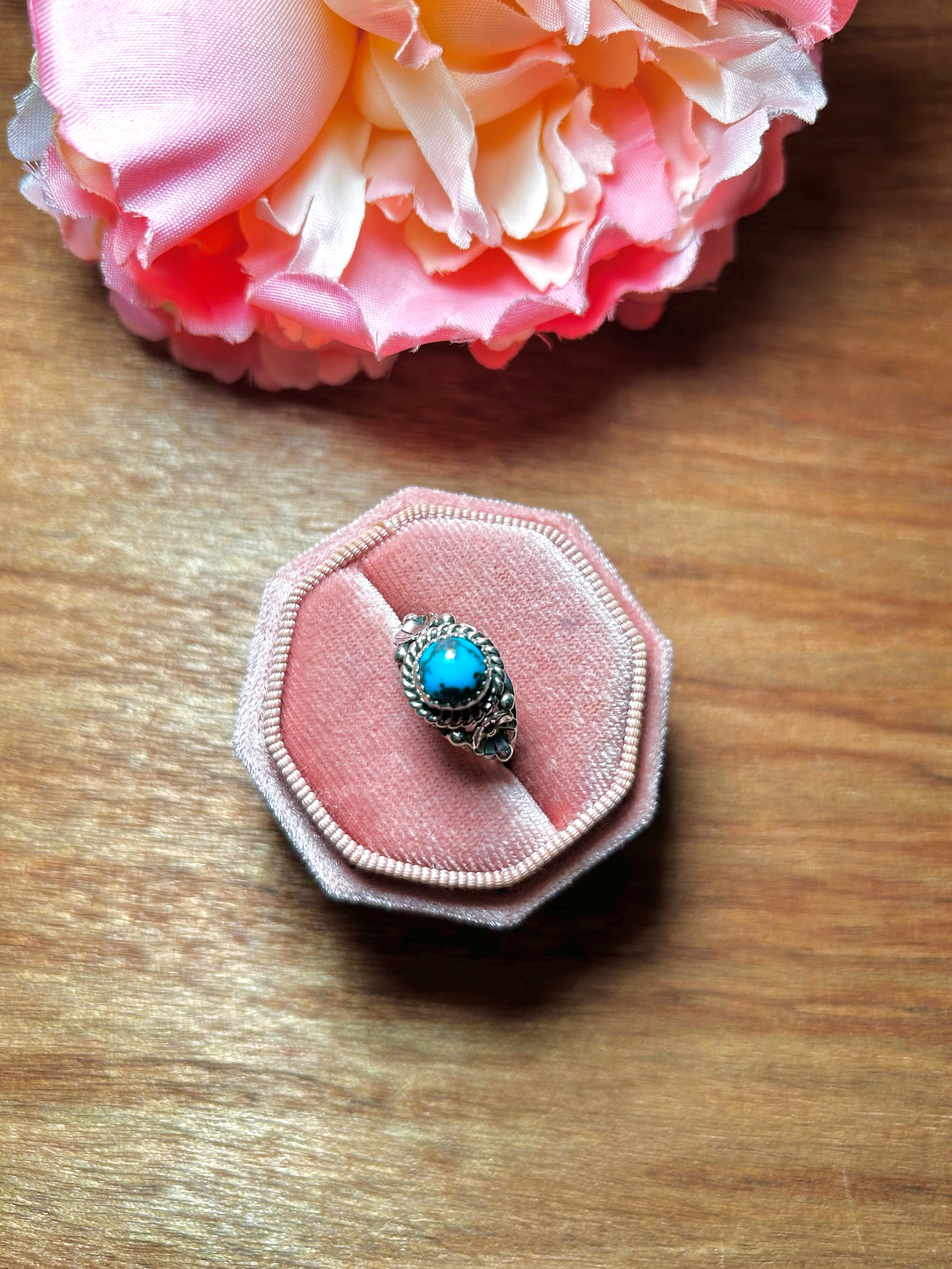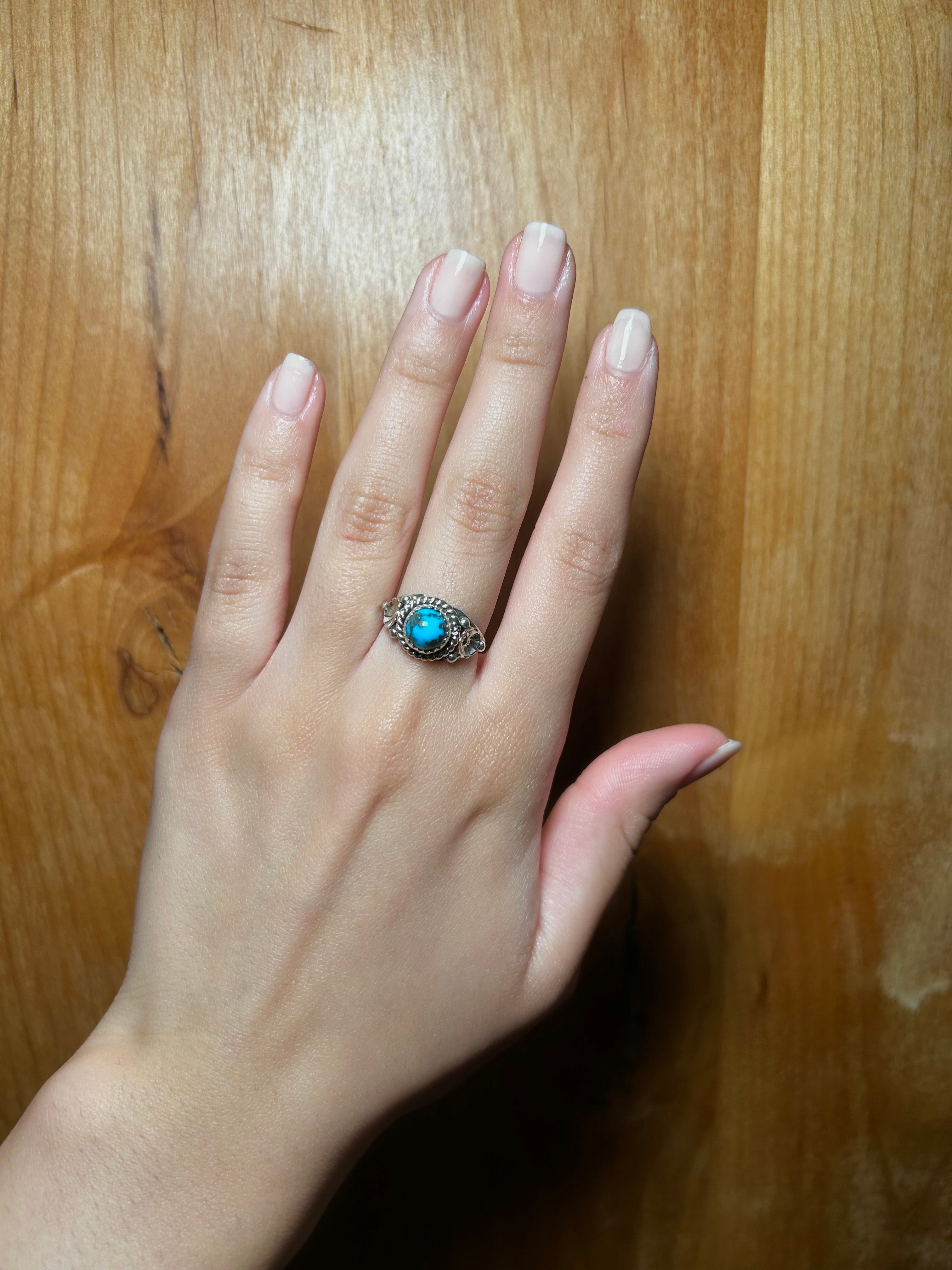 Navajo Made Kingman Turquoise & Sterling Silver Ring Size 6.5
