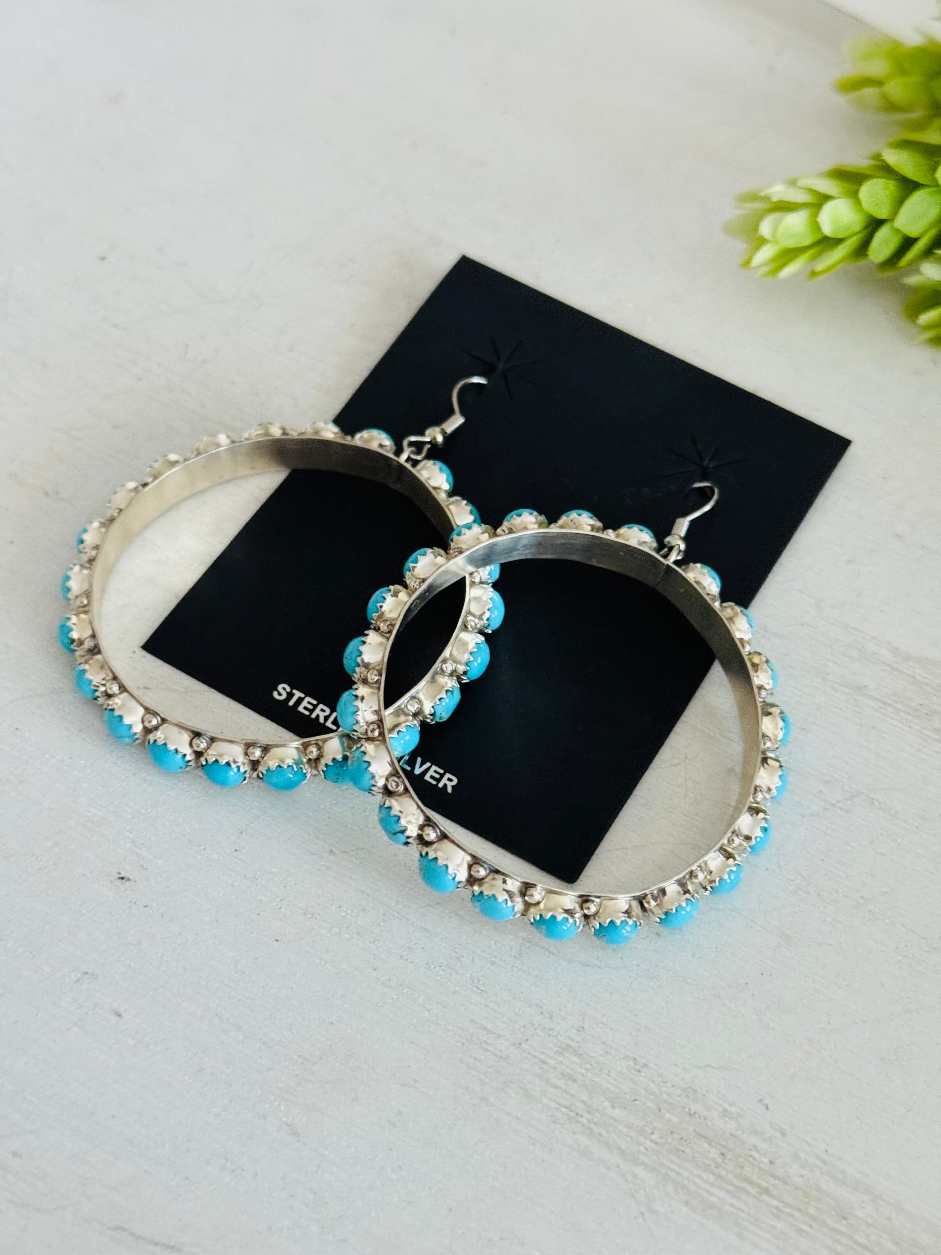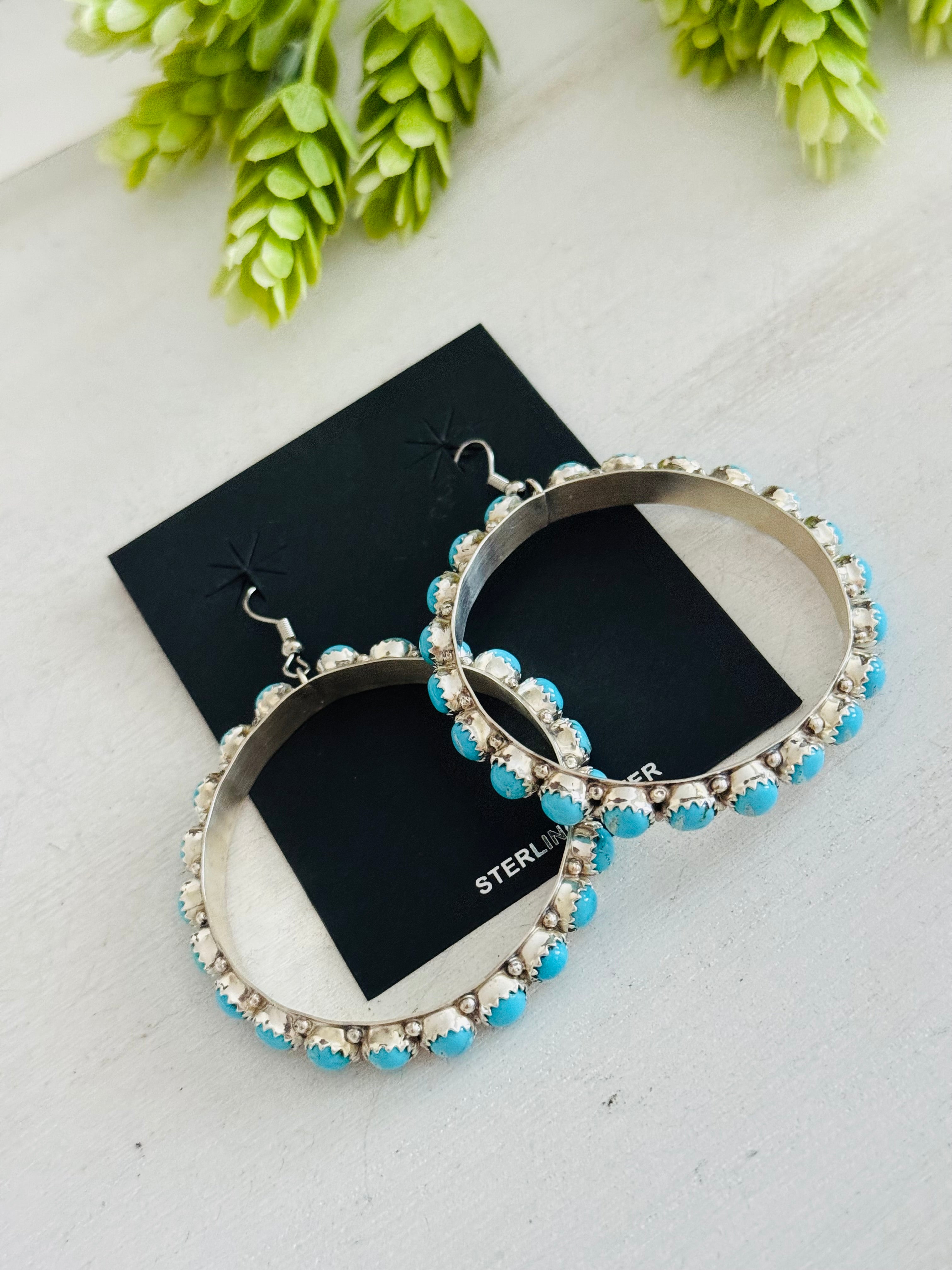 Navajo Made Sleeping Beauty Turquoise & Sterling Silver Dangle Earrings