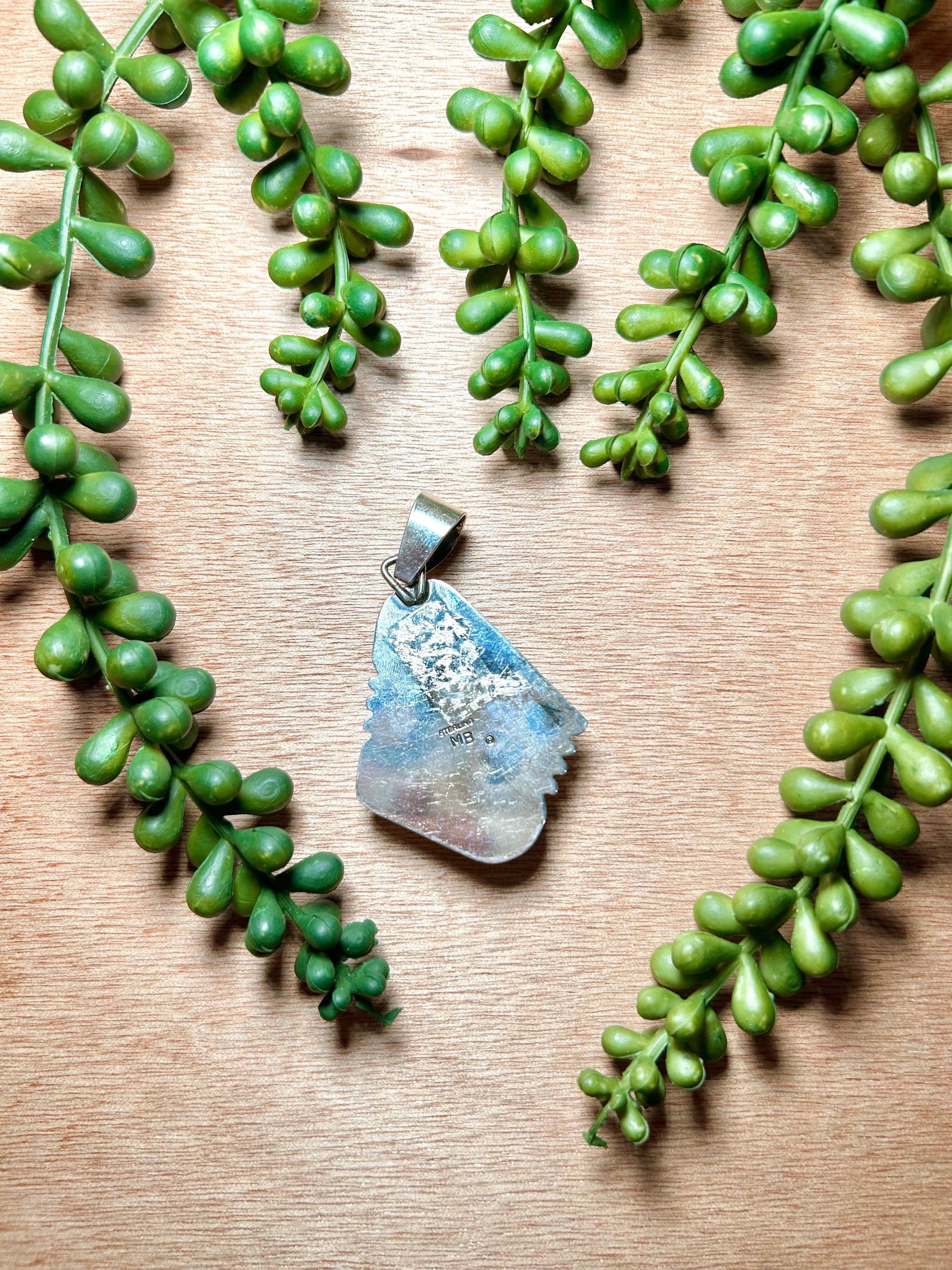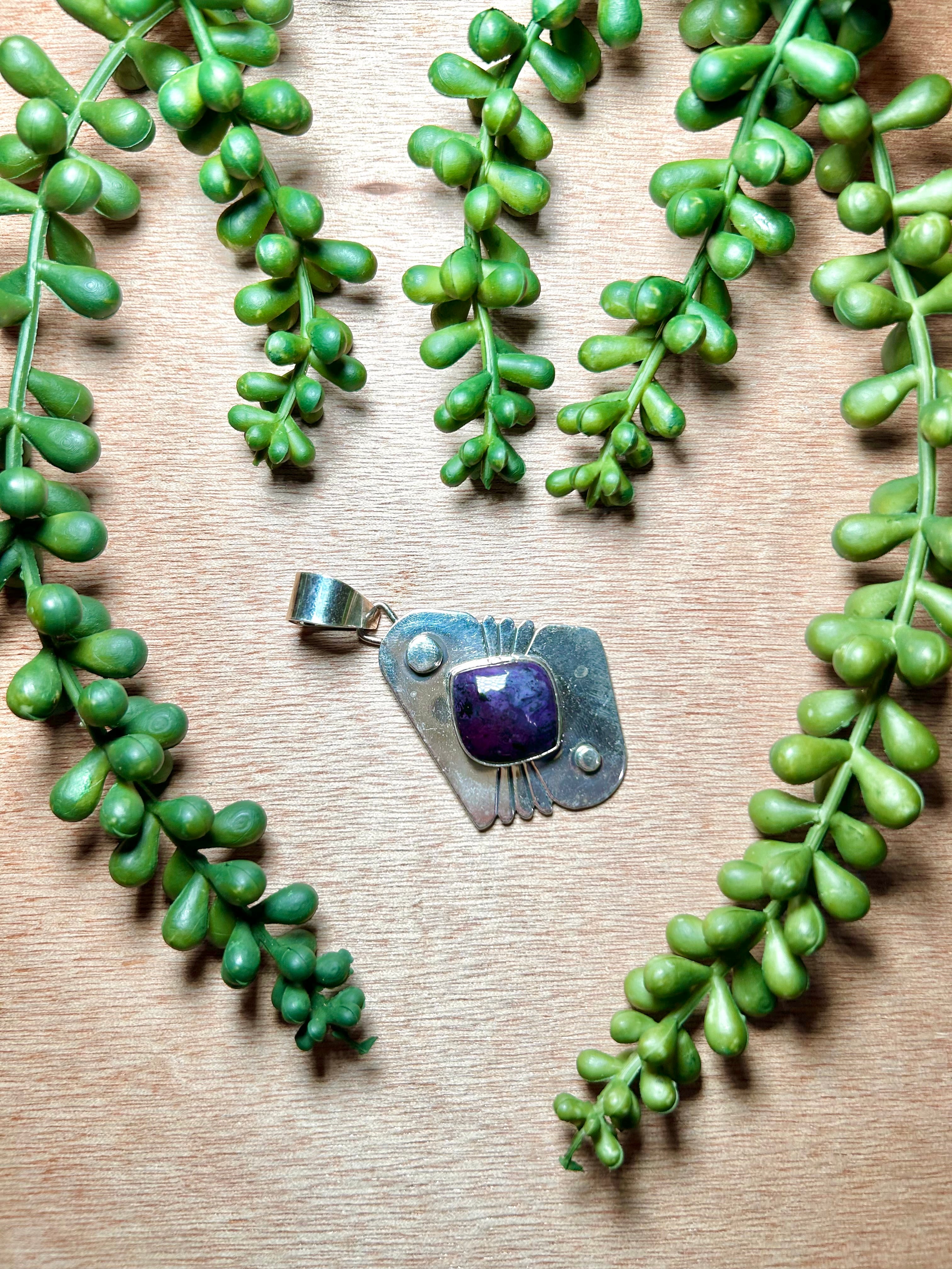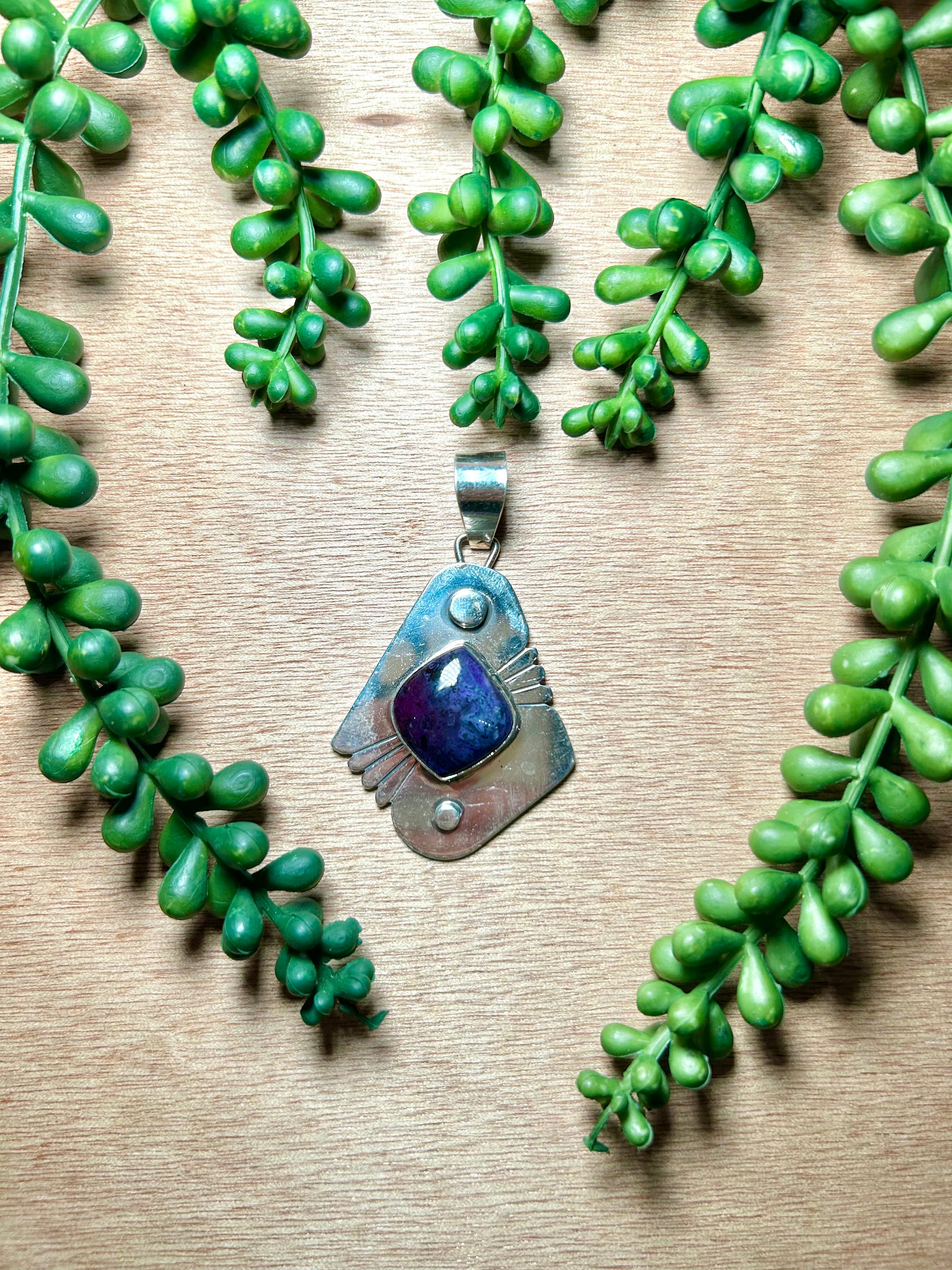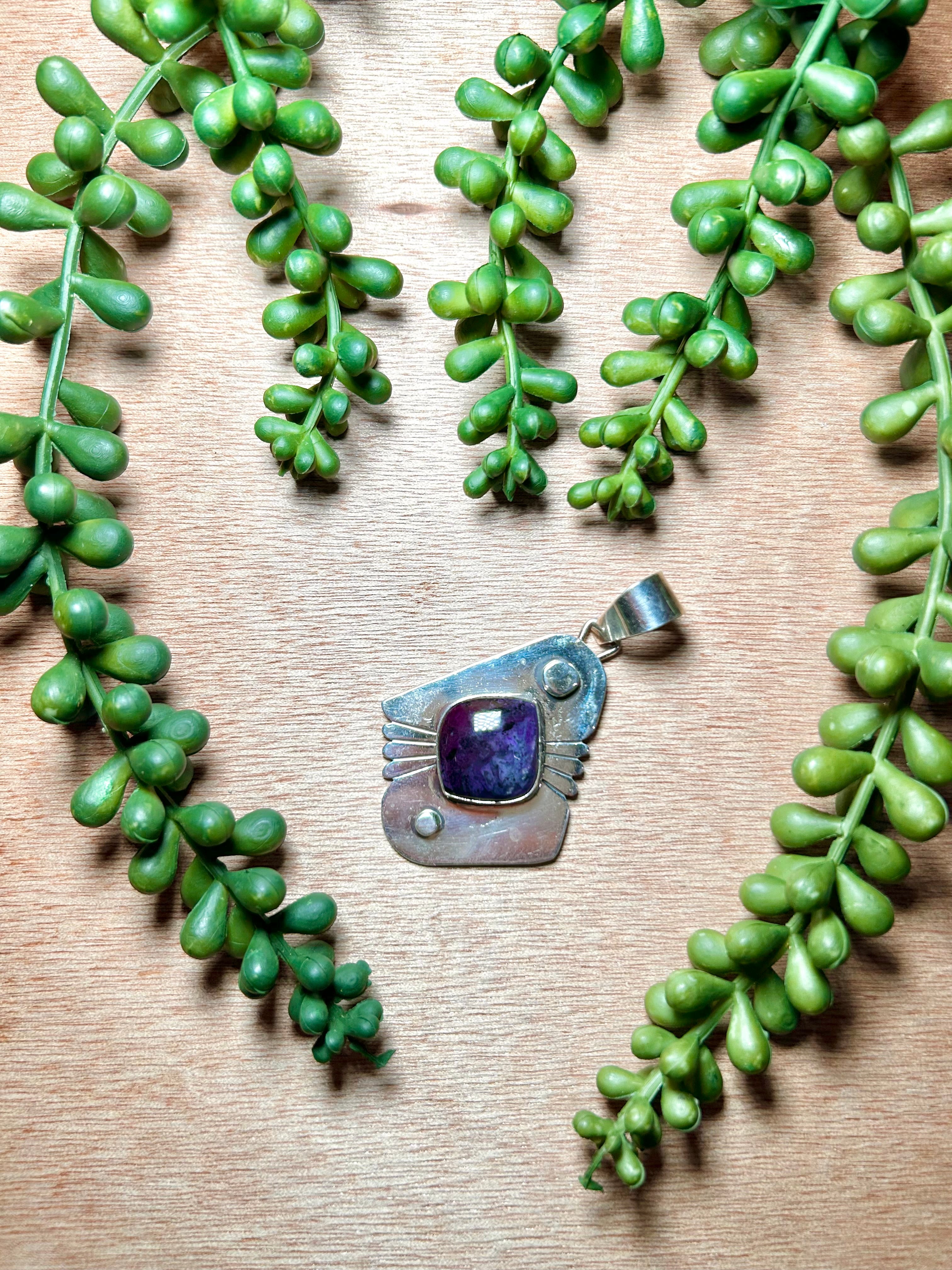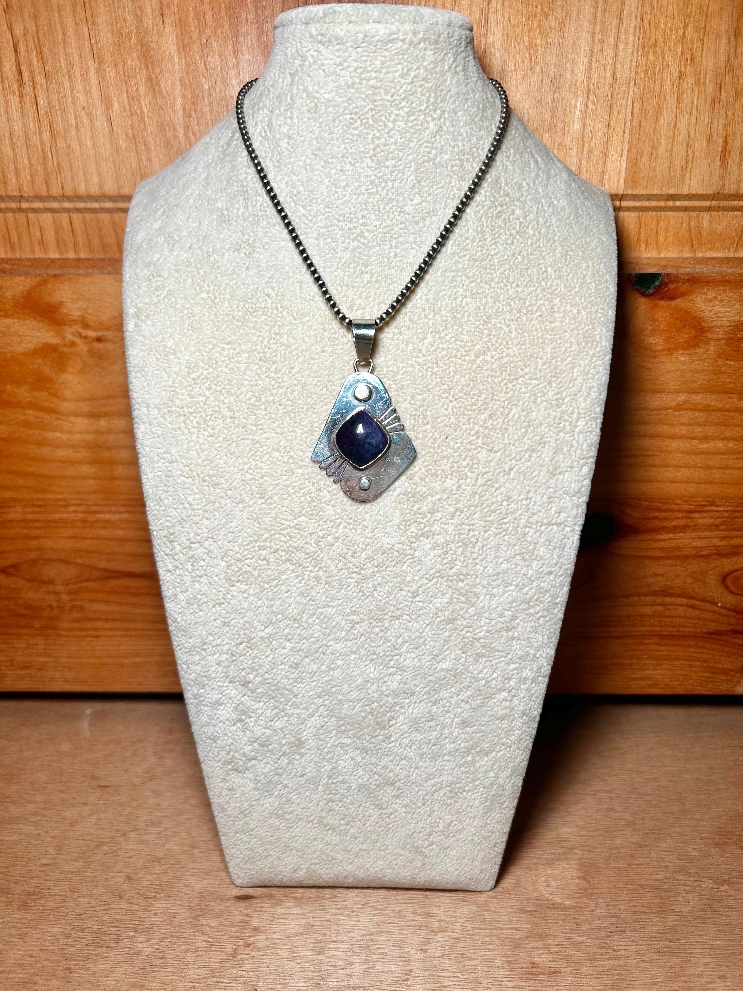 Navajo Made Sngilite & Sterling Silver Pendant. It measures 2 5/8 inches long and 1 1/2 inches wide. Pendant Only! Signed by the artist and stamped sterling silver.