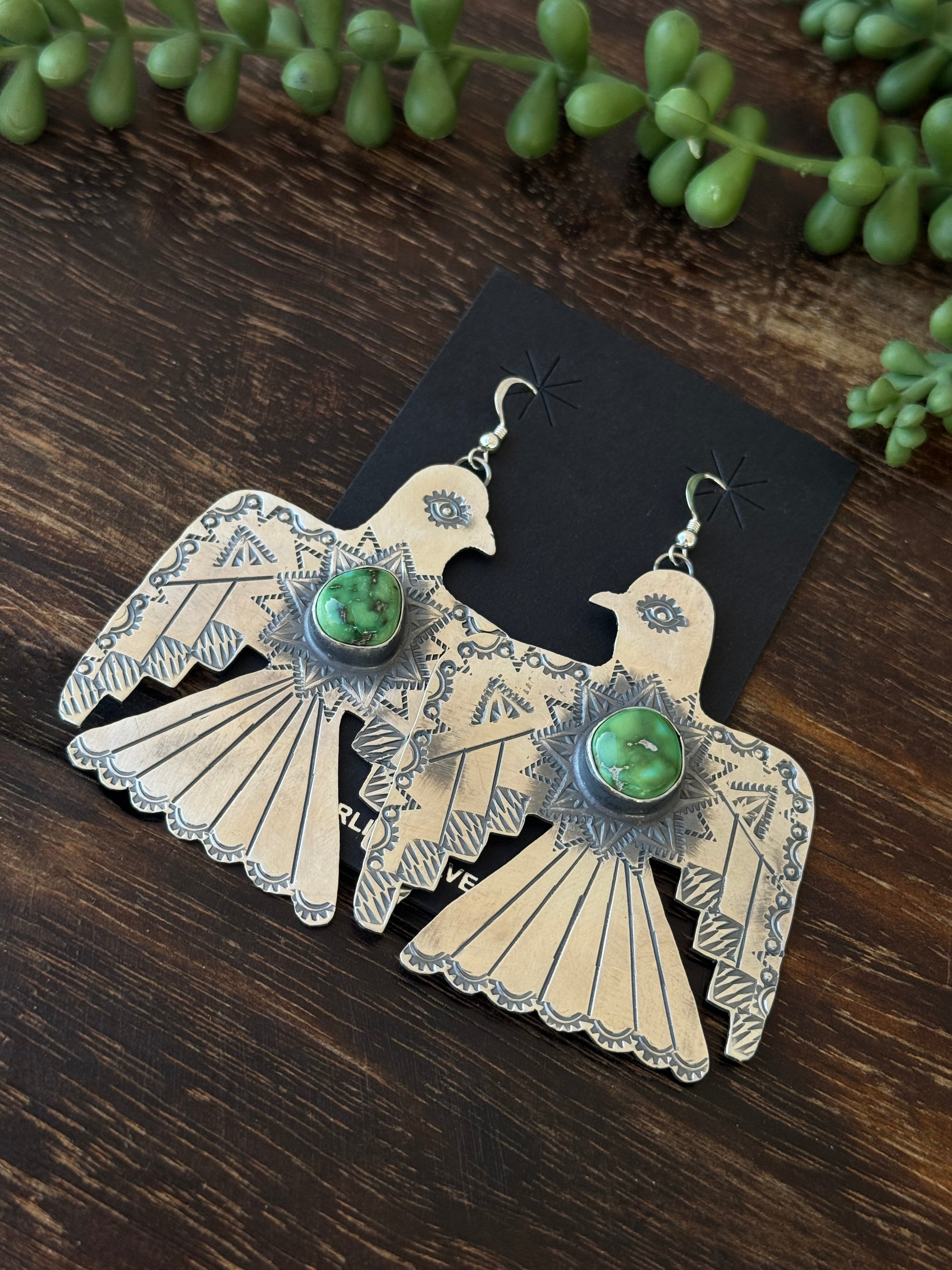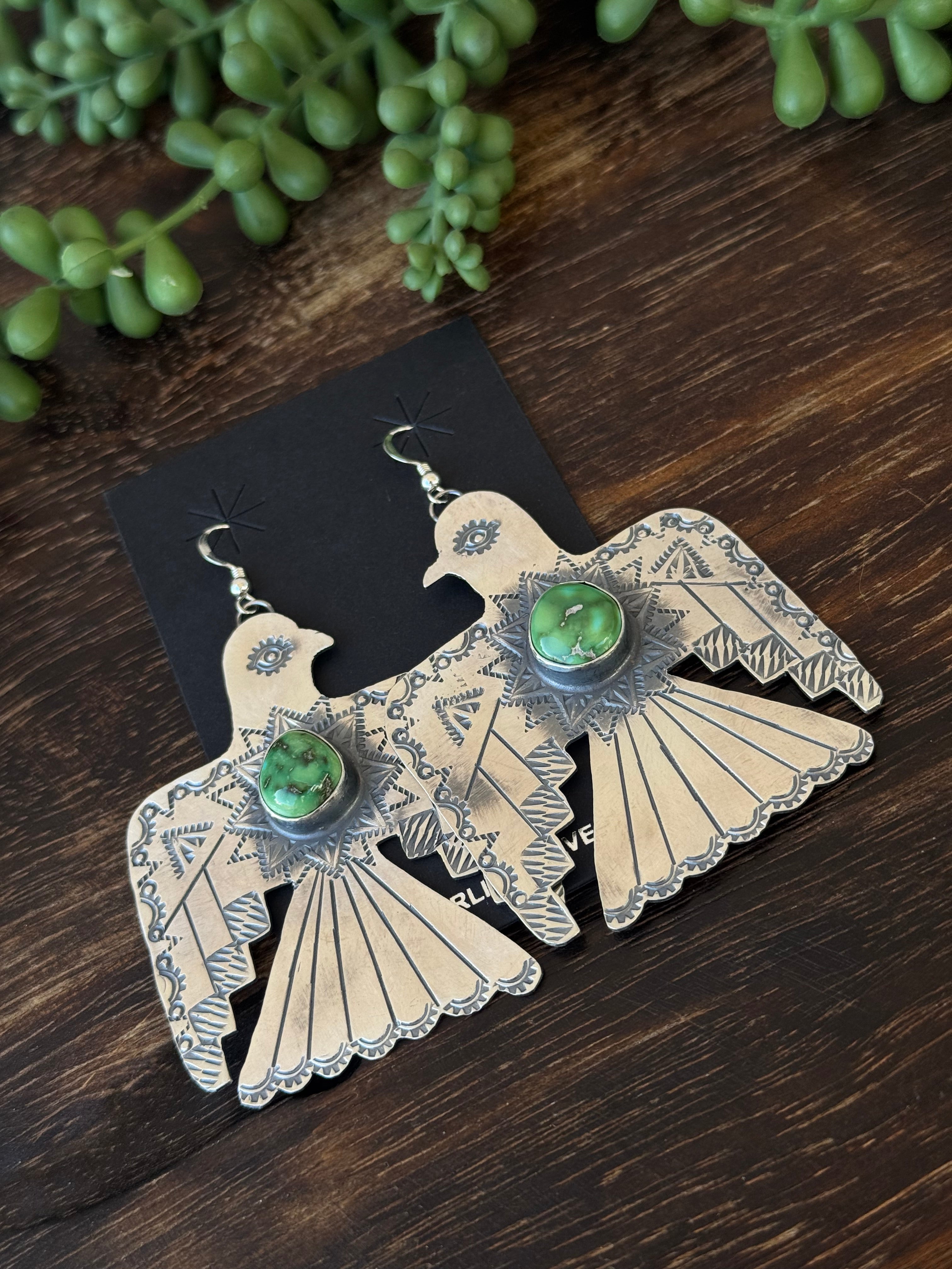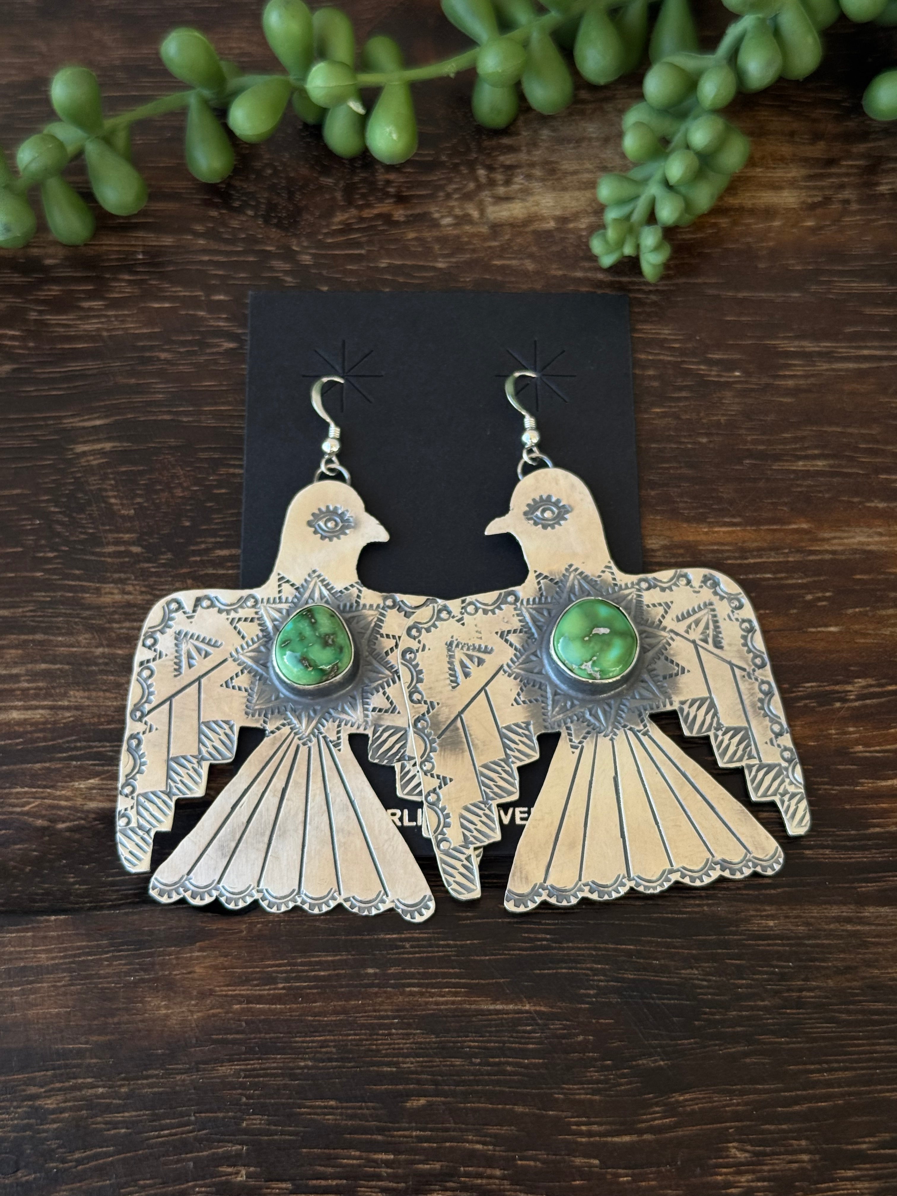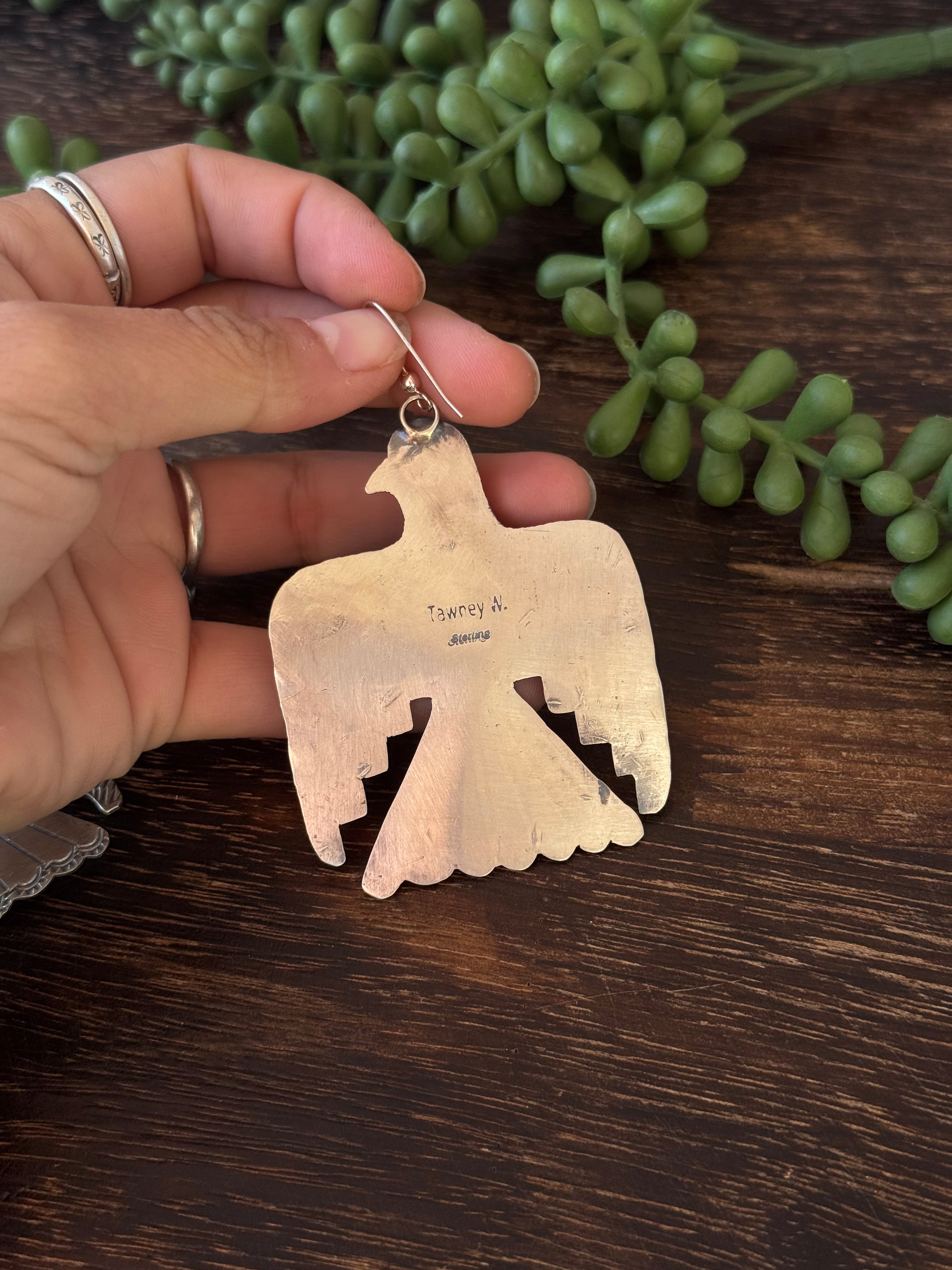 Navajo Made Sonoran Gold & Sterling Silver Dangle Thunderbird Earrings