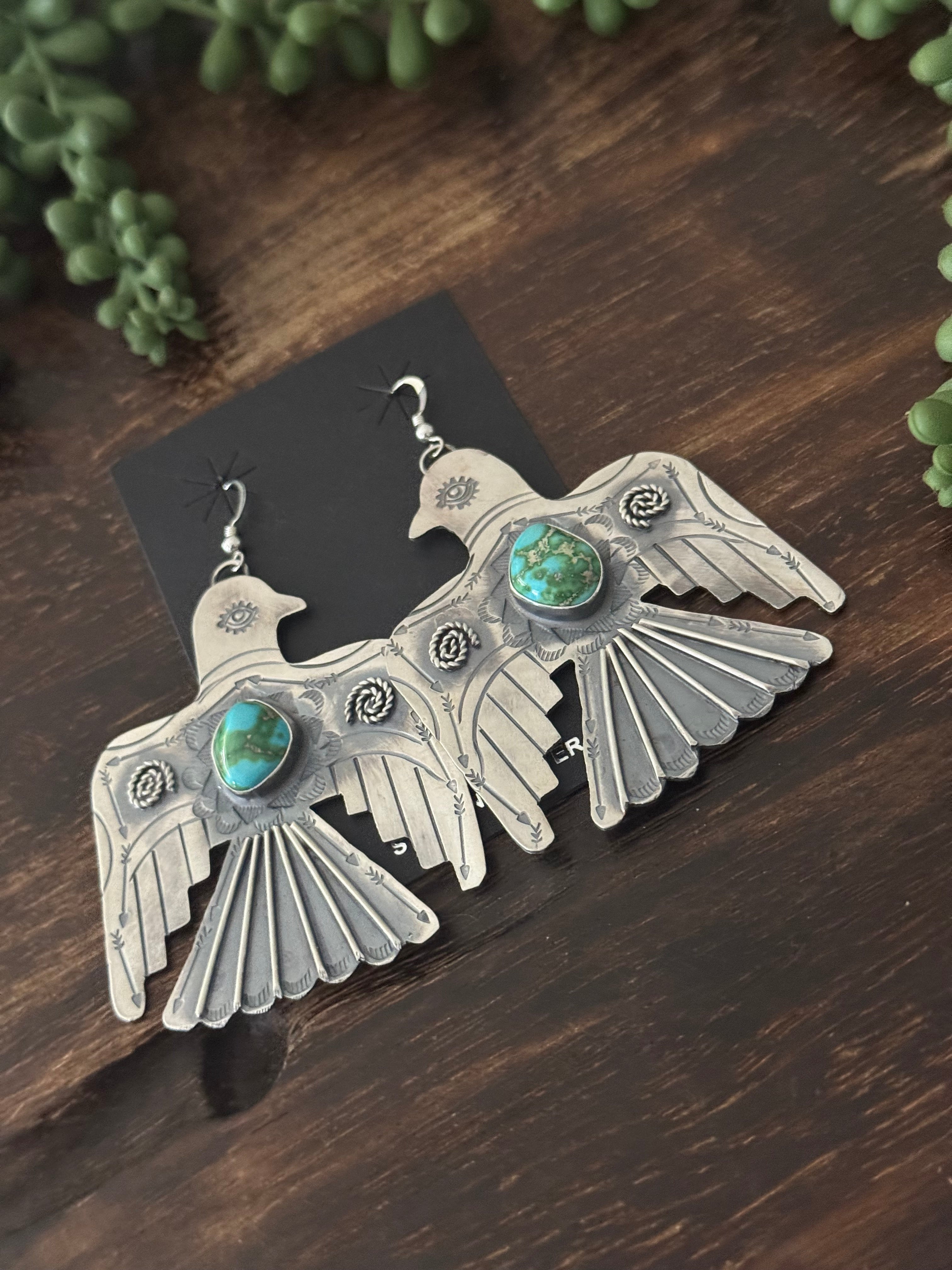 Navajo Made Sonoran Gold & Sterling Silver Dangle Thunderbird Earrings