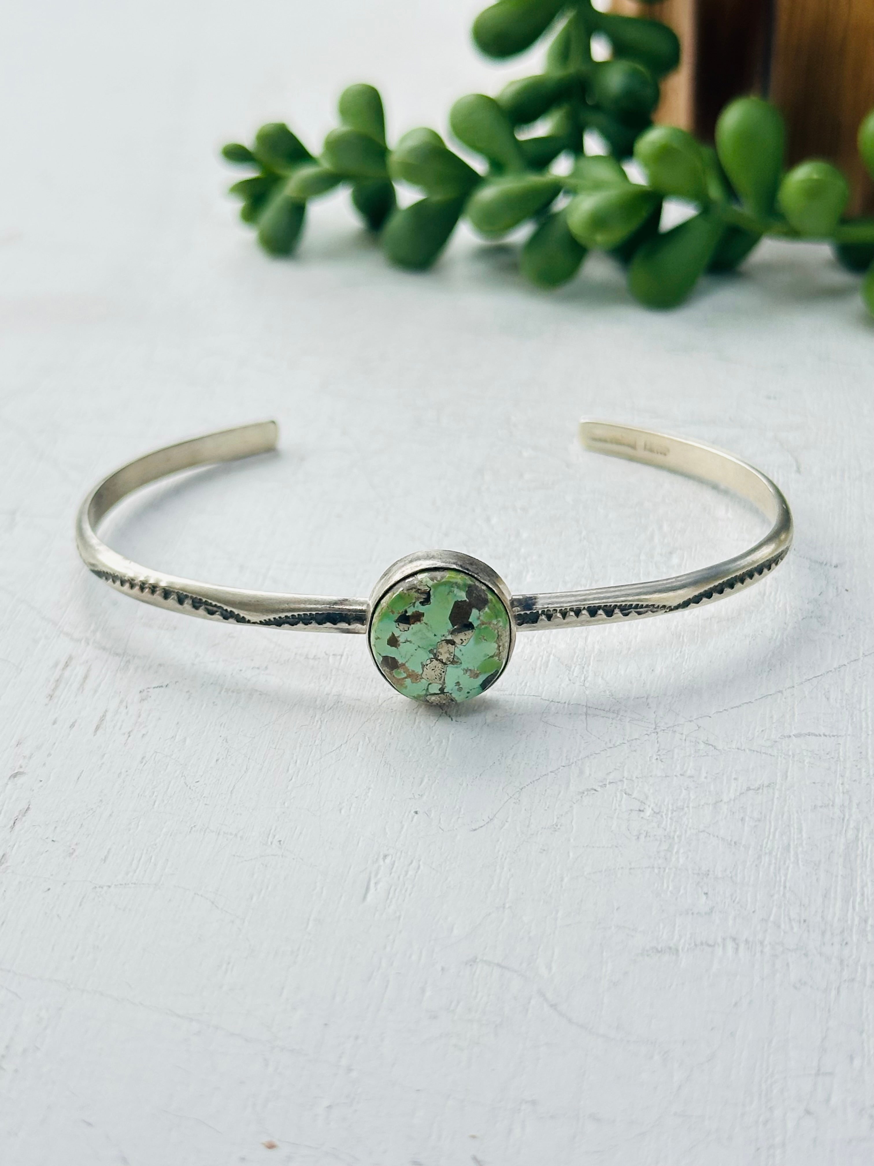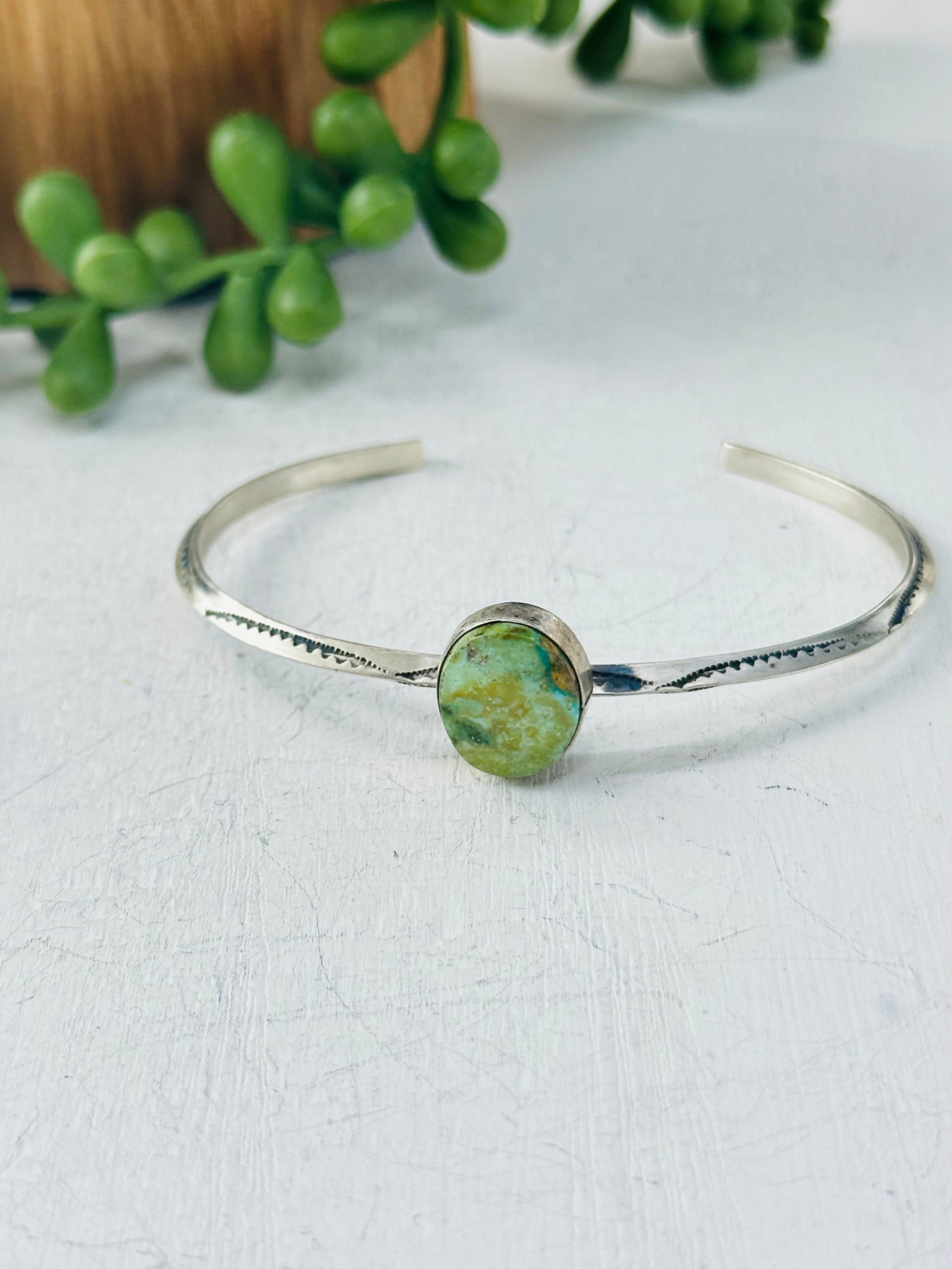Navajo Made Sonoran Gold Turquoise & Sterling Silver Cuff Bracelet