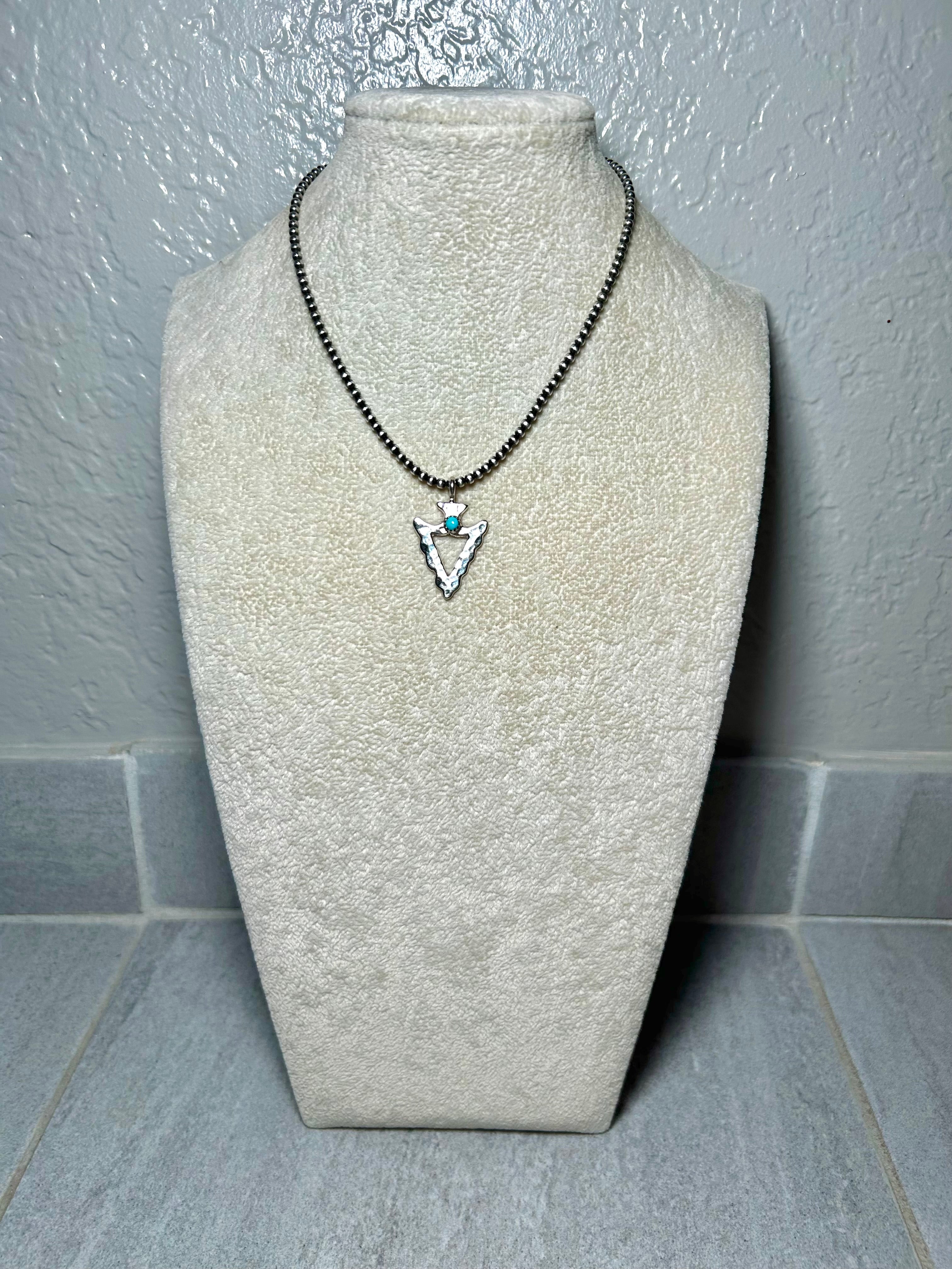 Navajo Made Kingman Turquoise & Sterling Silver Pendant. It measures 1 3/8 inches long and 7/8 of an inch wide. Pendant Only! Signed by the artist and stamped sterling silver.