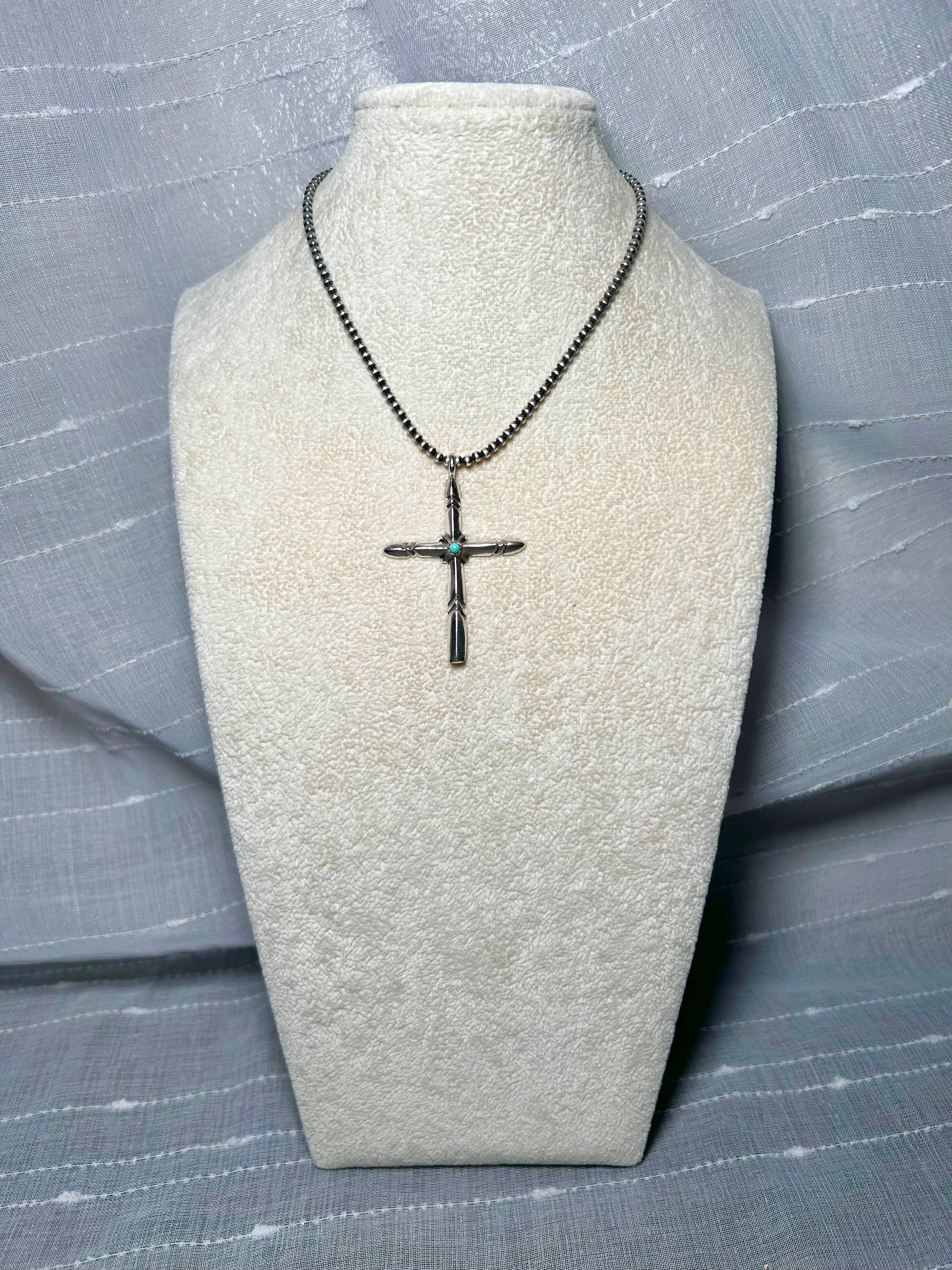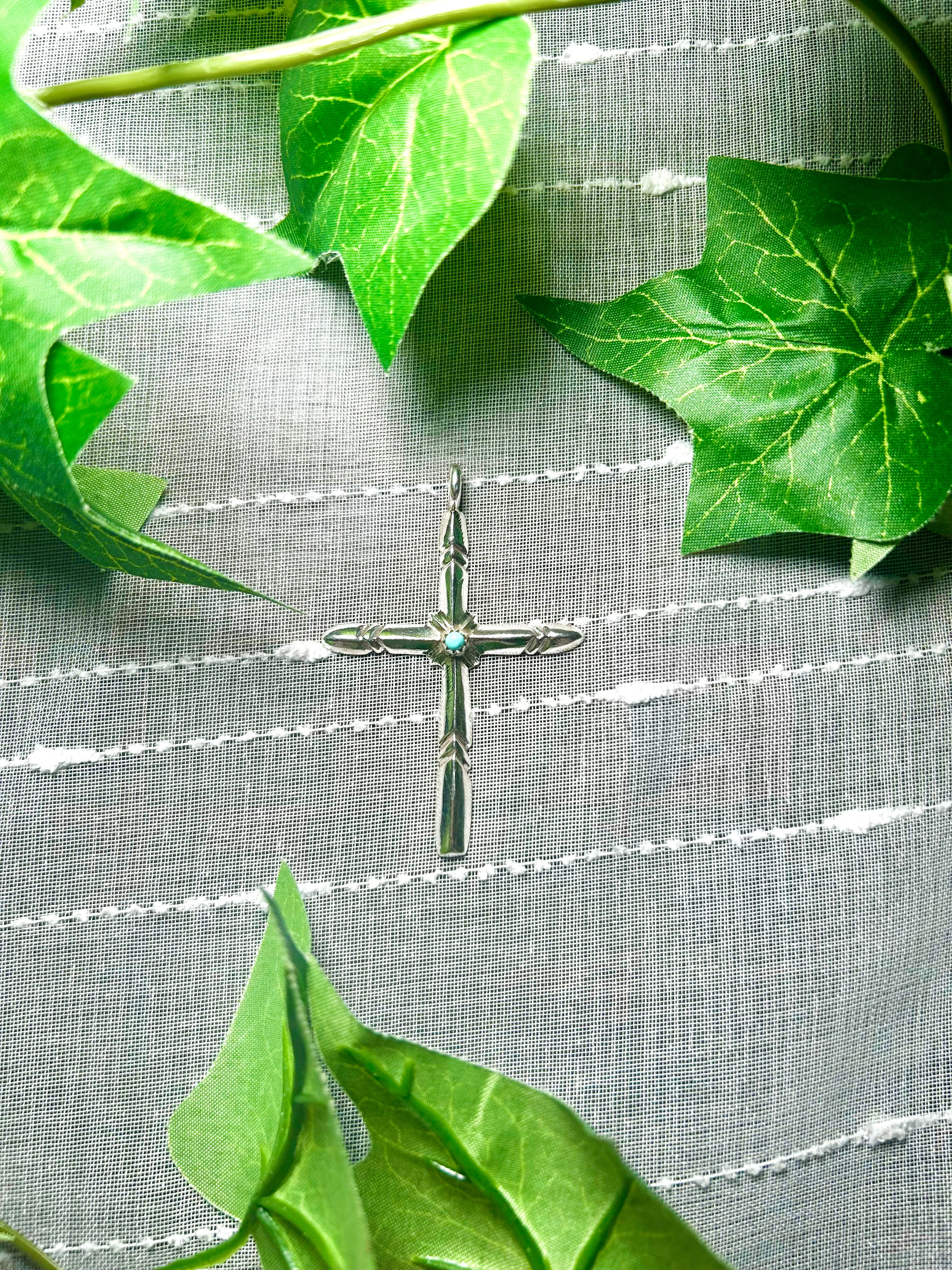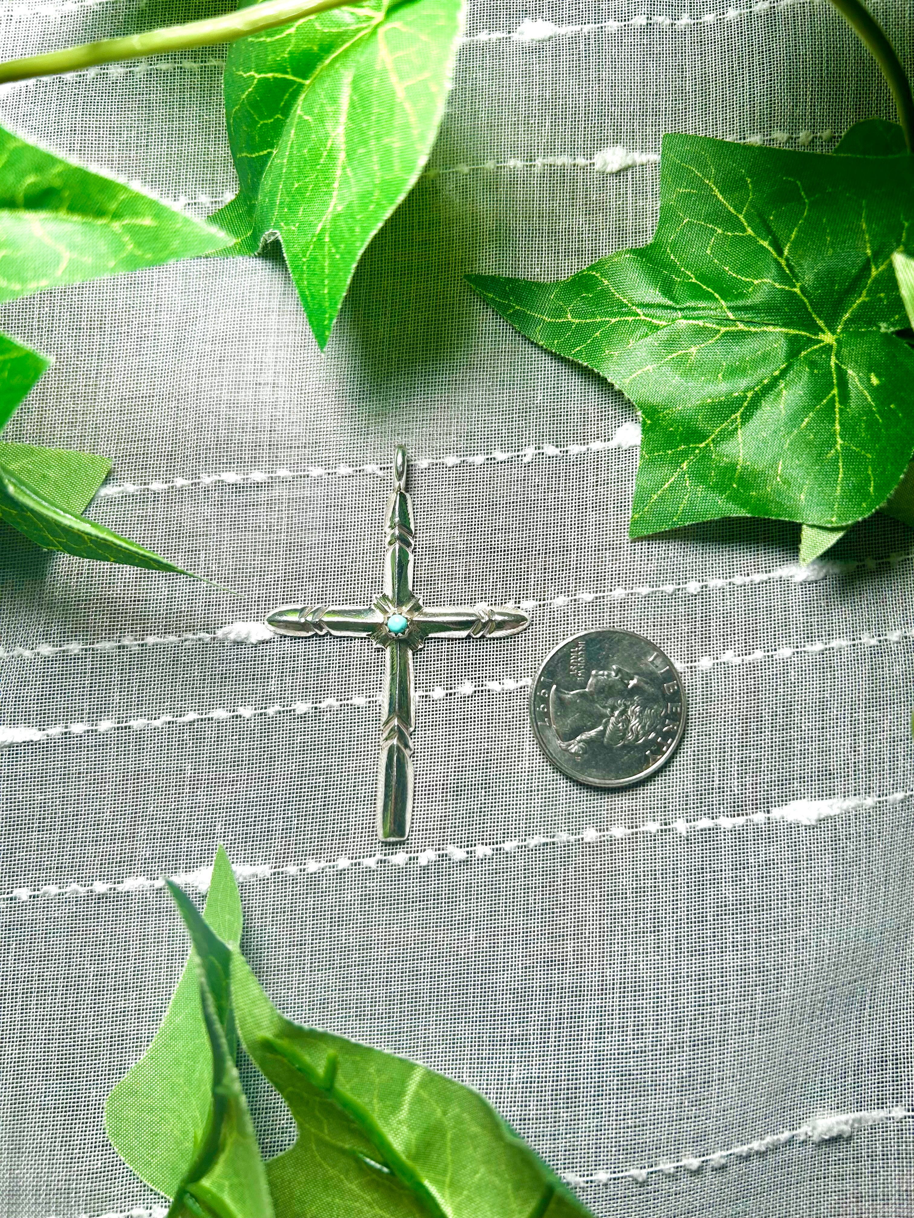 Navajo Made Kingman Turquoise & Sterling Silver Pendant. It measures 2 3/8 inches long and 1 5/8 inches wide. Pendant Only! Signed by the artist and stamped sterling silver.