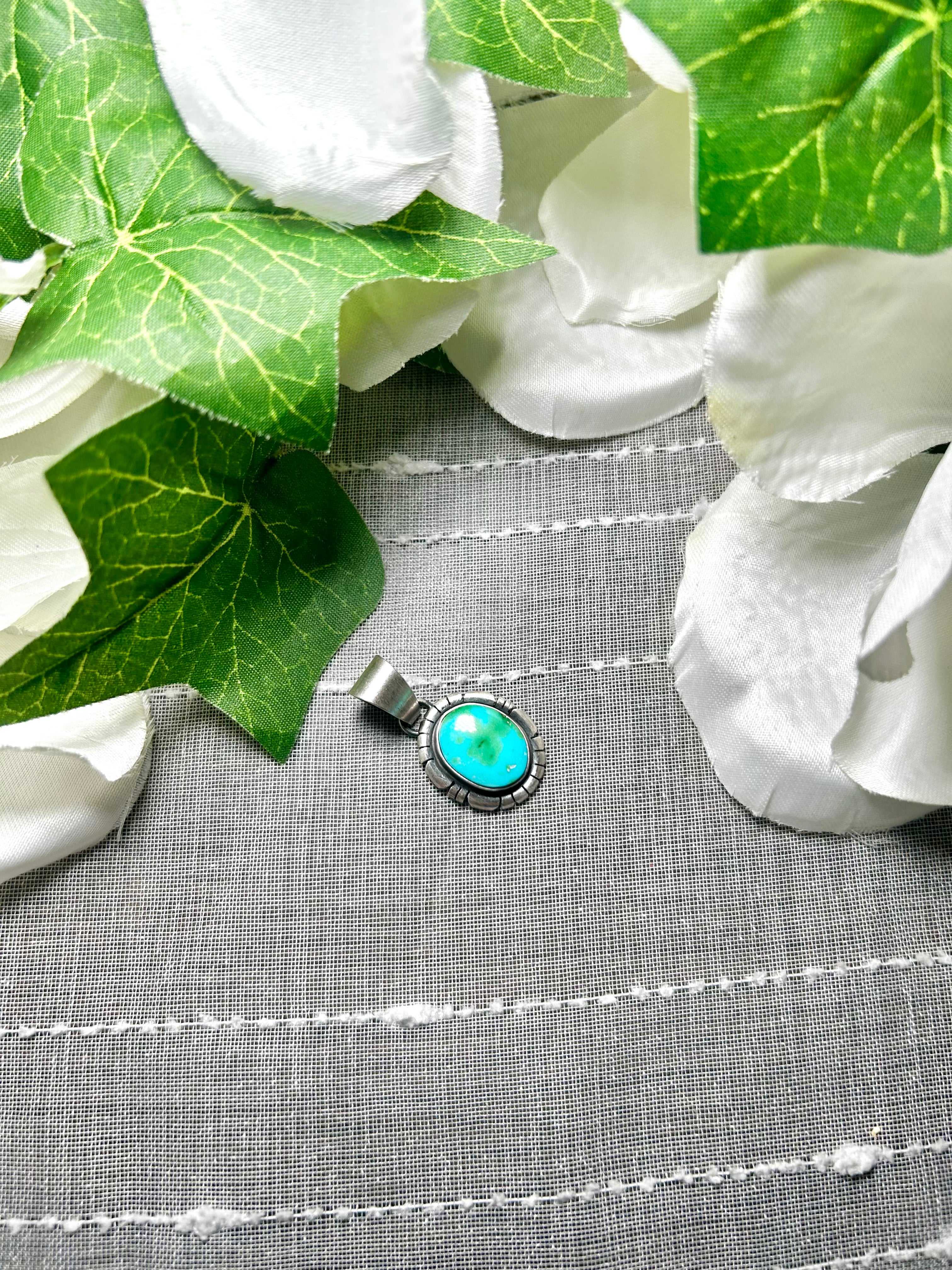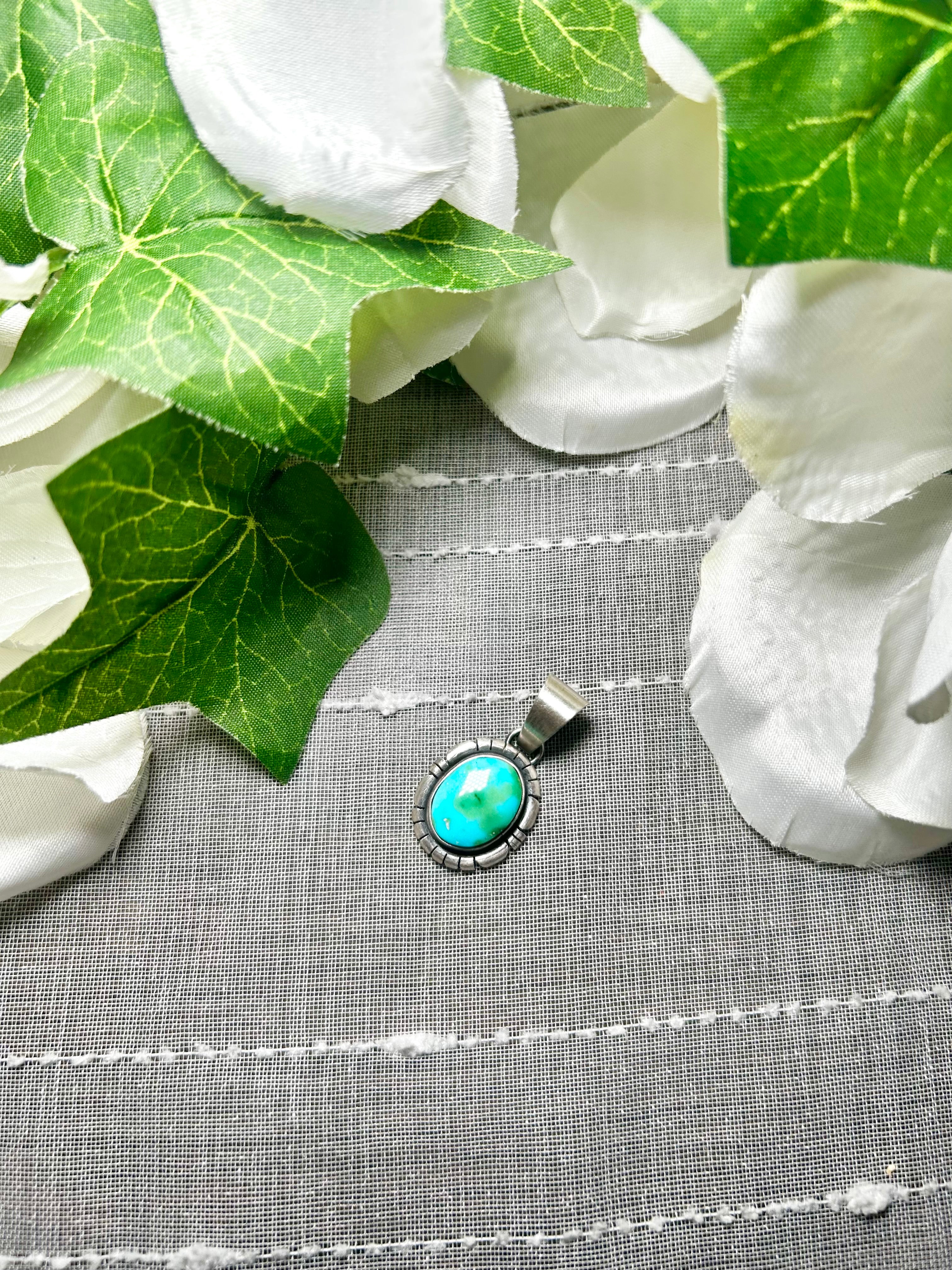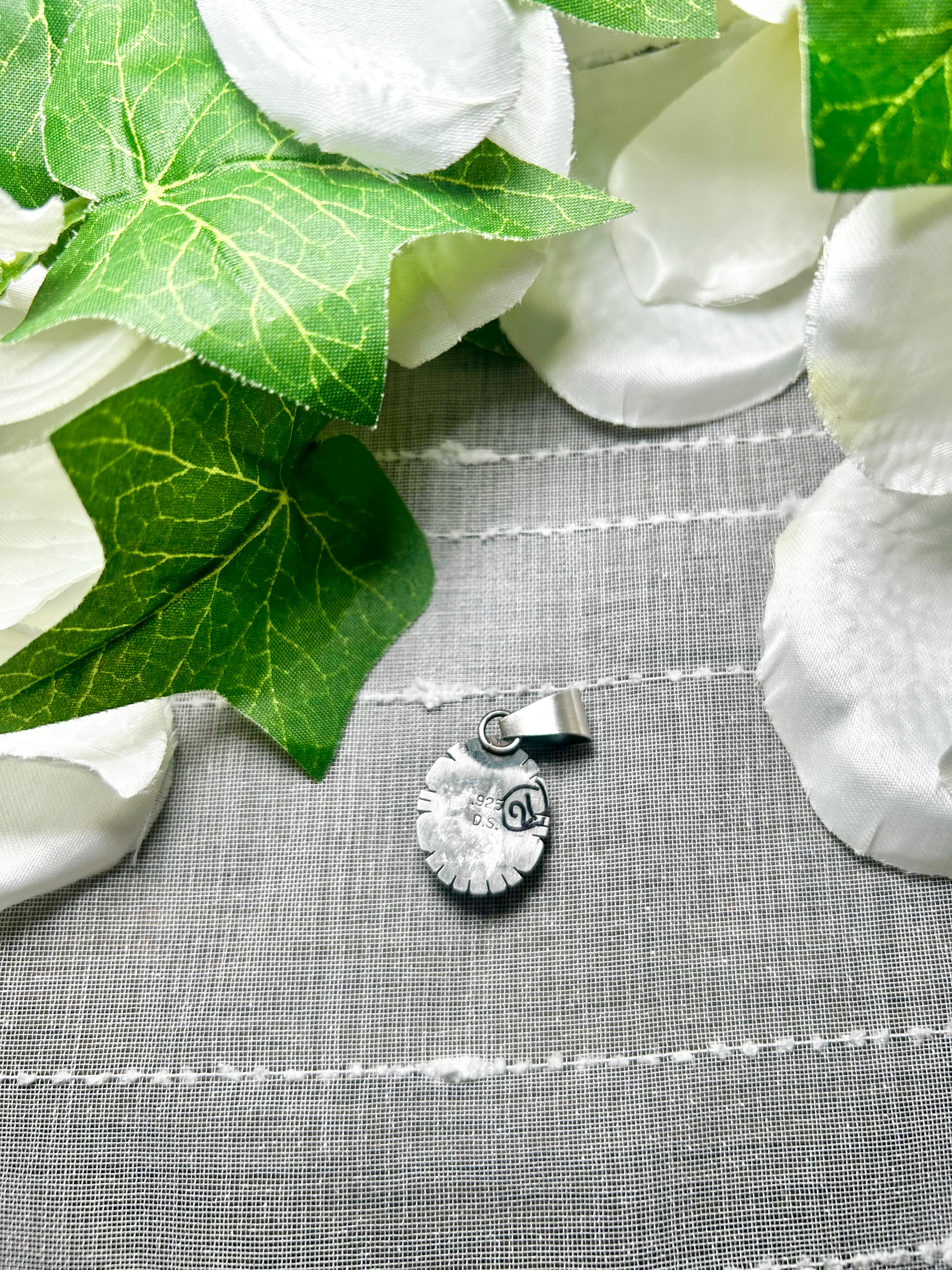Navajo Made Sonoran Mountain & Sterling Silver Pendant. It measures 1 3/8 inches long and 3/4 of an inch wide. Pendant Only! Signed by the artist and stamped sterling silver.