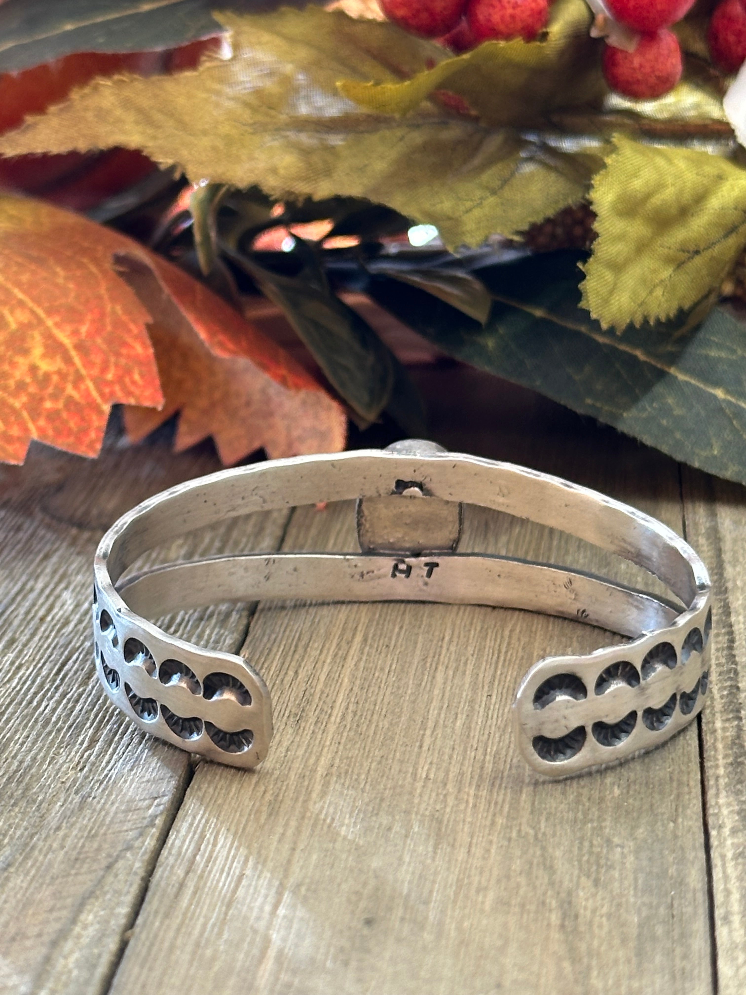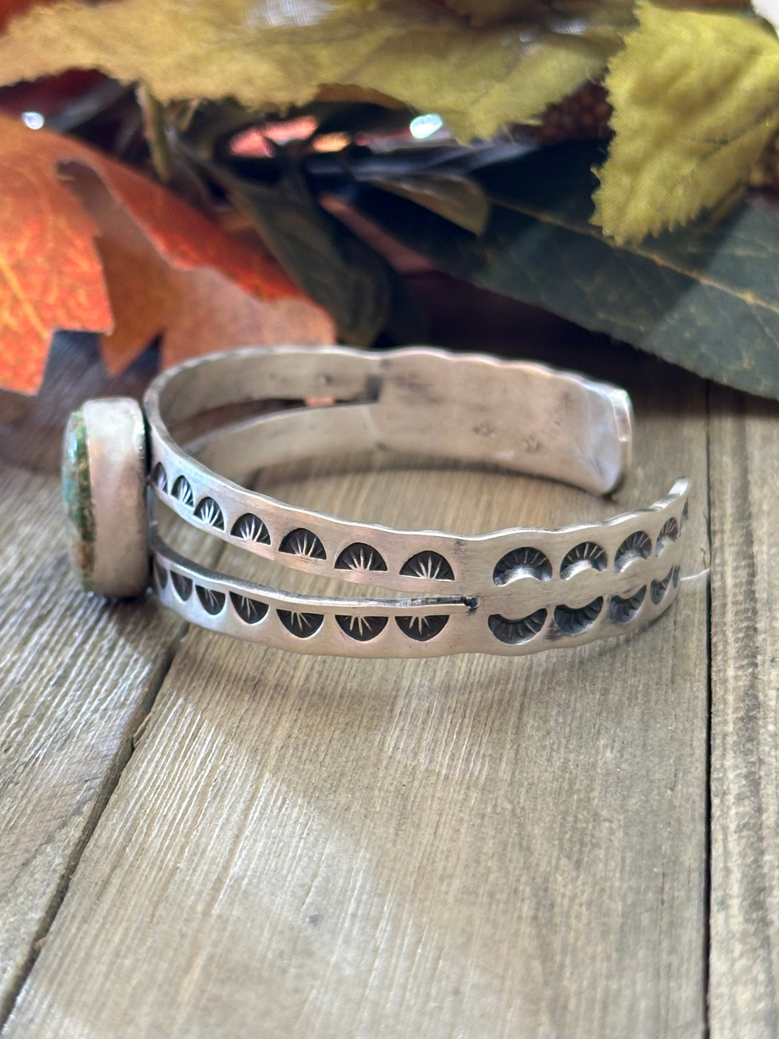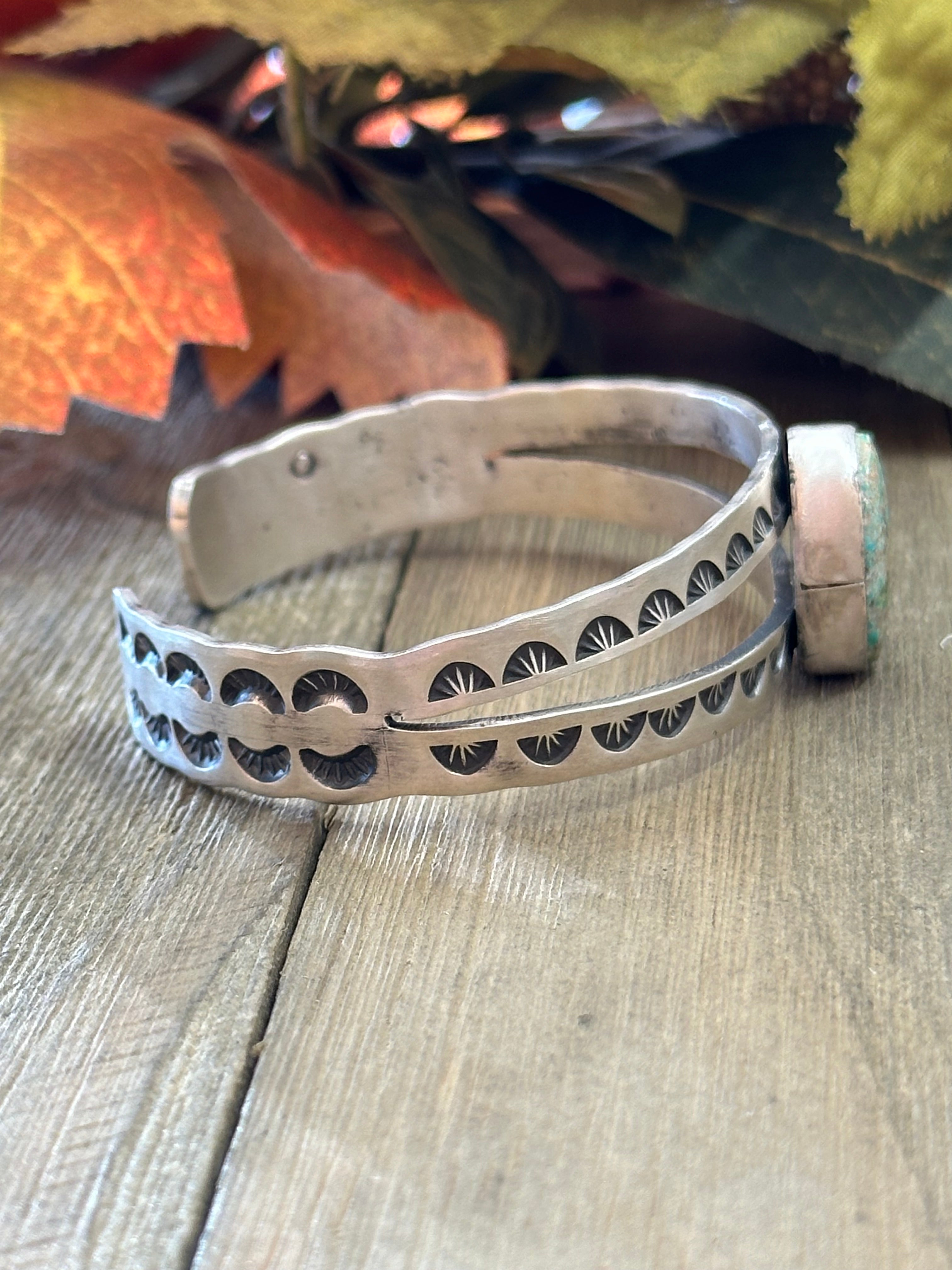 Navajo Made Sonoran Mountain Turquoise & Sterling Silver Cuff Bracelet.
