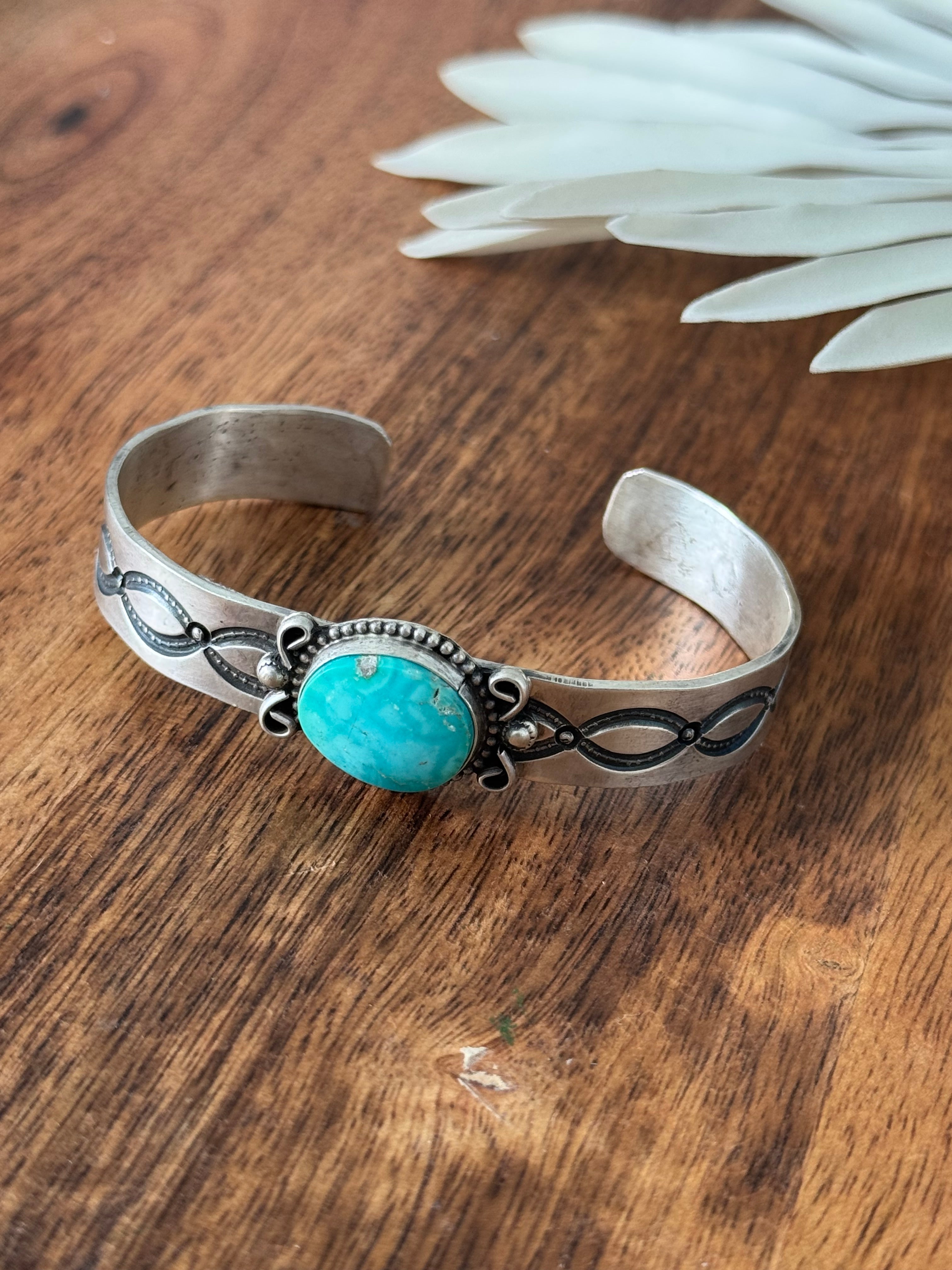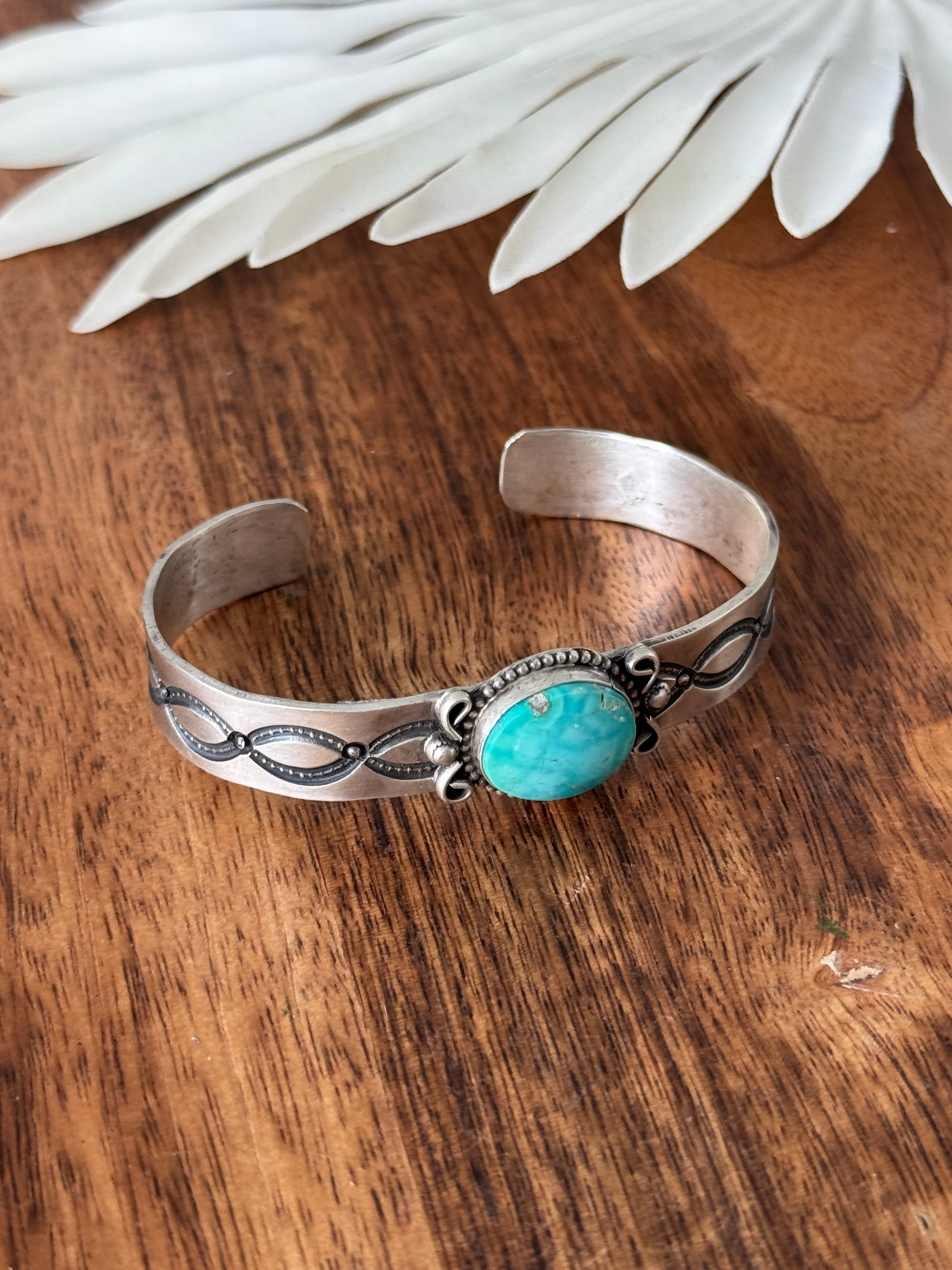 Navajo Made Sonoran Mountain Turquoise & Sterling Silver Cuff Bracelet
