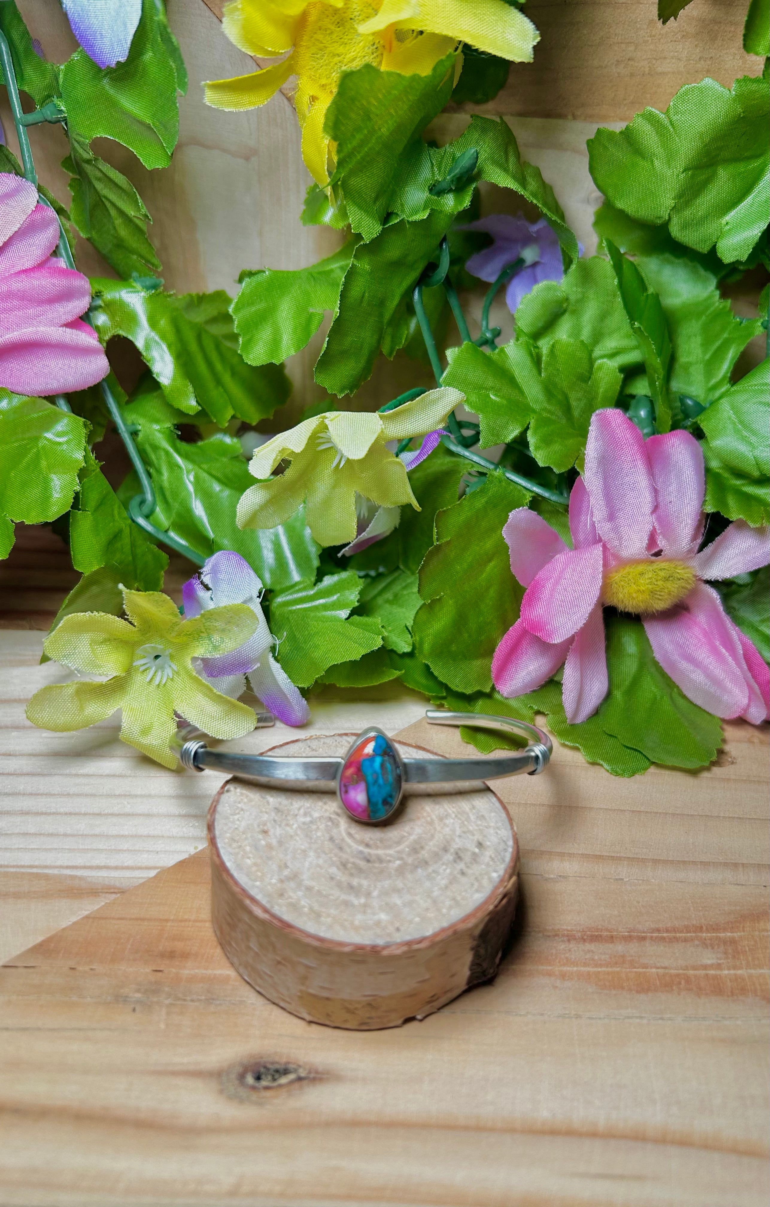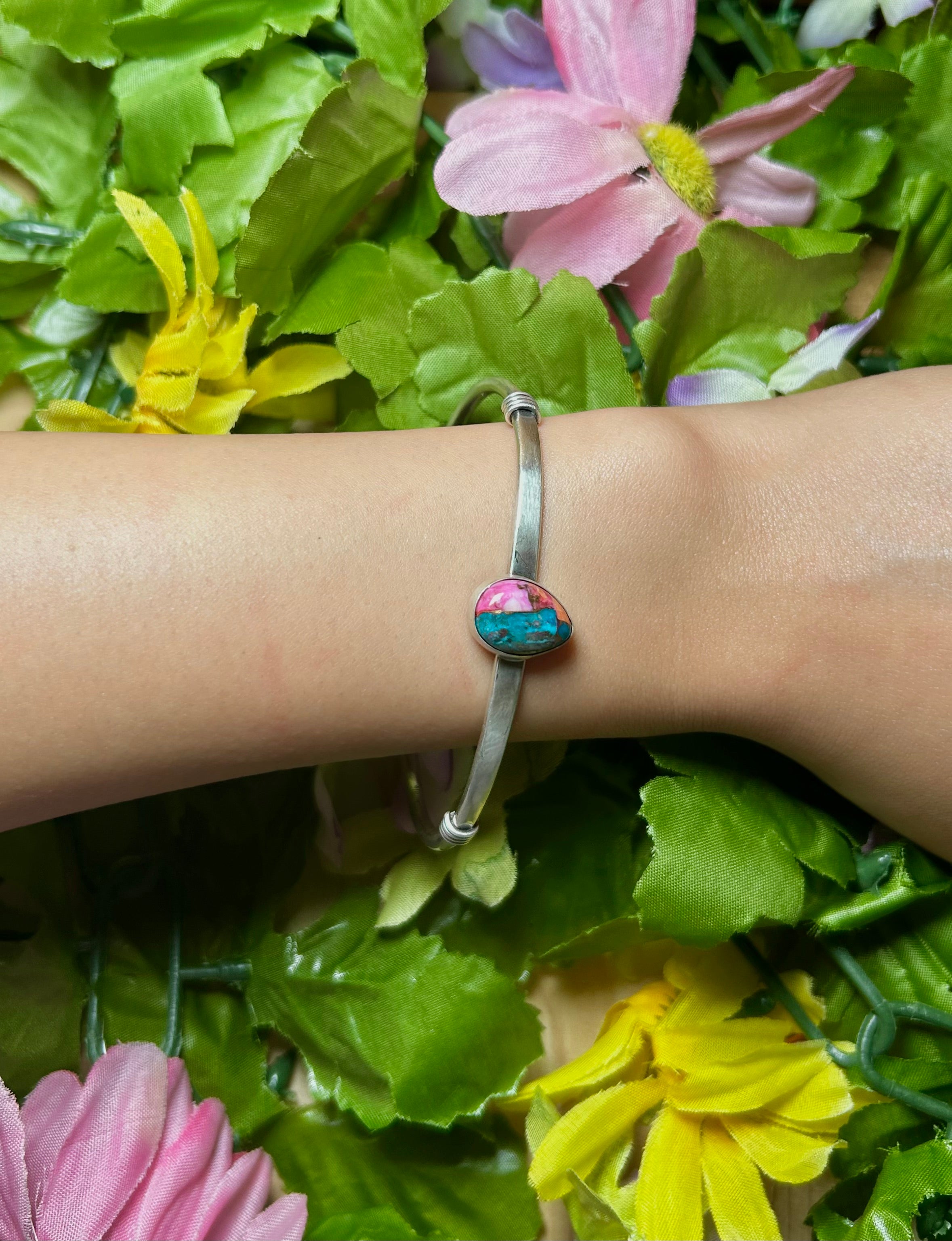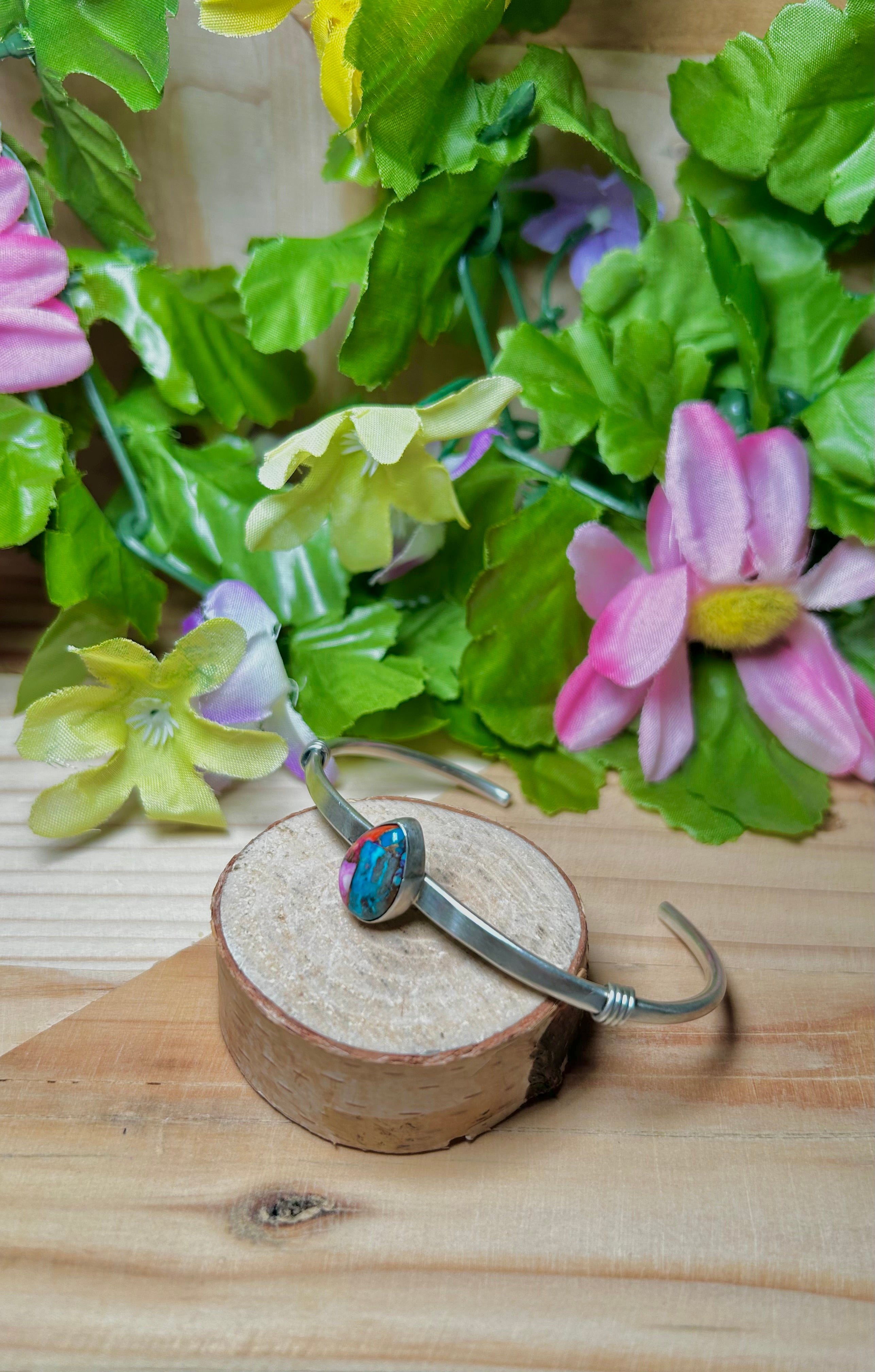 Navajo Made Mohave Turquoise & Sterling Silver Cuff Bracelet