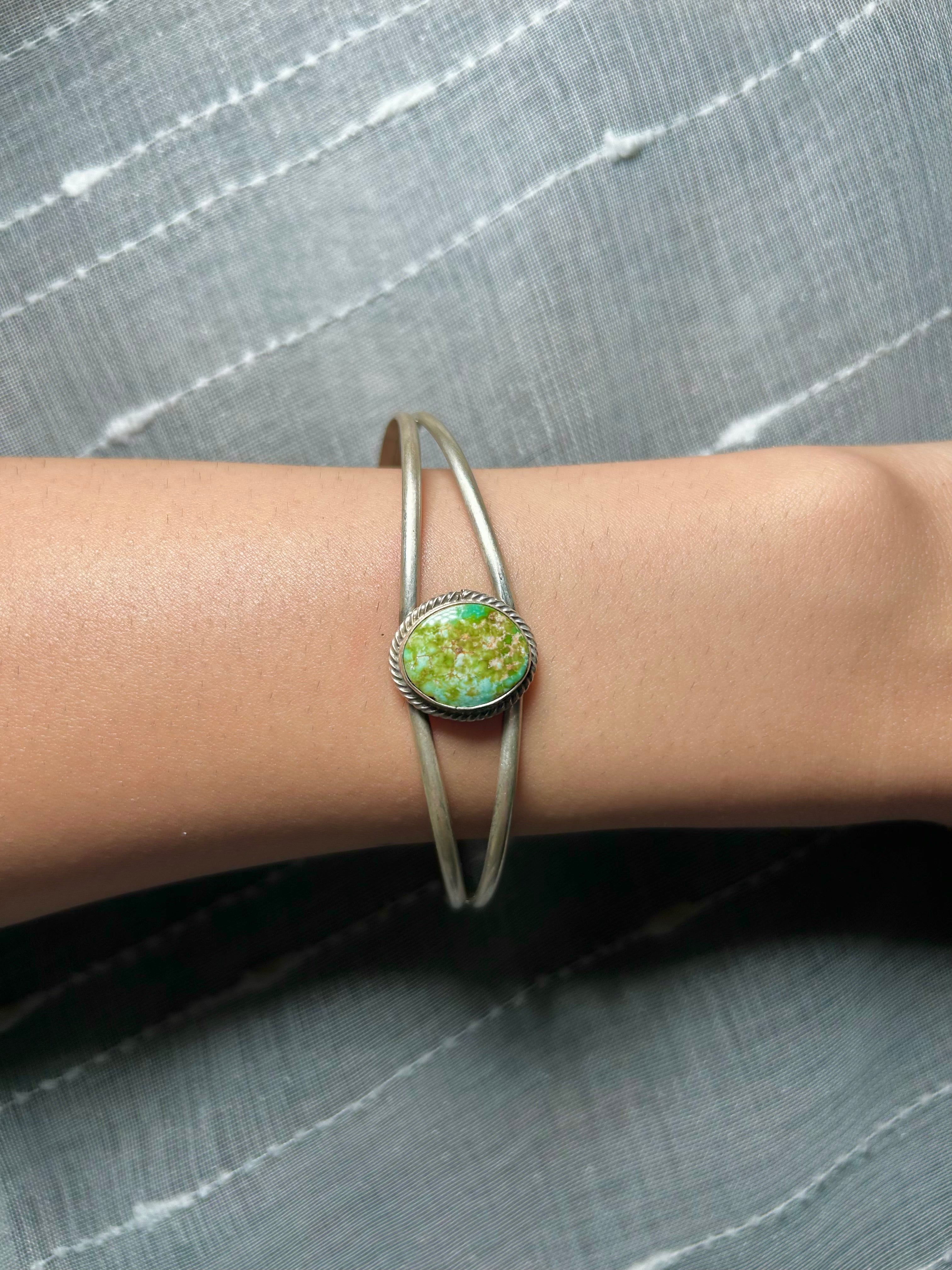 Navajo Made Sonoran Mountain Turquoise & Sterling Silver Cuff Bracelet