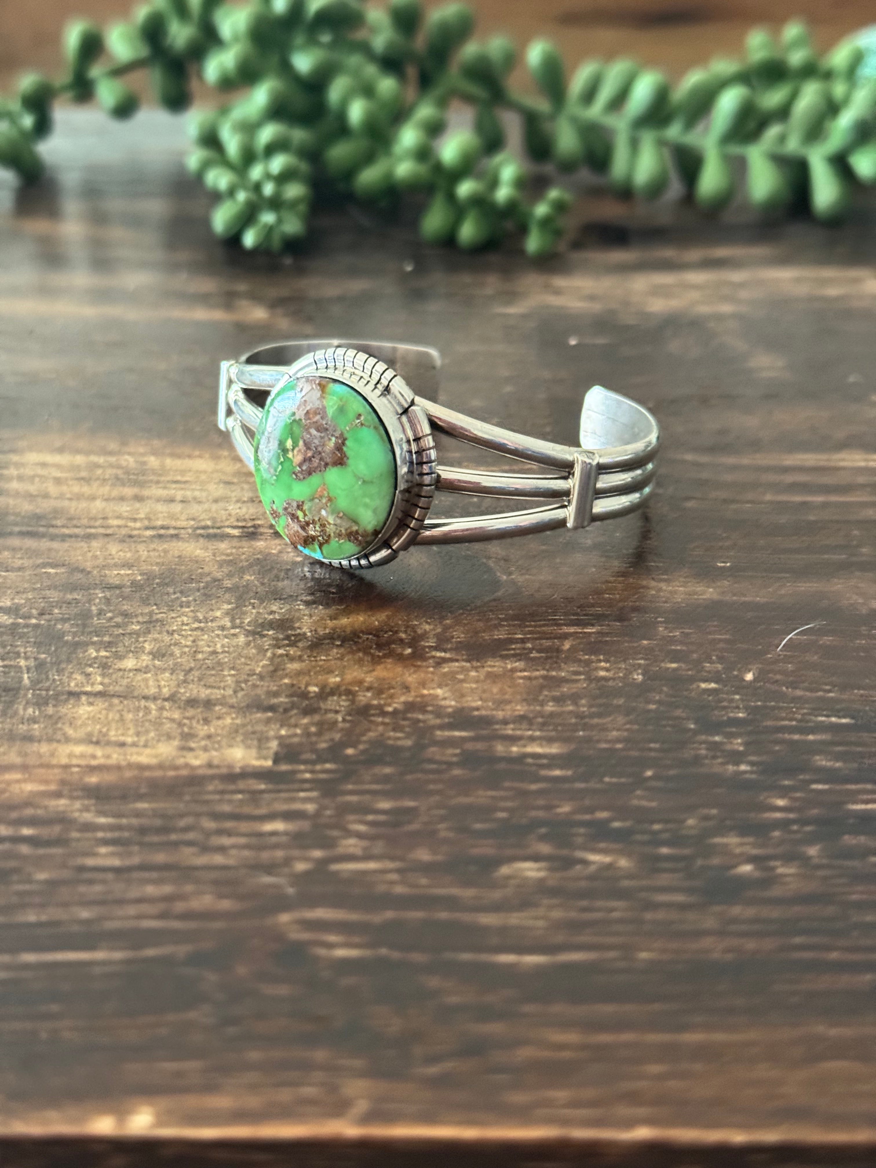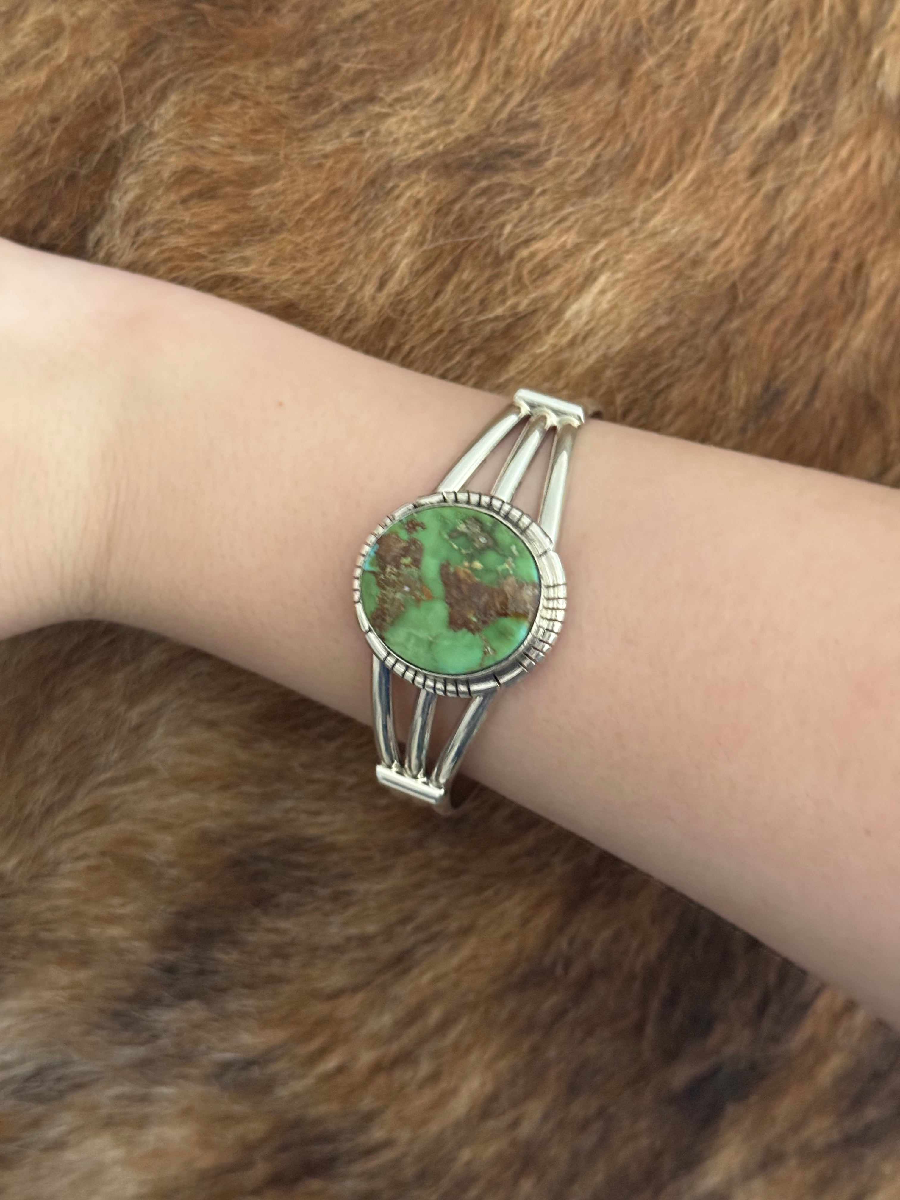 Navajo Made Sonoran Mountain Turquoise & Sterling Silver Cuff Bracelet