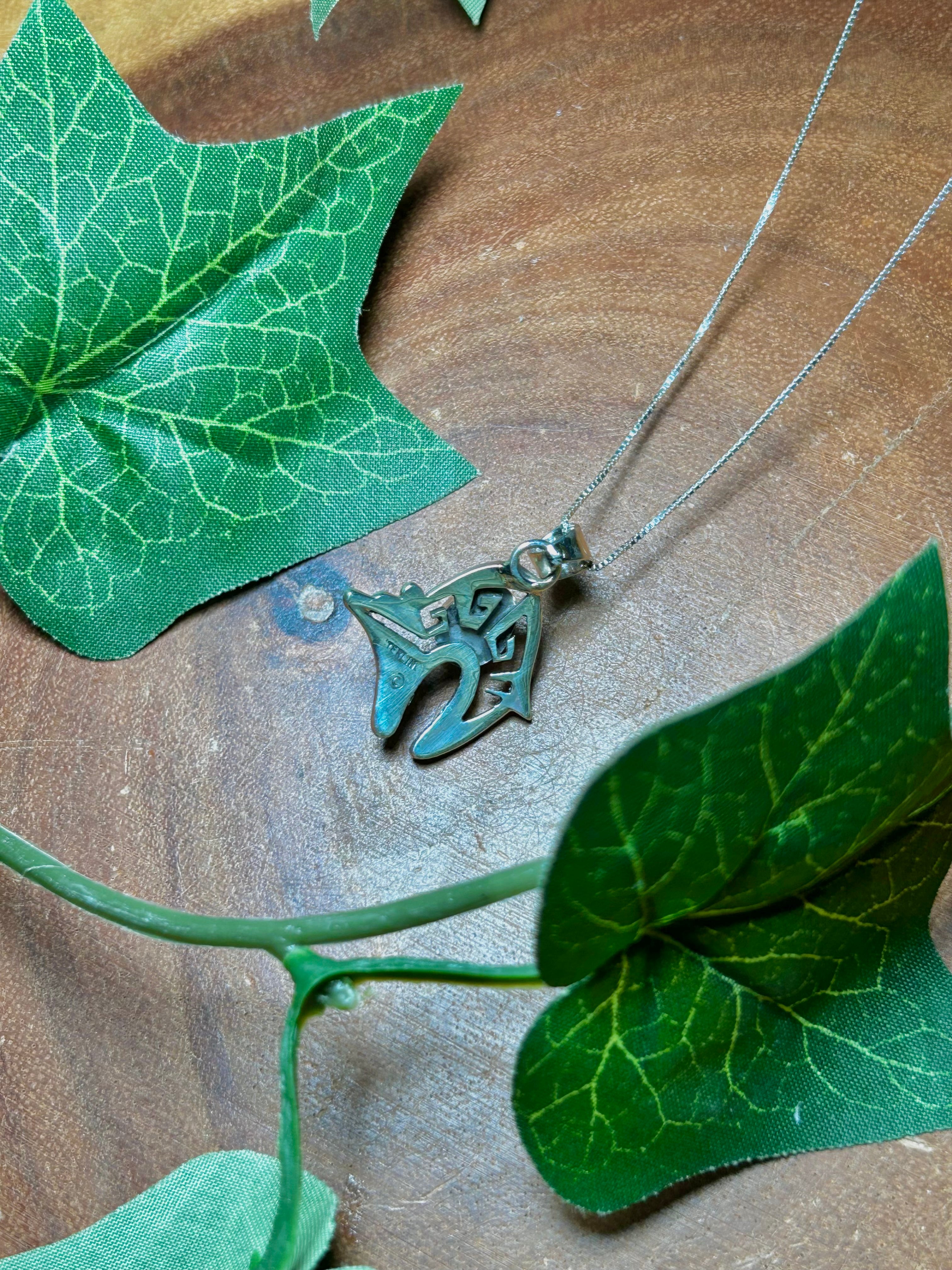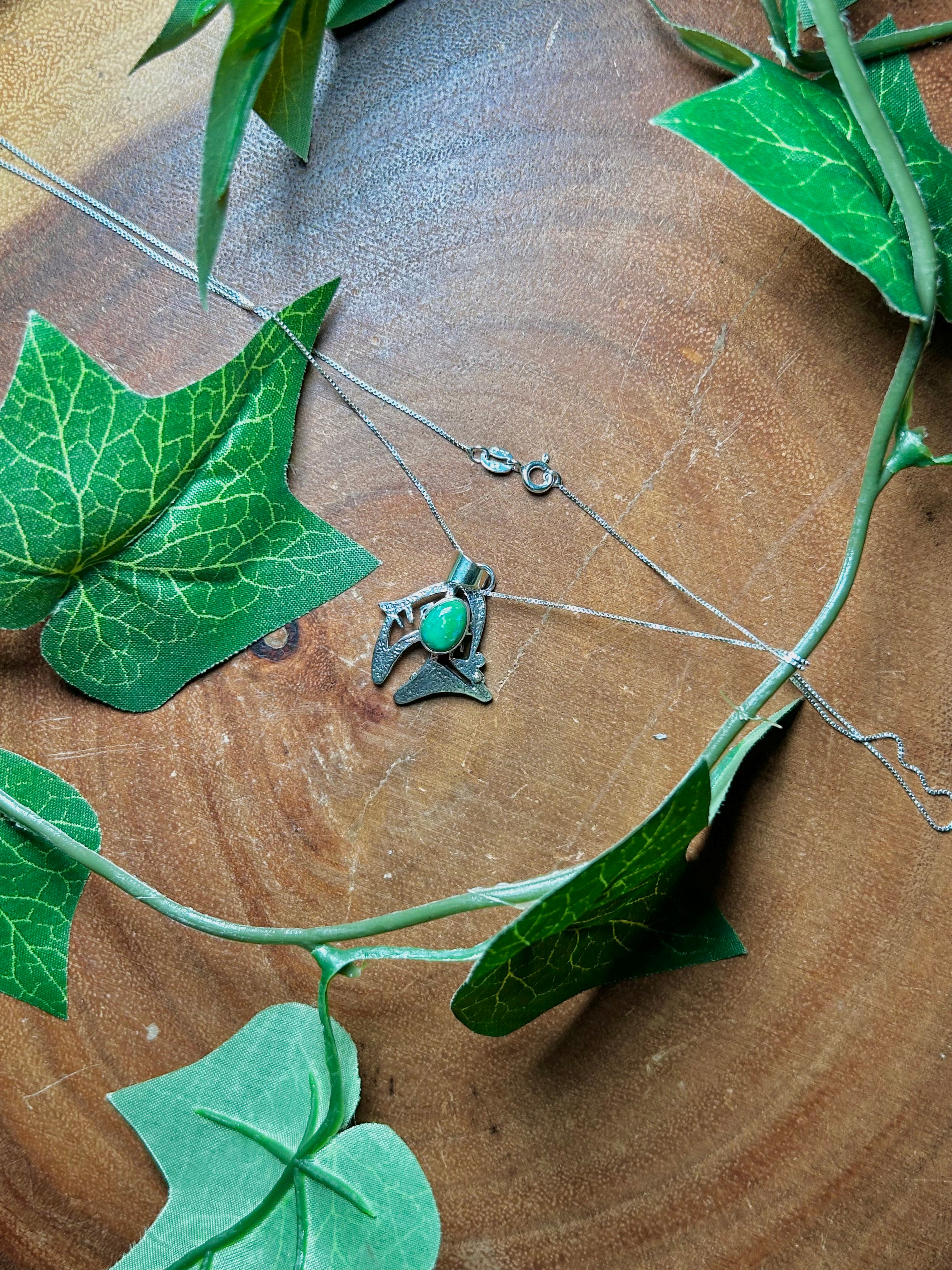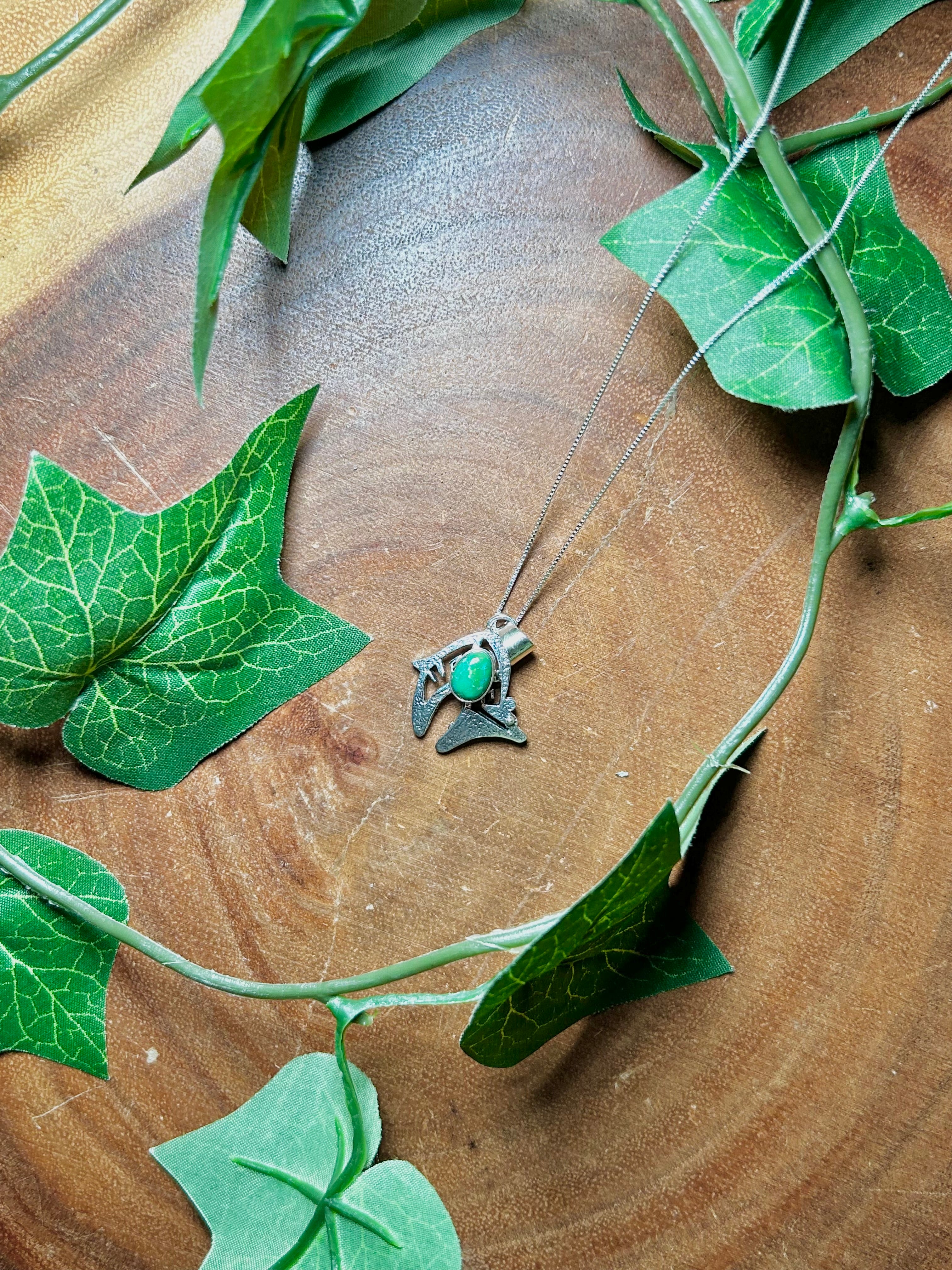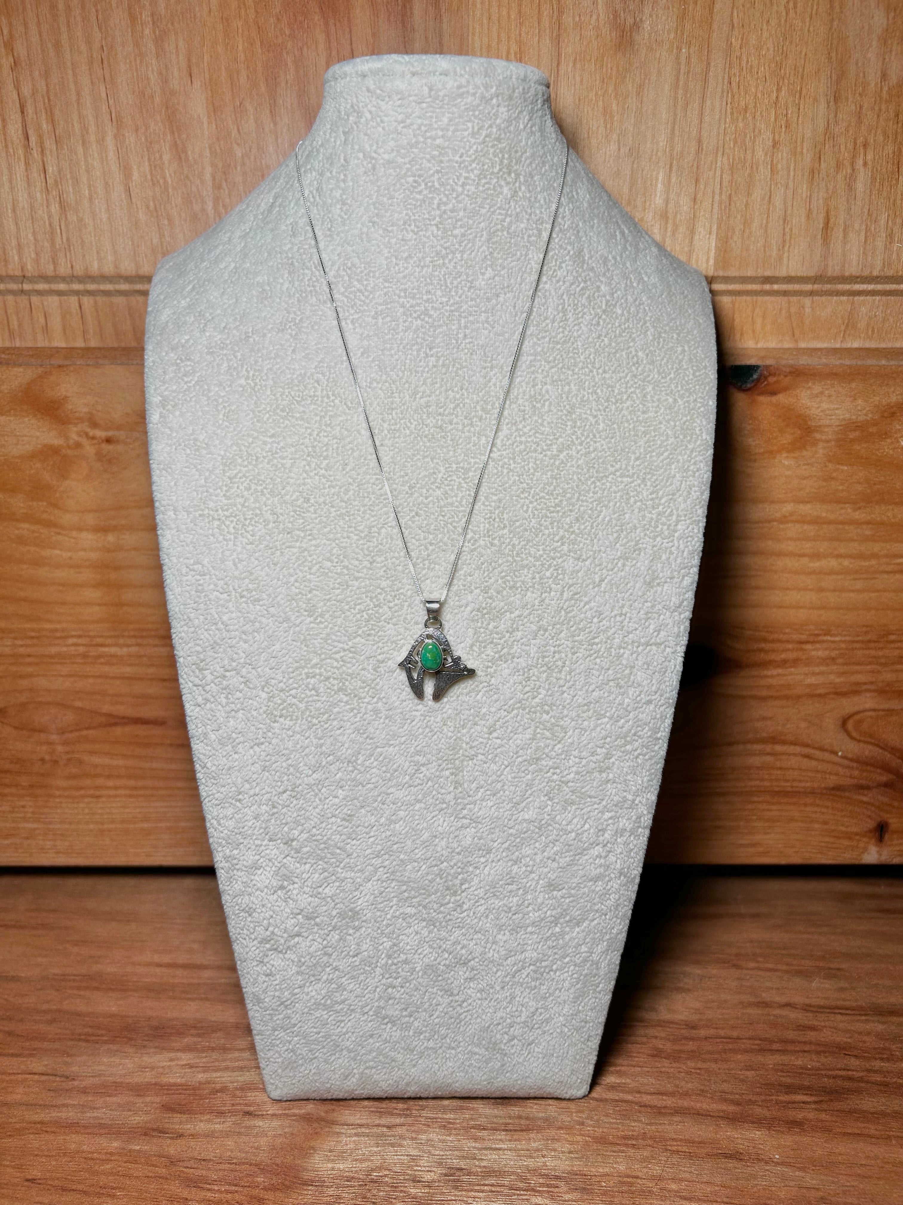 Navajo Made Sonoran Mountain Turquoise & Sterling Silver Necklace. It measures 19 3/4 inches long with hang while the chain by itself measures 17 inches long. Signed by the artist and stamped sterling silver.