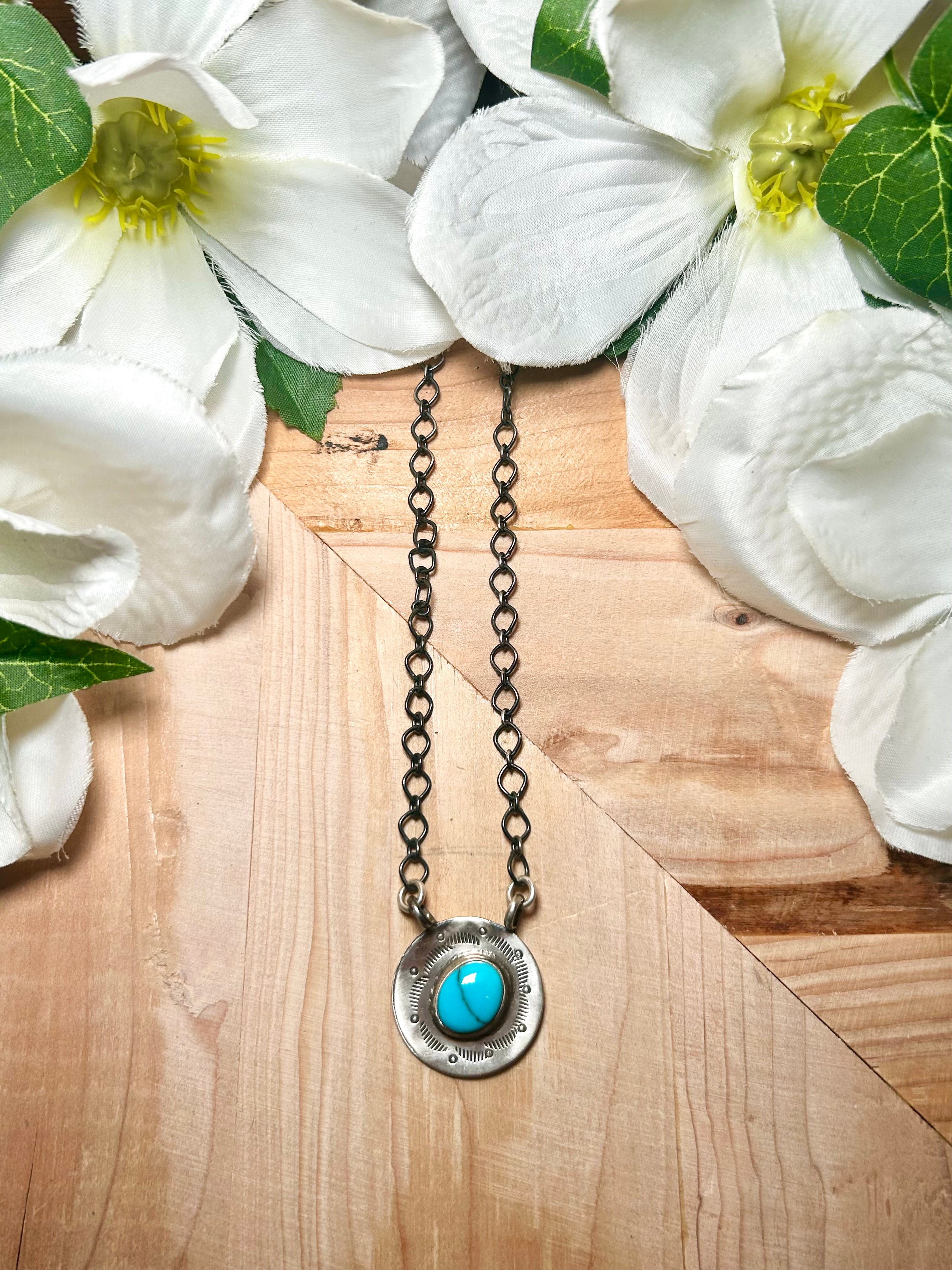 Navajo Made Egyptian Turquoise & Sterling Silver Necklace