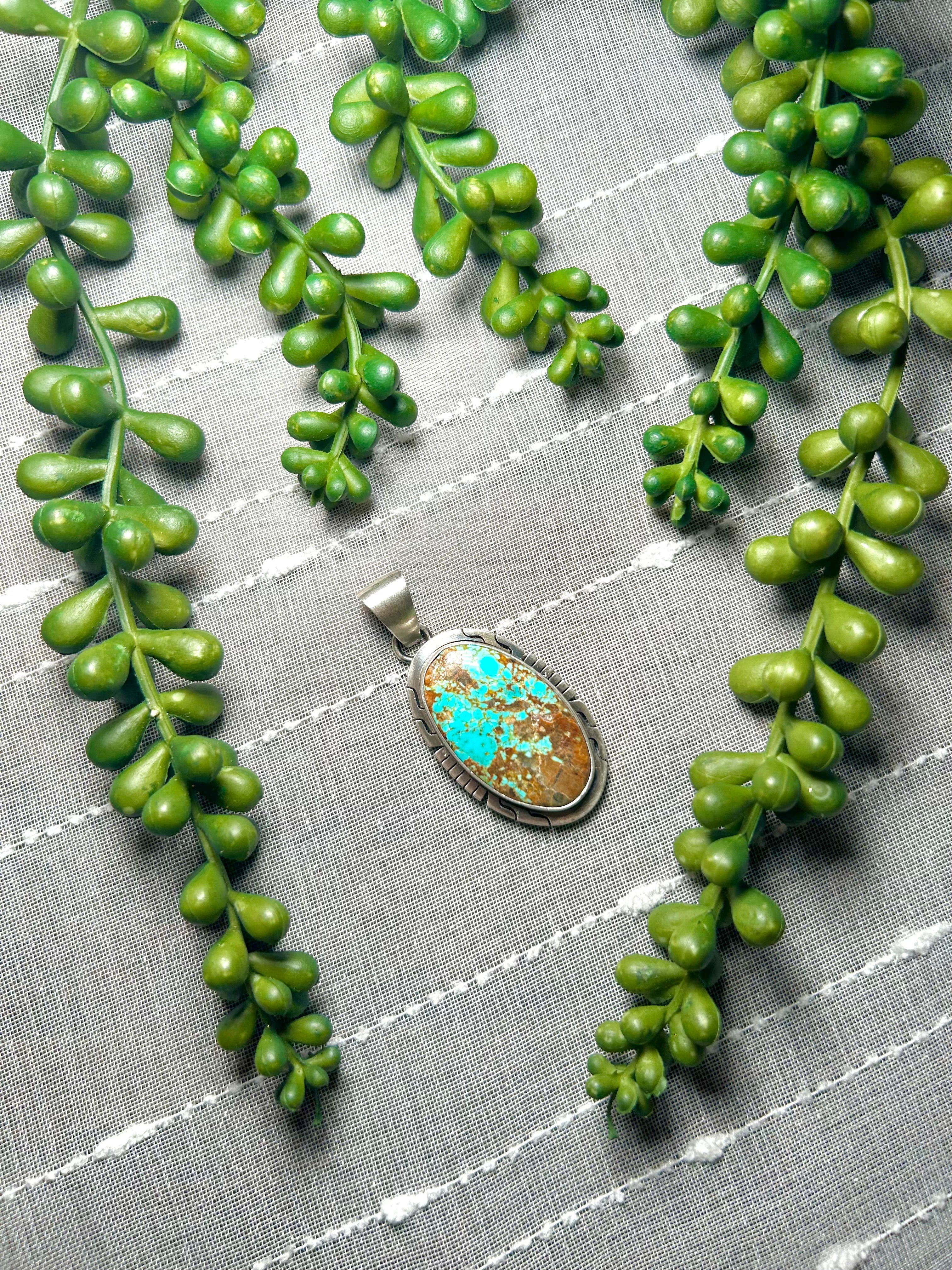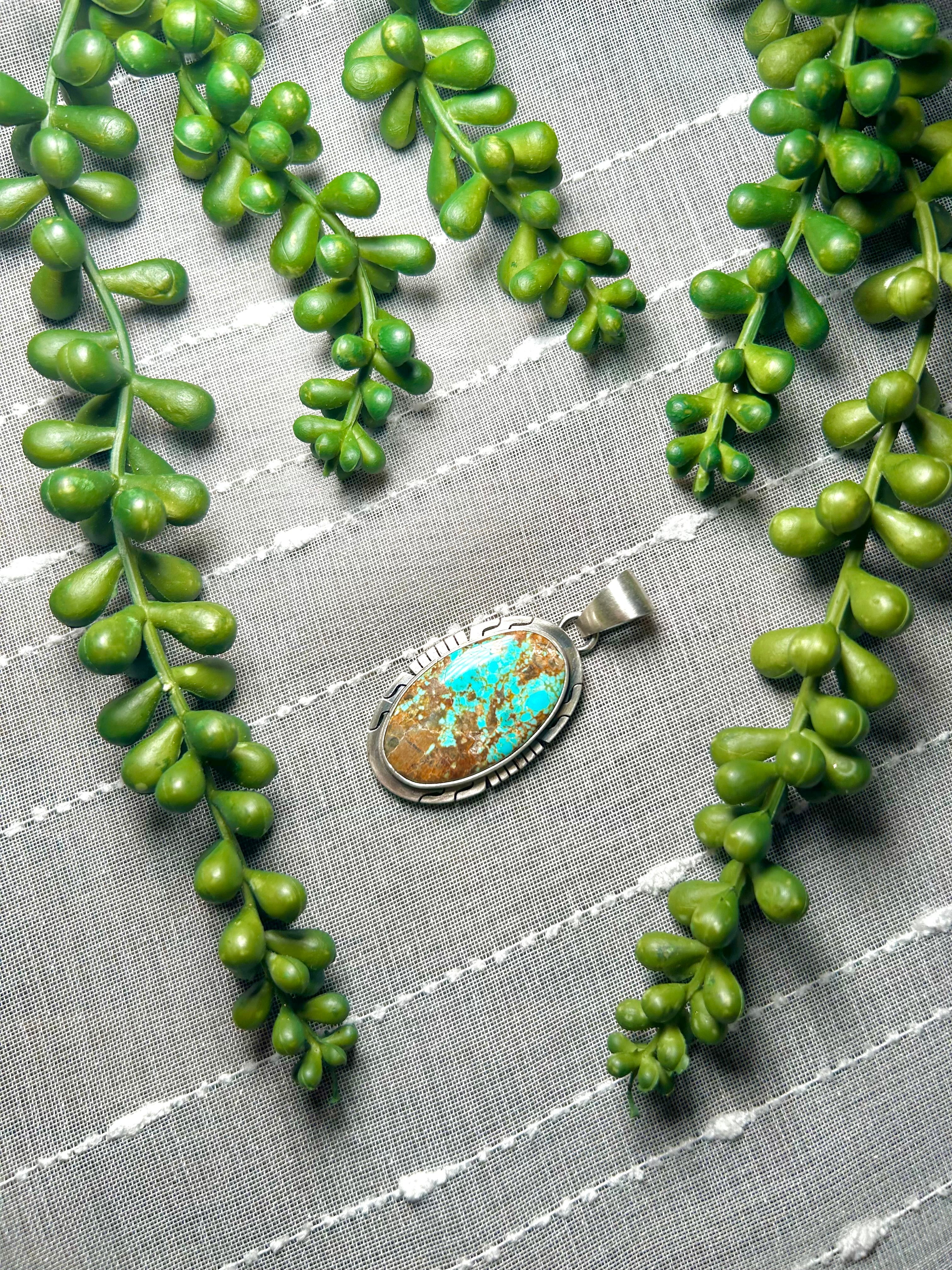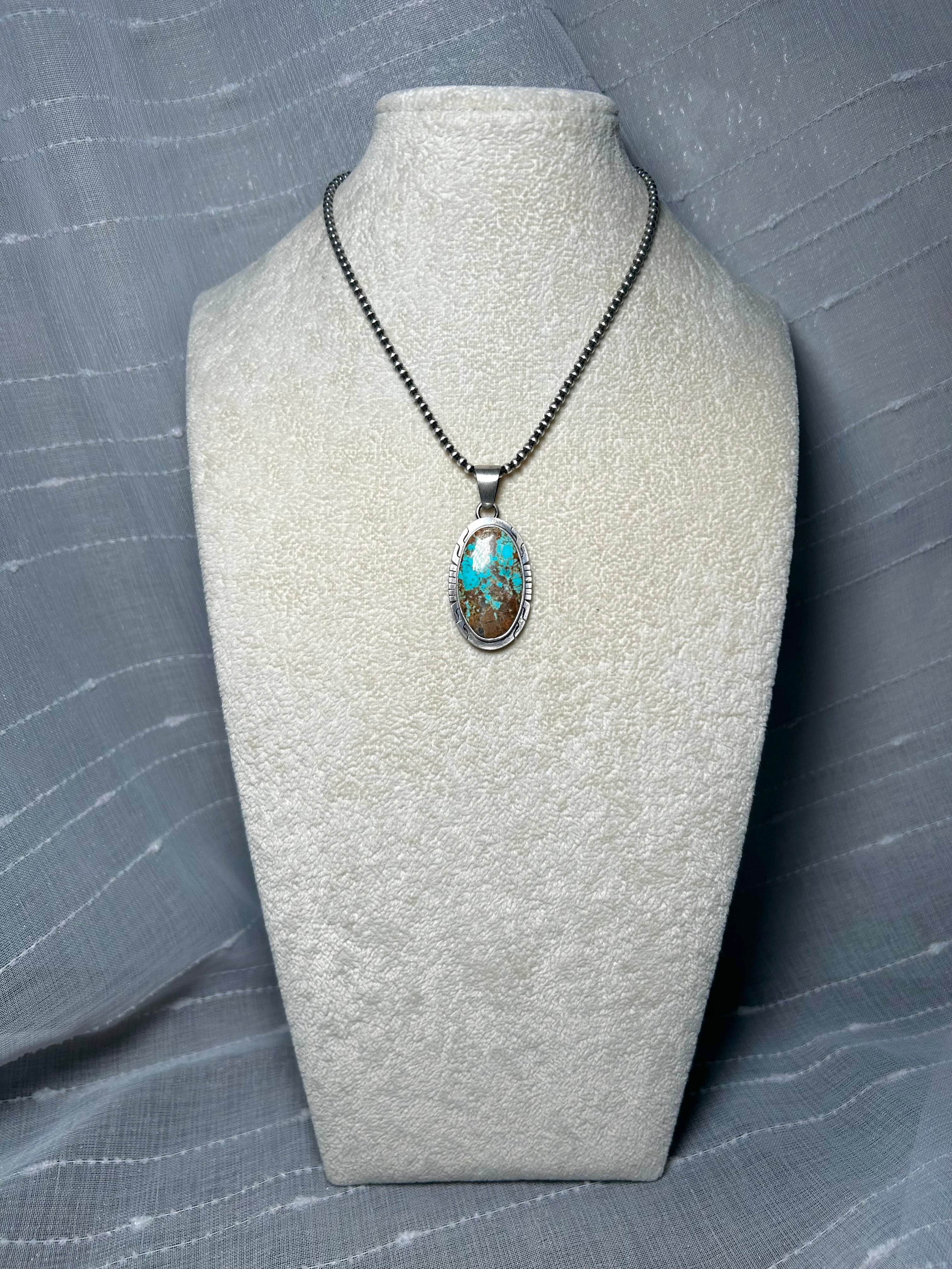 Navajo Made #8 Turquoise & Sterling Silver Pendant
