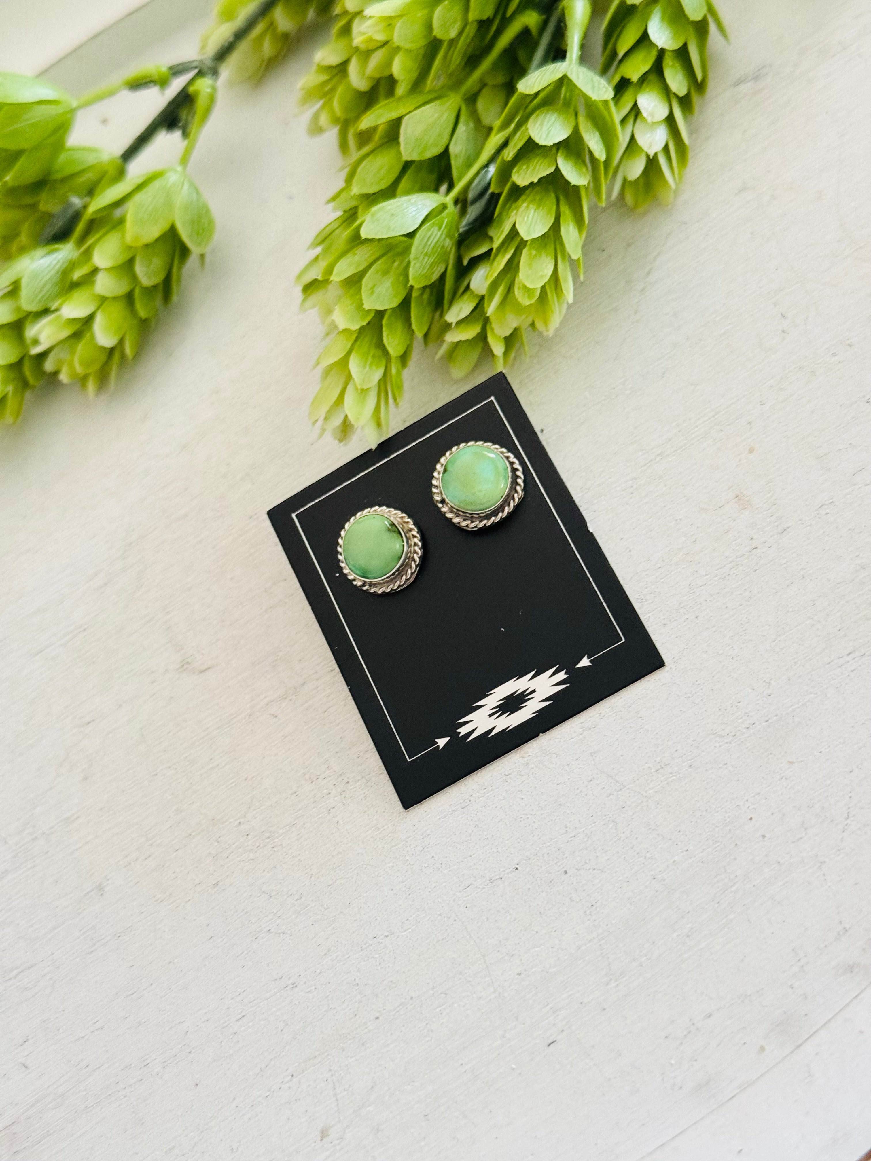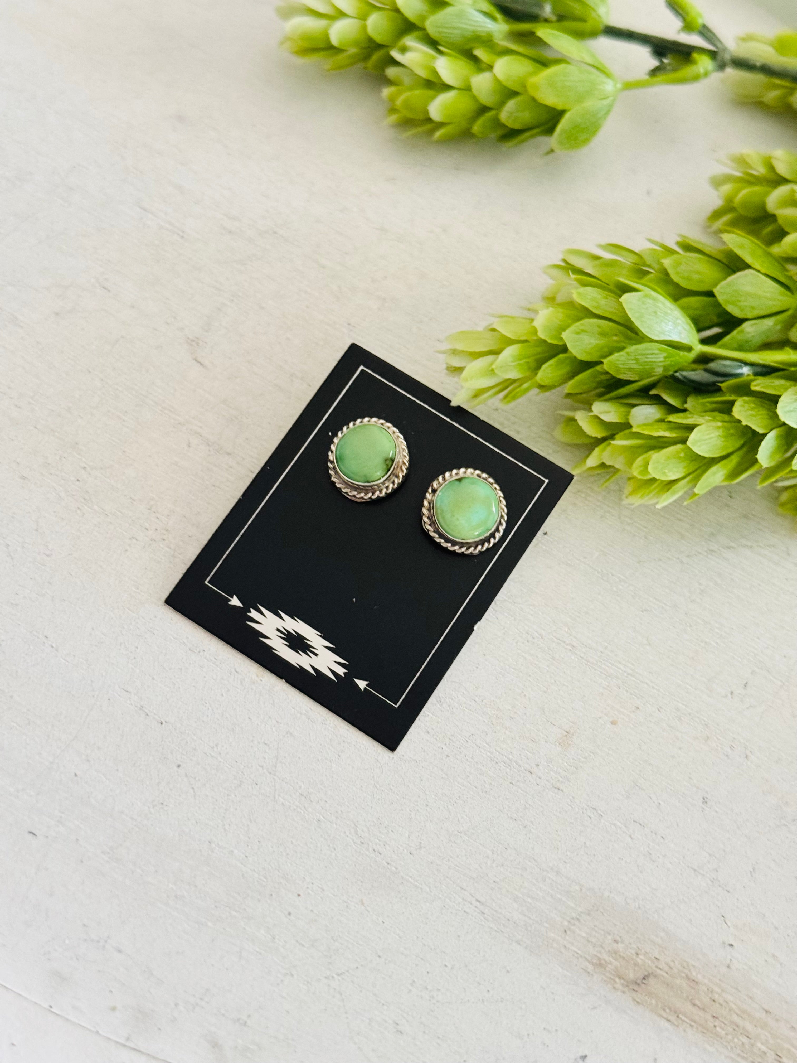 Navajo Made Sonoran Mountain Turquoise & Sterling Silver Post Earrings