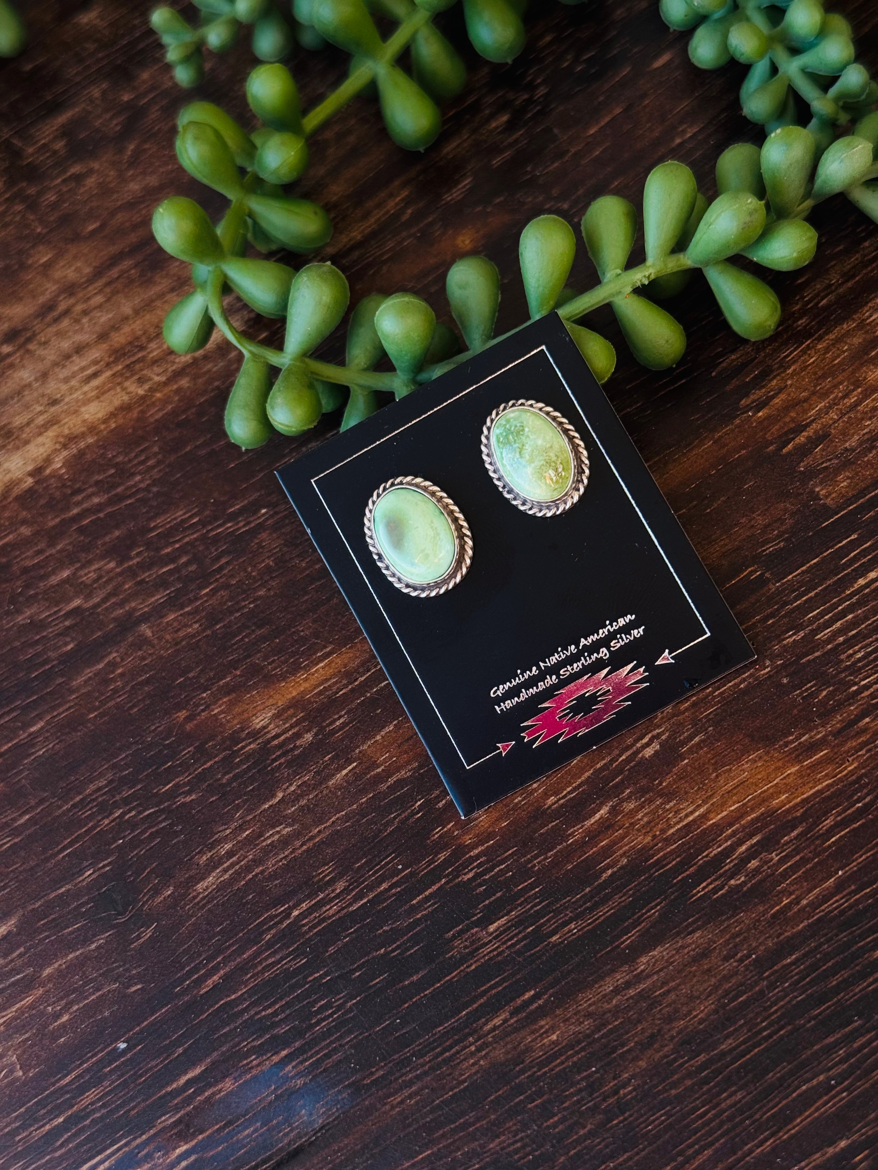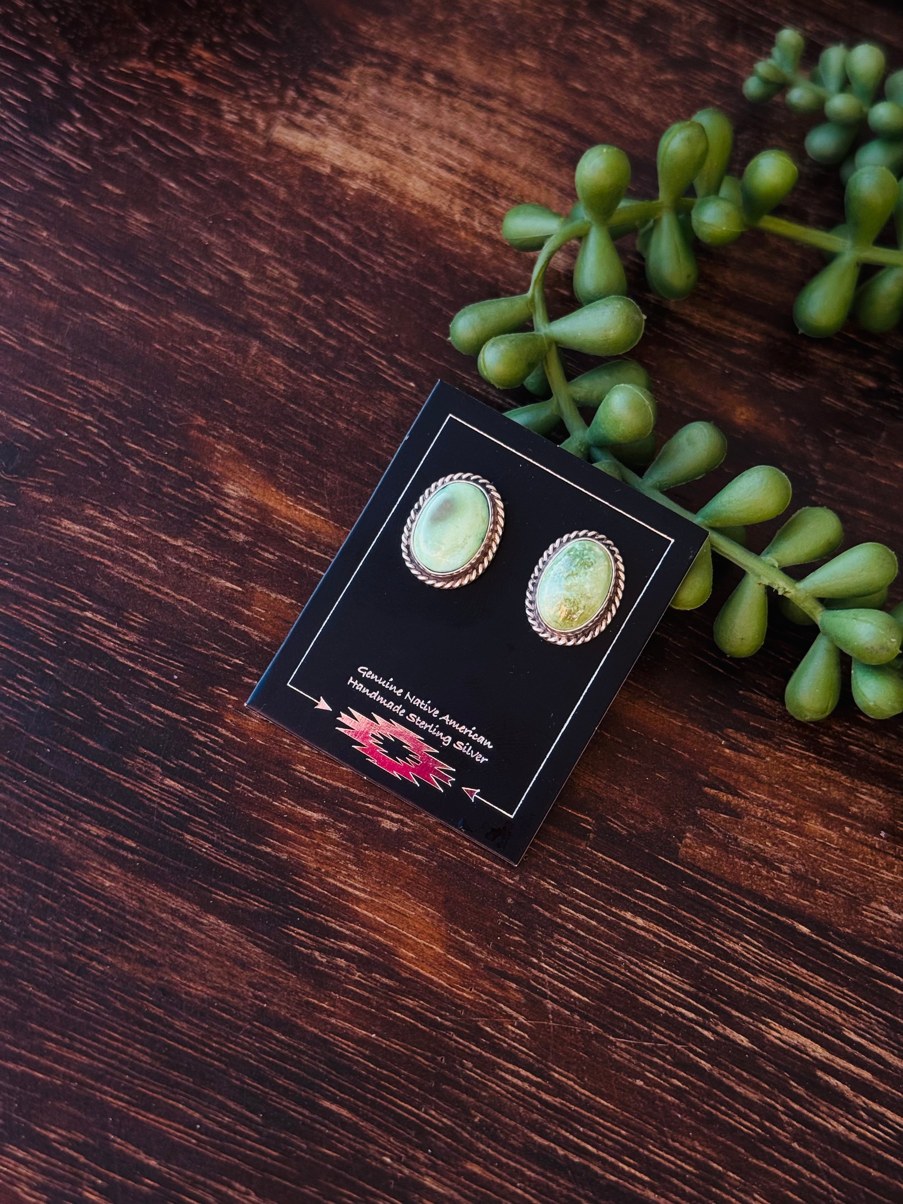 Navajo Made Sonoran Mountain Turquoise & Sterling Silver Post Earrings