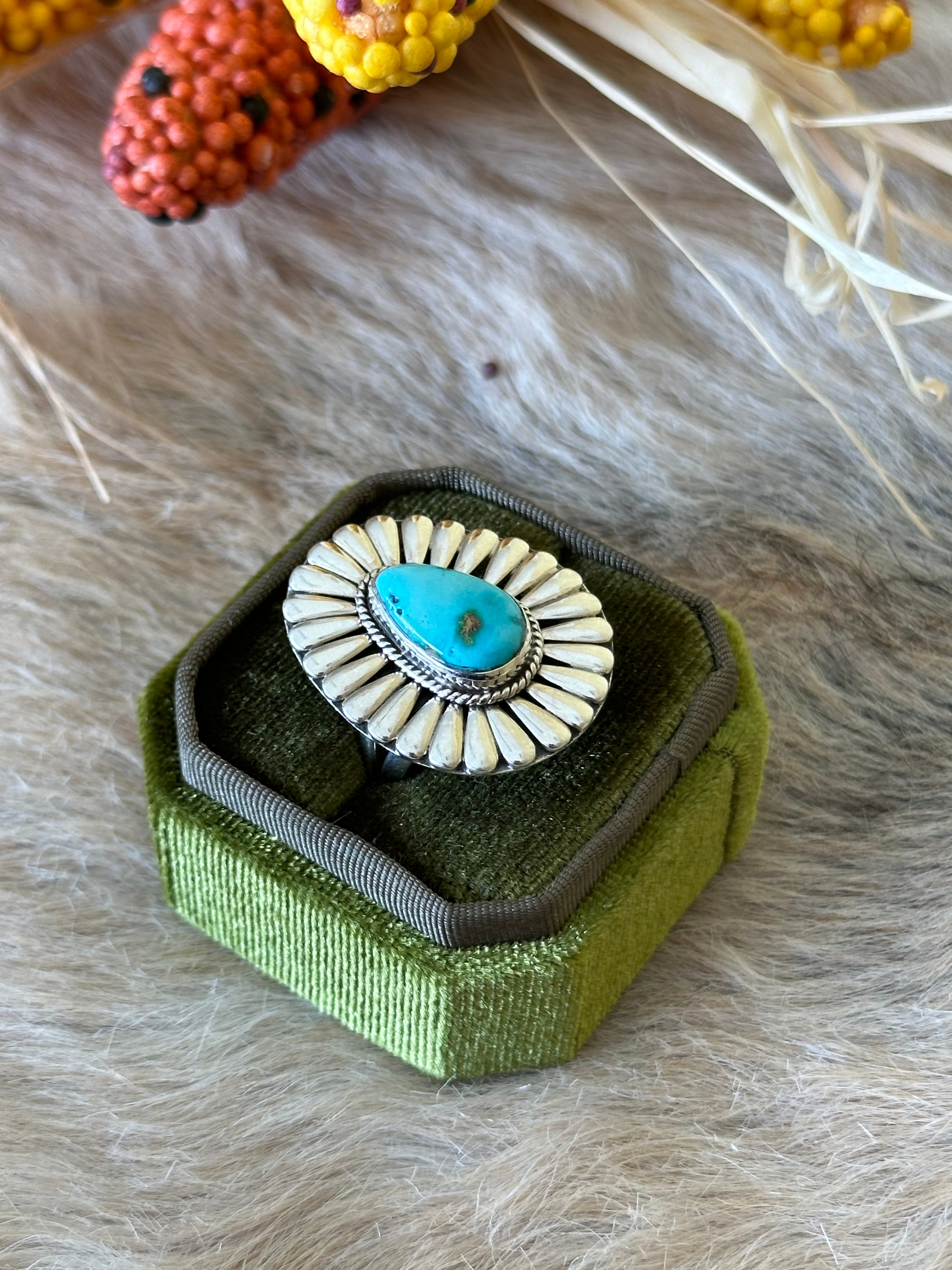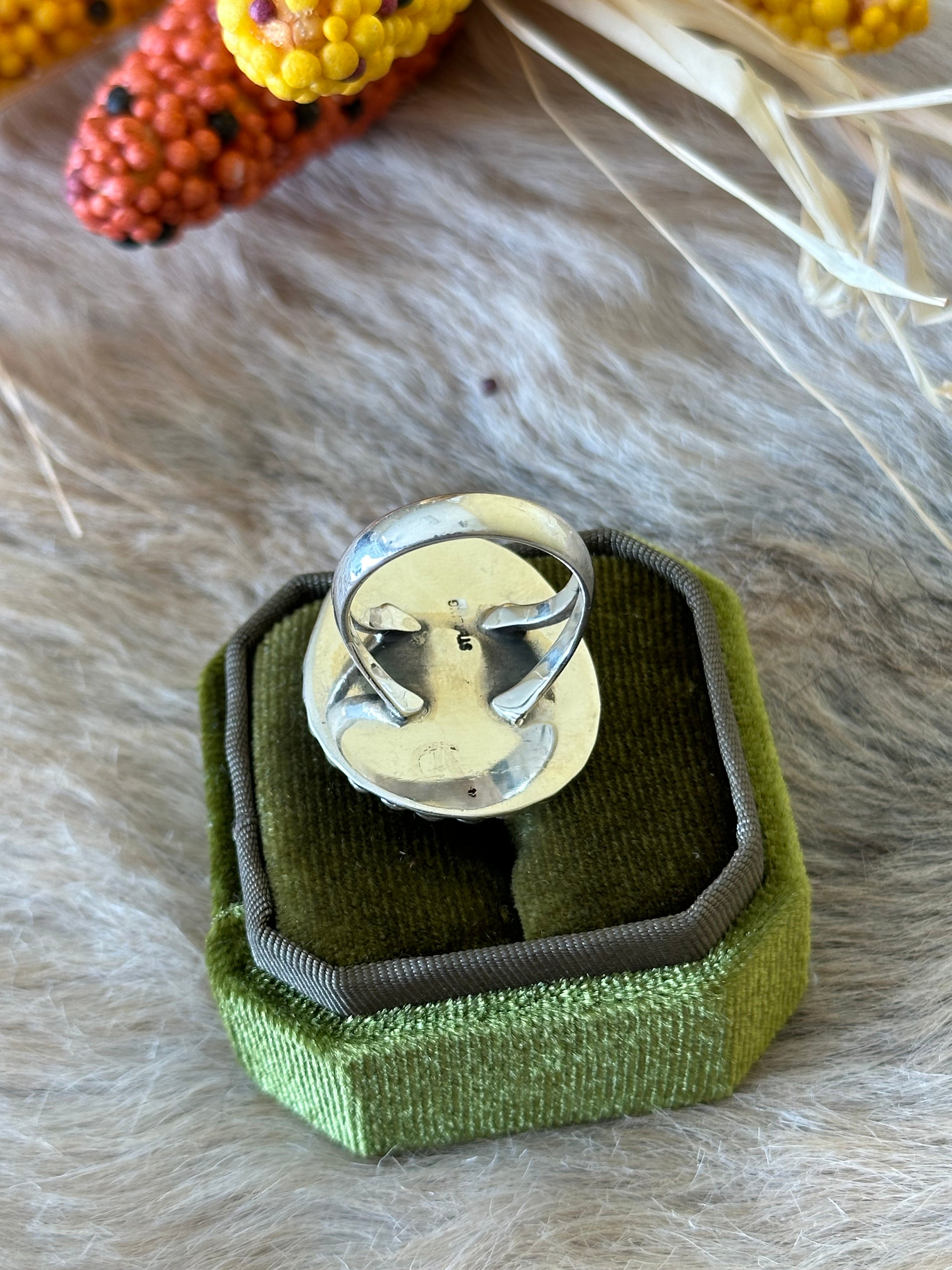Navajo Made Sonoran Mountain Turquoise & Sterling Silver Ring Size 8.75