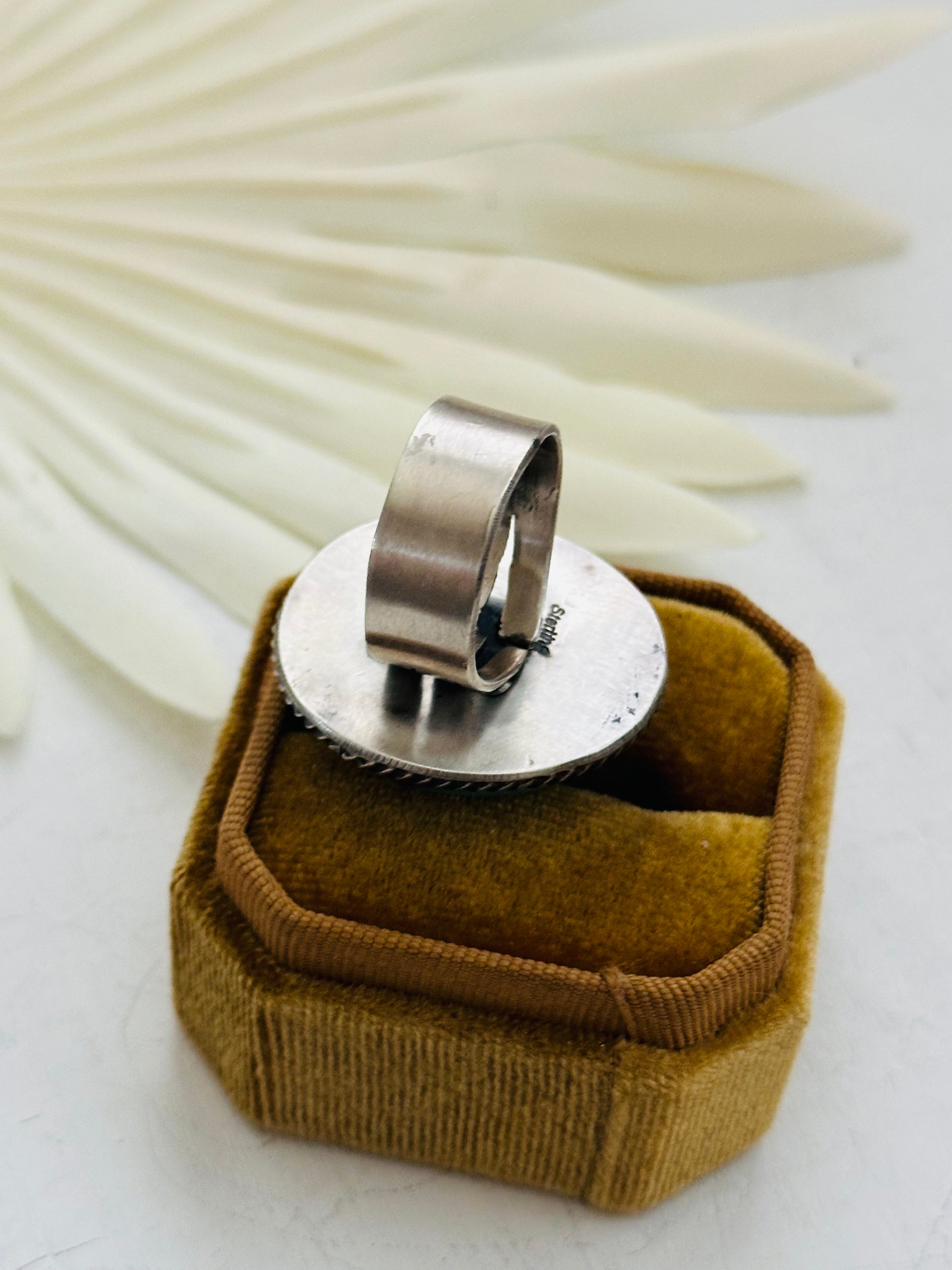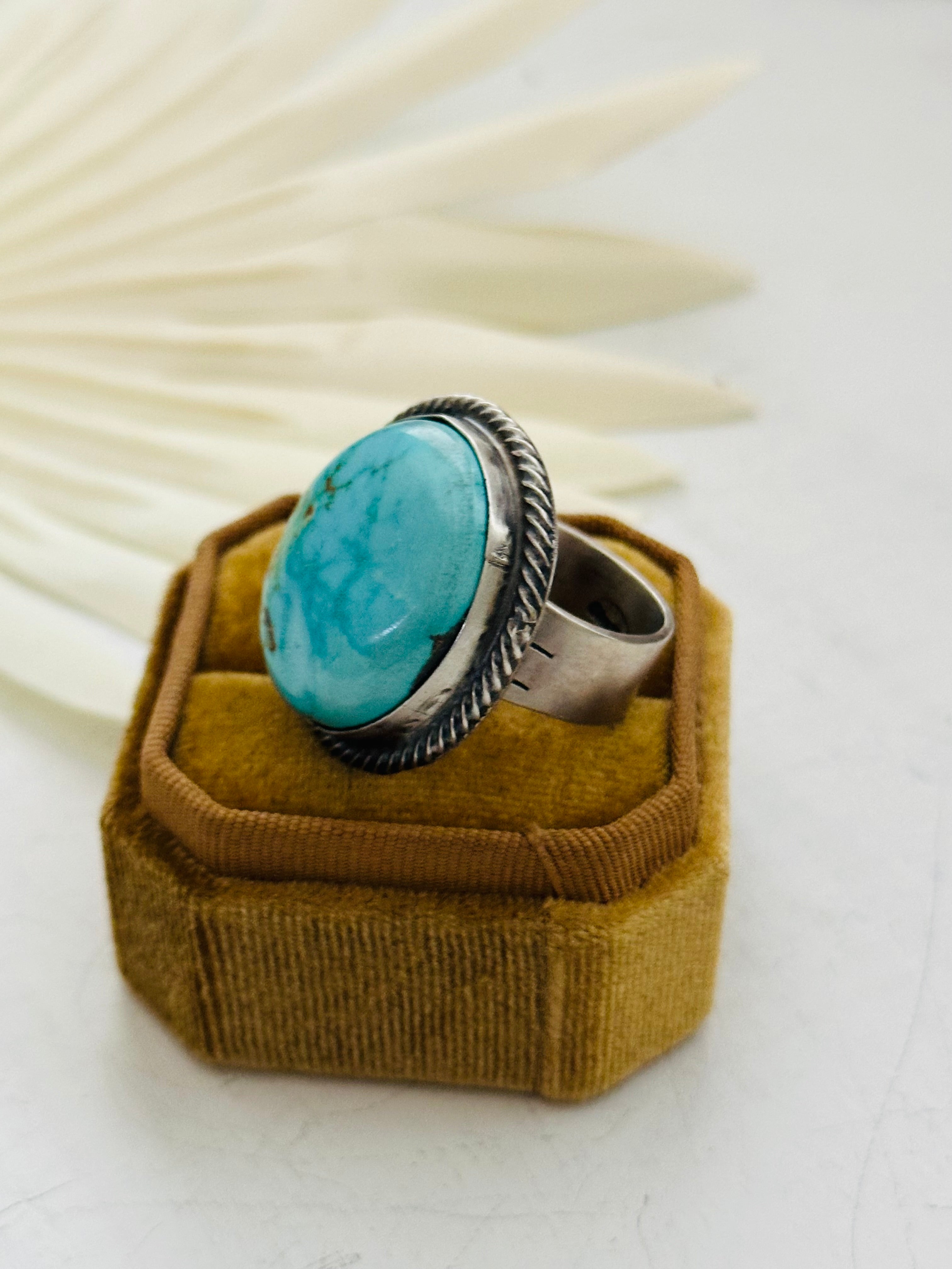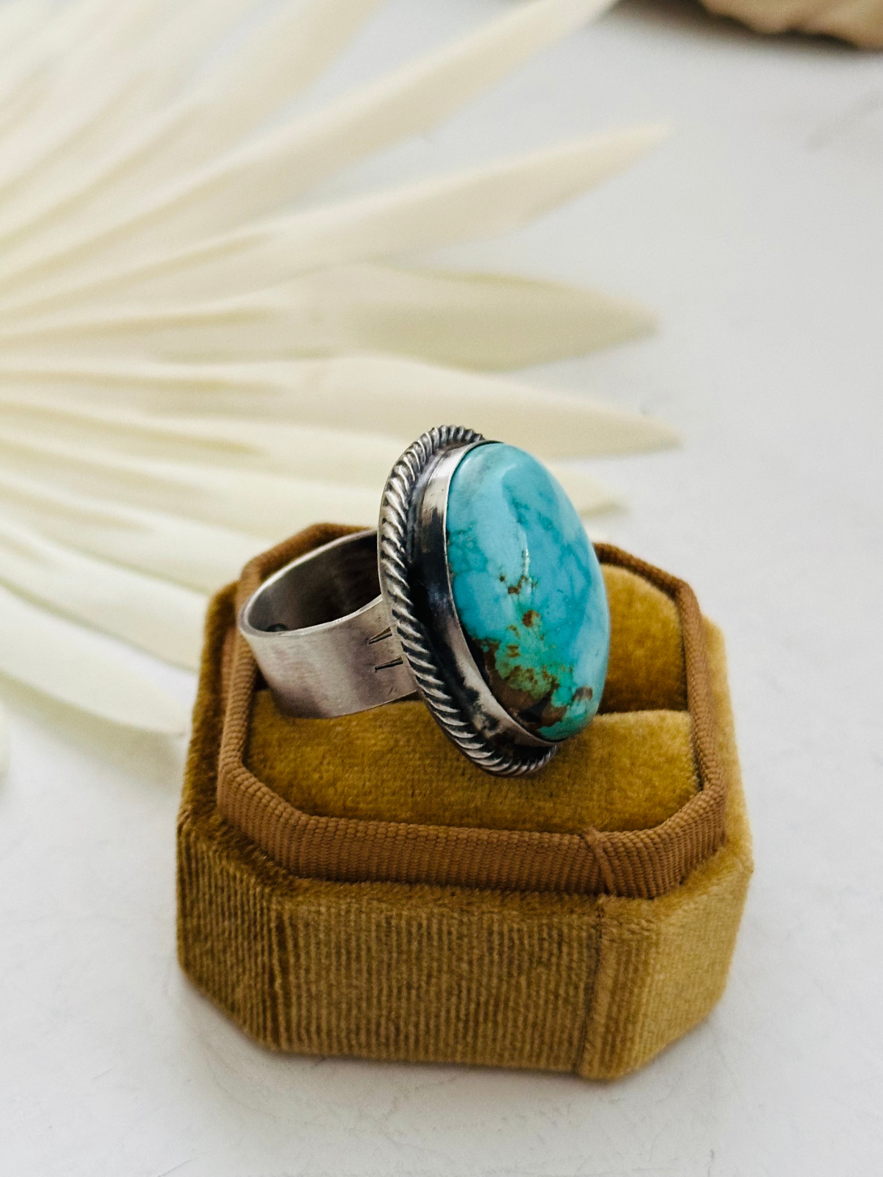 Navajo Made Sonoran Mountain Turquoise & Sterling Silver Ring Size 9