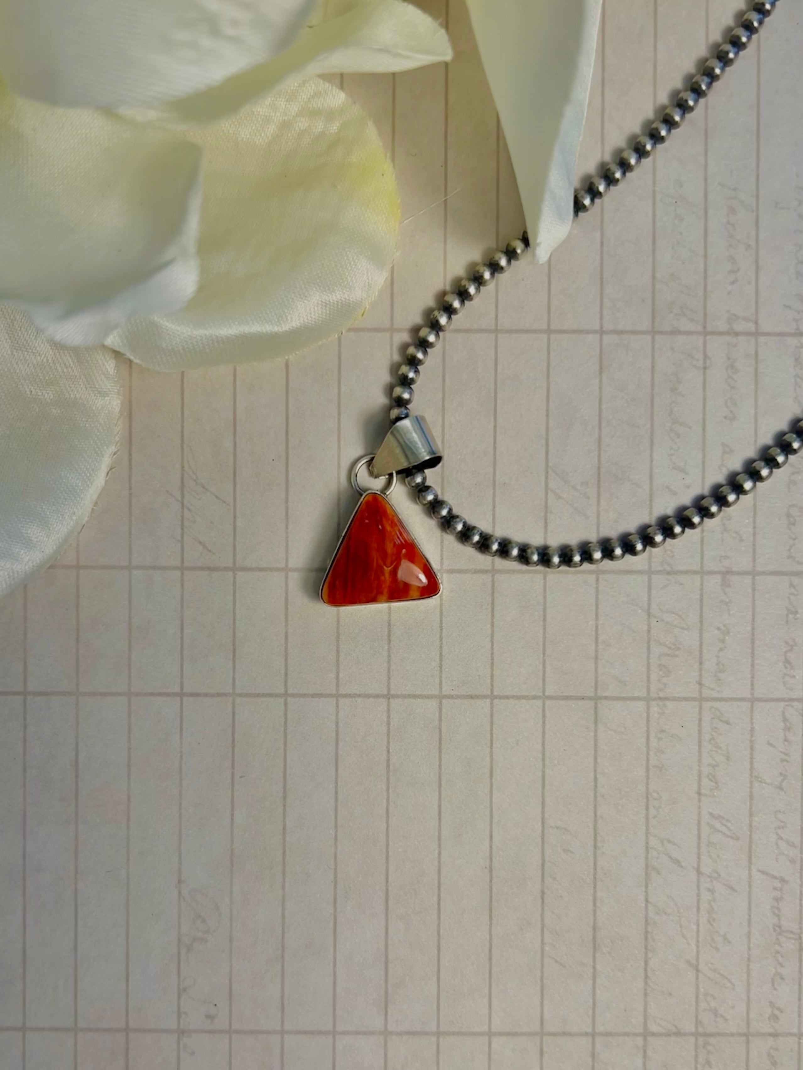 Navajo Made Spiny Osyter & Sterling Silver Triangle Pendant